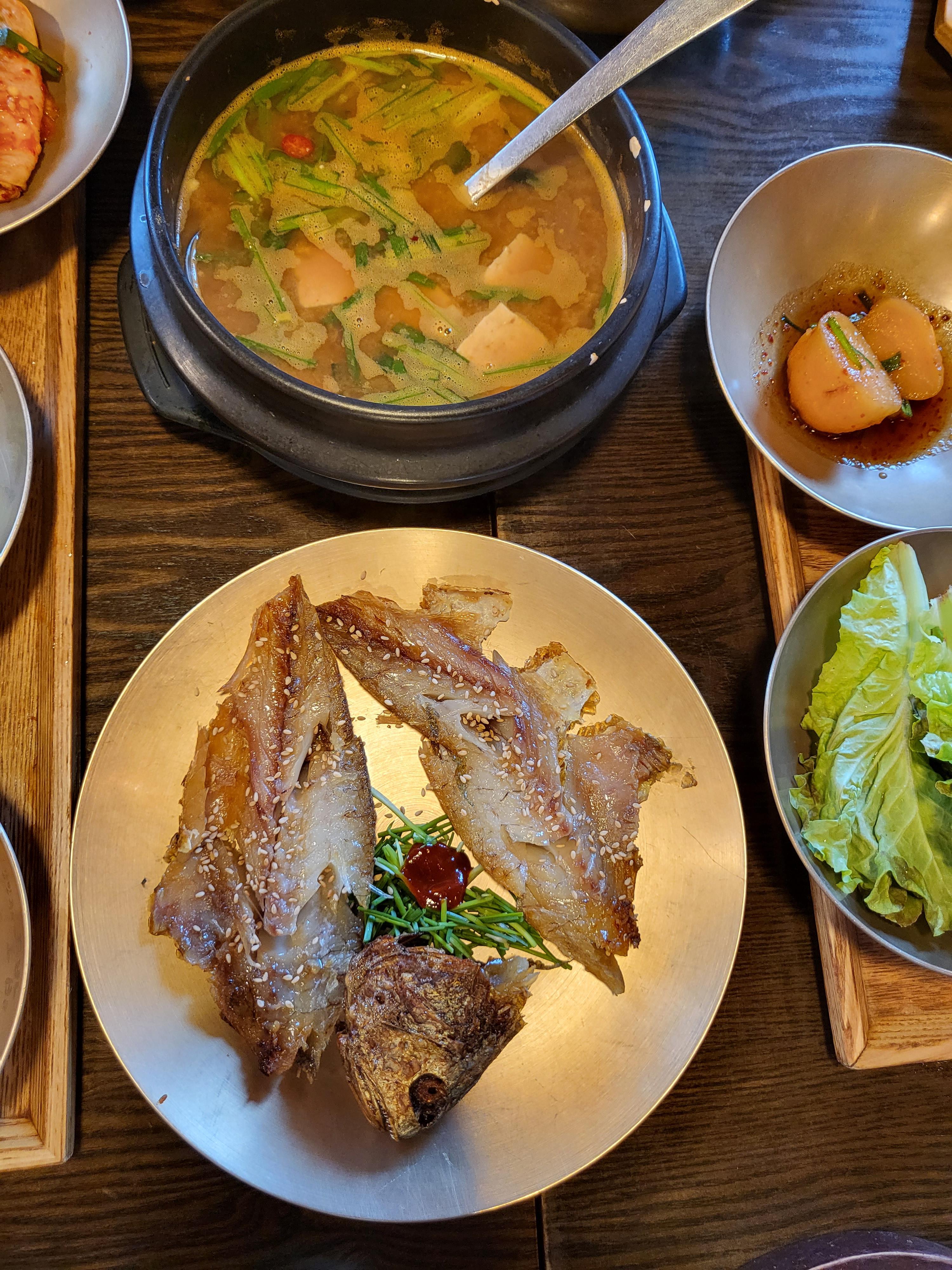 그리고 청국장이랑 보리굴비도 동시에 나왔습니다. 보리굴비 먹는 방법은 장모님이 알려주셨는데 먹는 방법이 신기했습니다.