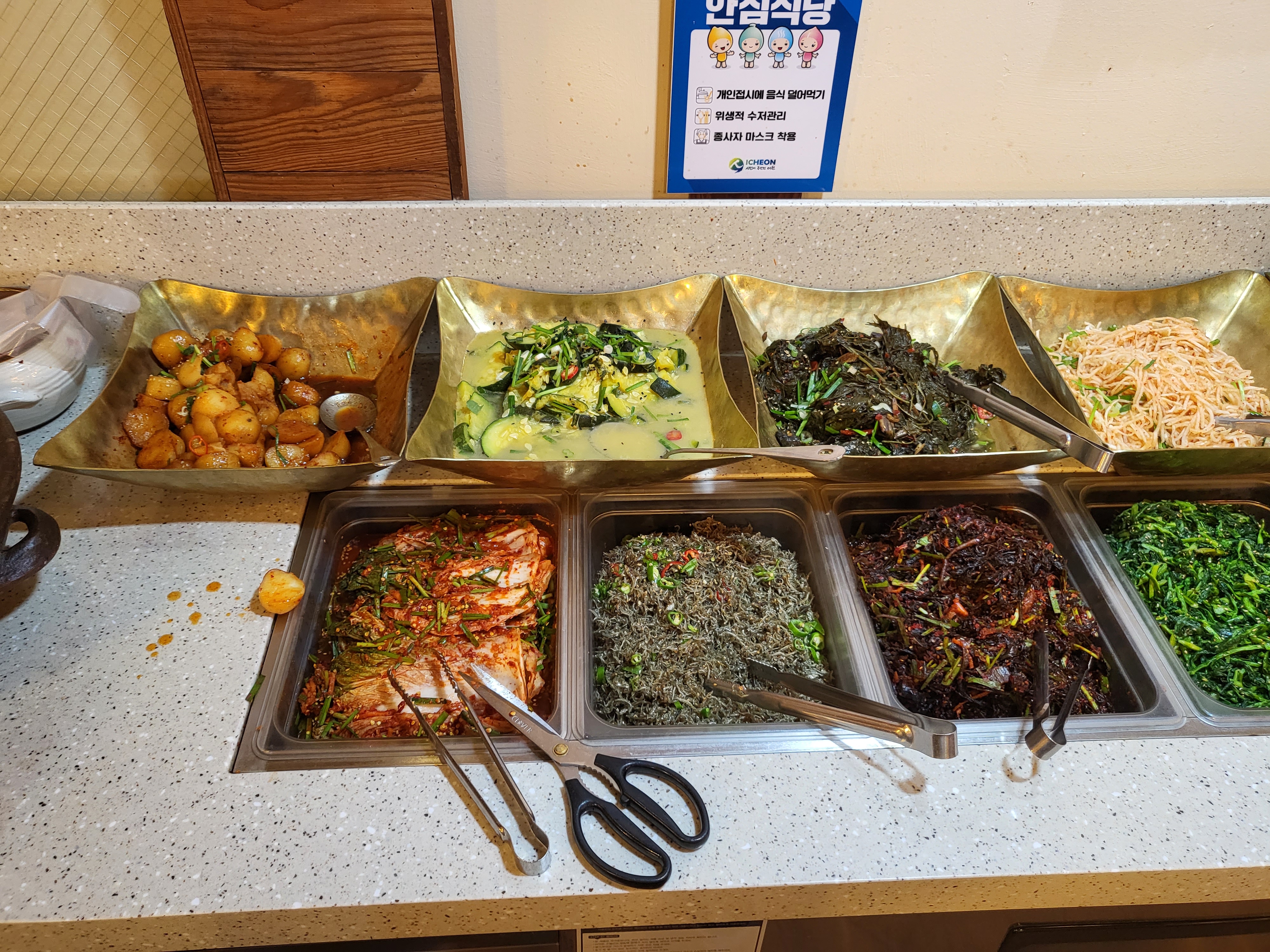 제철 반찬을 먹다가 부족하다면 셀프코너 가서 직접 먹고 싶은 만큼 담아 올 수 있습니다.