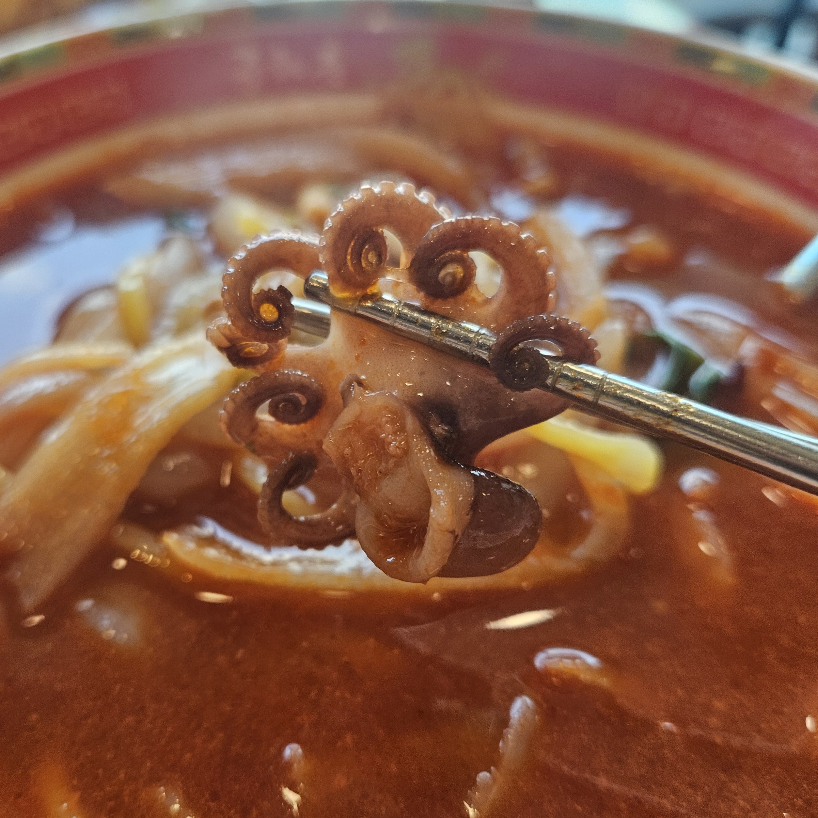 탕수육 다음으로 나온 짬뽕. 우선 건더기가 많이 들어있고 해물도 많이 들어있어 좋았는데요.