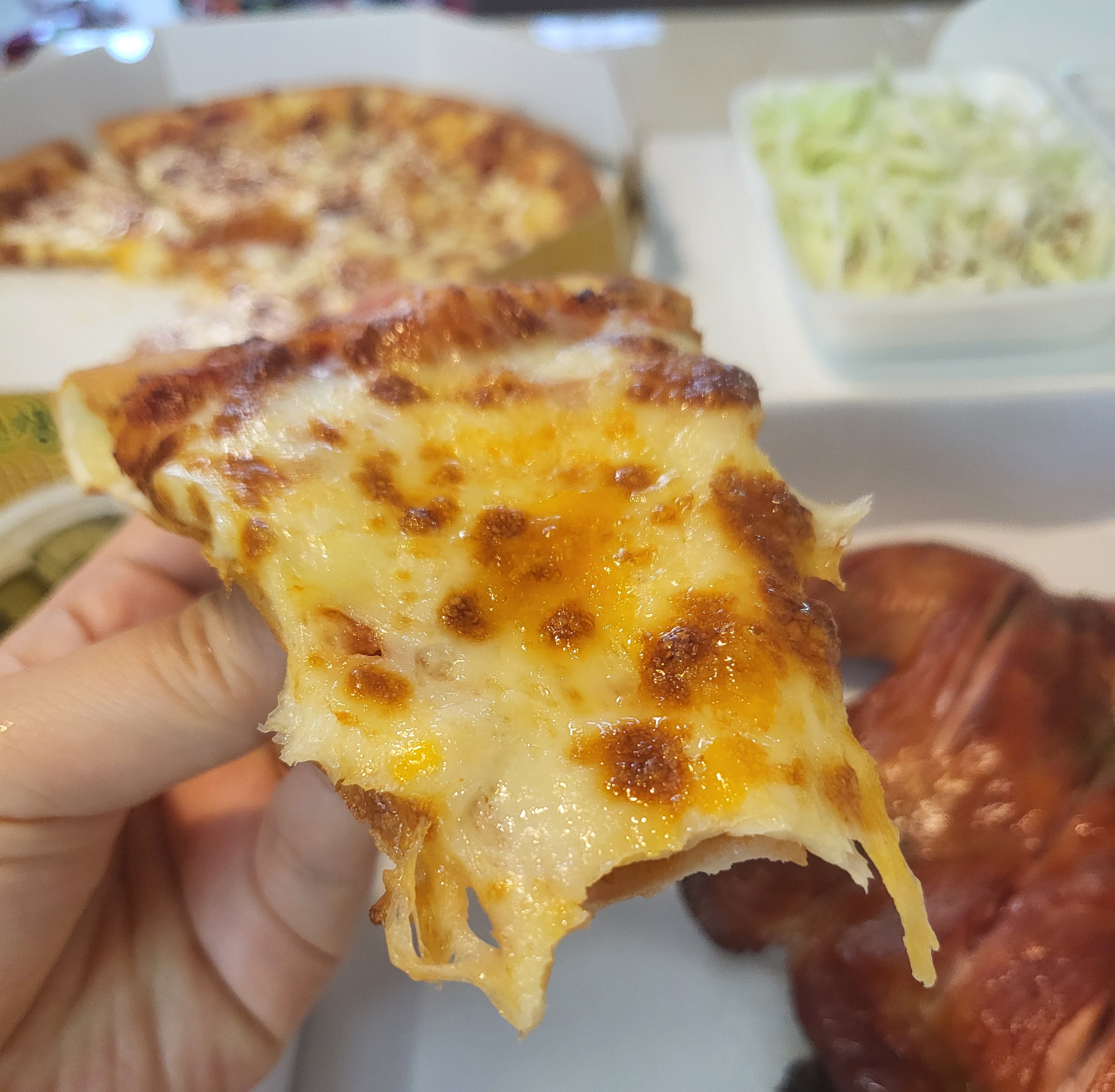 그리고 피자를 먹다가 남은 양배추랑 같이 먹어보았는데 아삭아삭 식감이 더해져서 그런지 옛날 양배추 햄버거 먹는 느낌이 나면서 더 맛있더라고요.