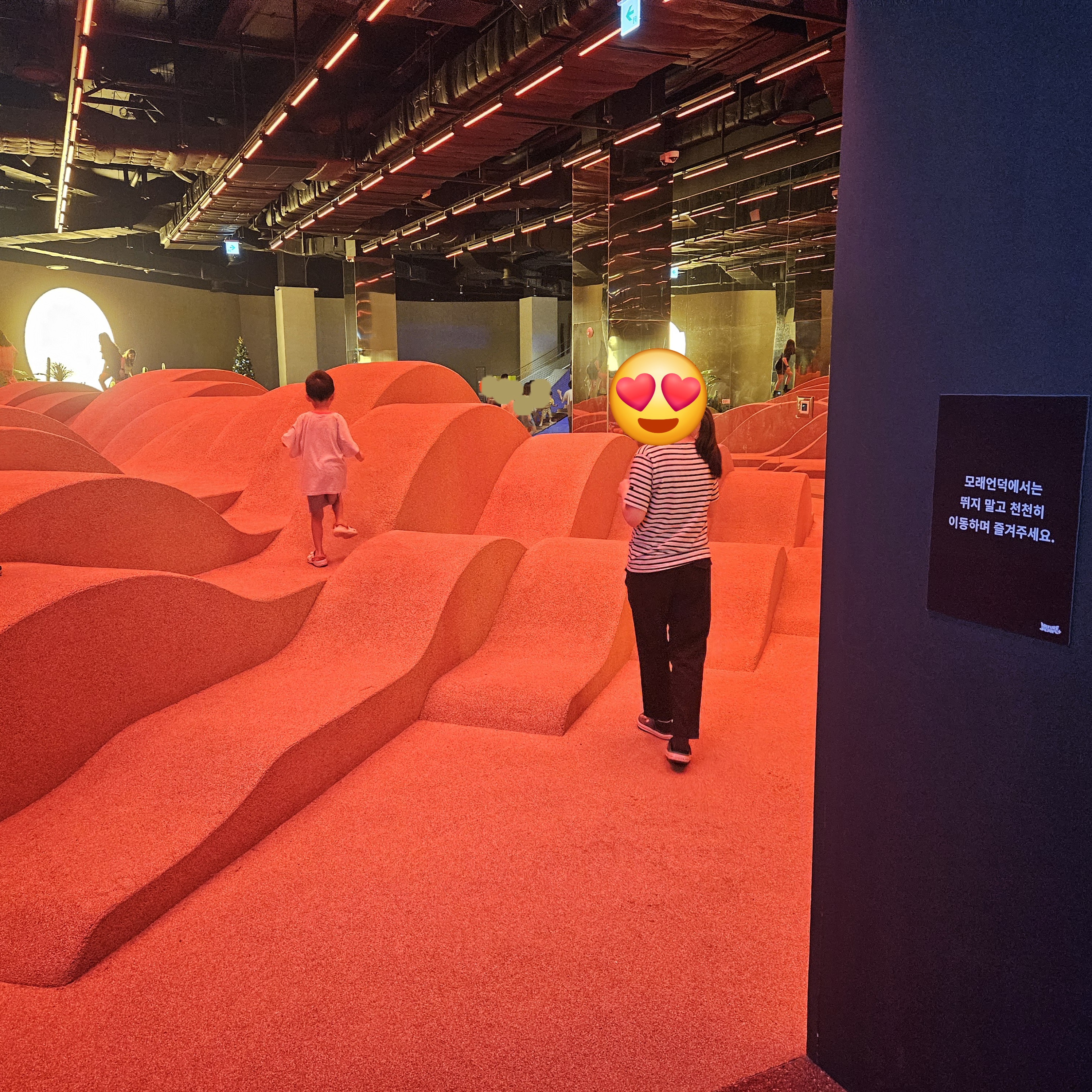 모래언덕 높낮이가 생각보다 심한 구간이 있긴 하지만 열심히 뛰어다니더라고요. 그리고 정각마다 모래언덕 듄에서는 버블 이벤트도 진행해 줘 저희 아들뿐 아니라 다른 아이들도 신나 하면서 좋아했답니다.