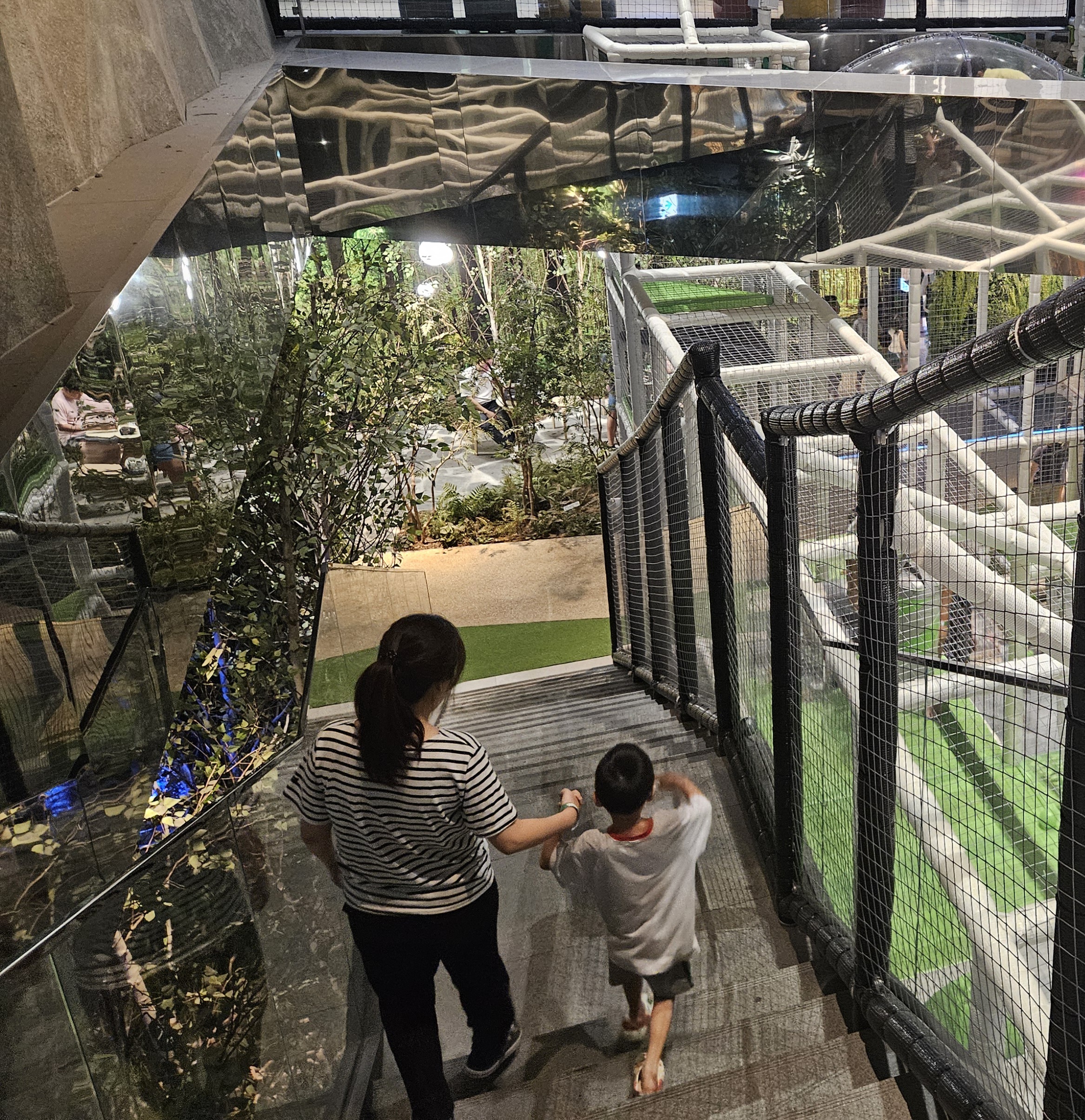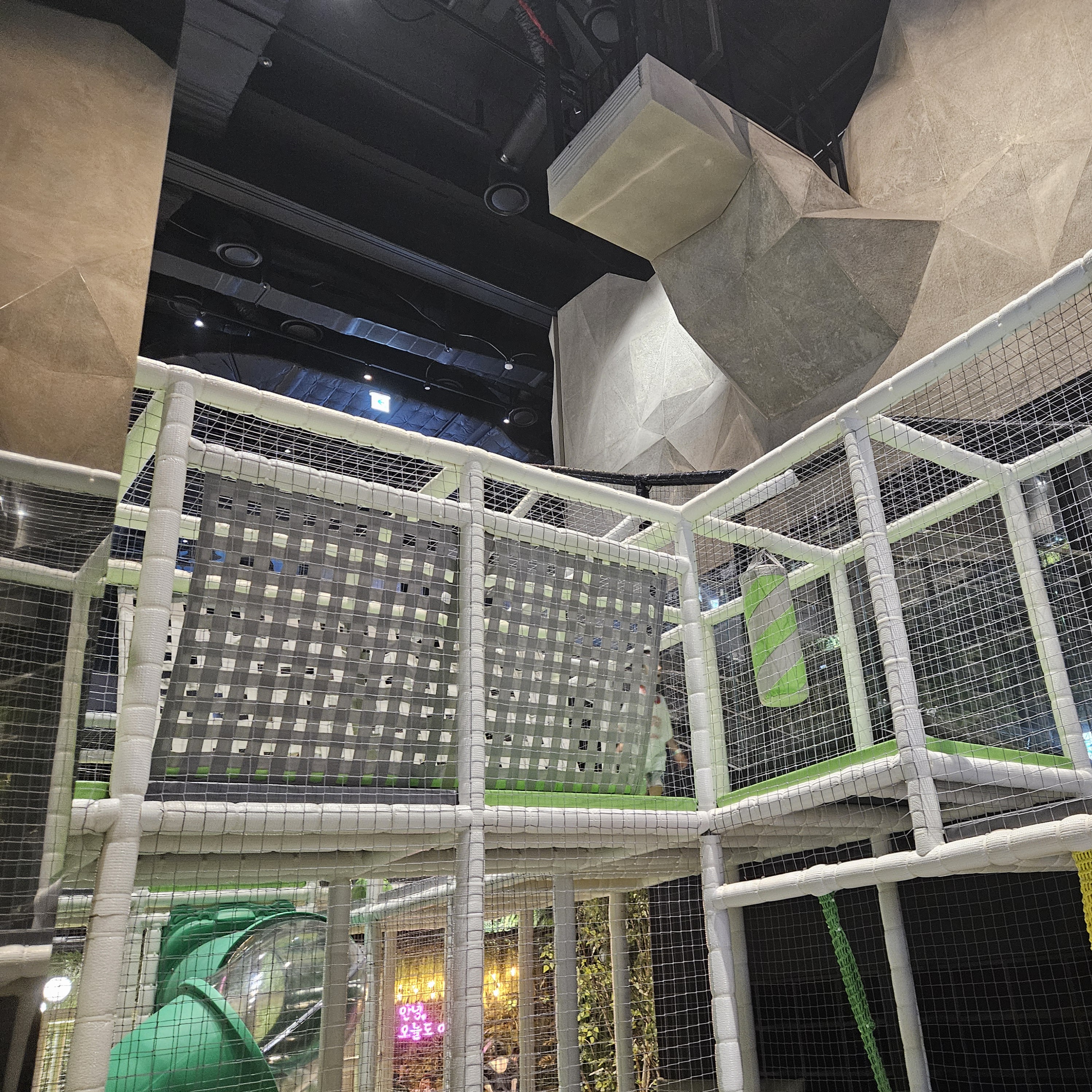 약 4-5층 정도되는 곳을 다람쥐처럼 탐험하는데 어찌나 빠르던지. 예전엔 겁먹어서 하지도 못했던걸 한번 익숙해지고 안전하다고 느껴지면 곧 잘하는 거 같더라고요. 다른 몇 분 어른들도 애들 따라 체험하길래 따라 하다 죽는 줄 알았답니다.