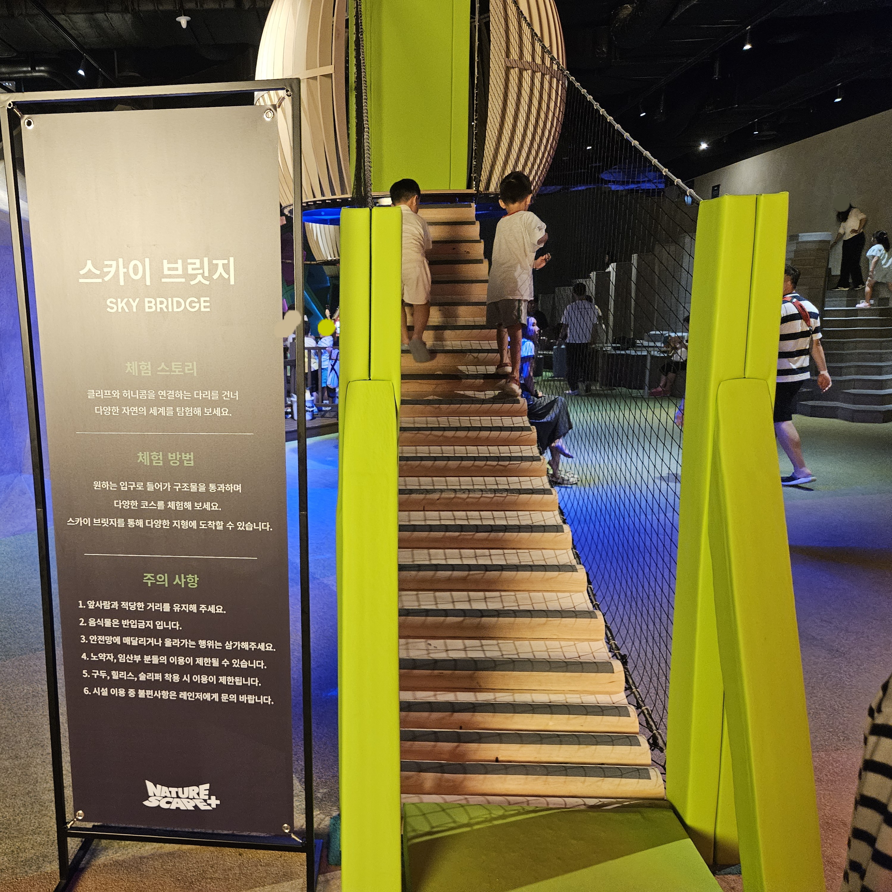 그다음 스카이 브릿지라는 하늘 다리를 이용해 이곳저곳 탐험할 수 있게 해 놓았는데 우리 아들이 이걸 제일 좋아하더라고요.