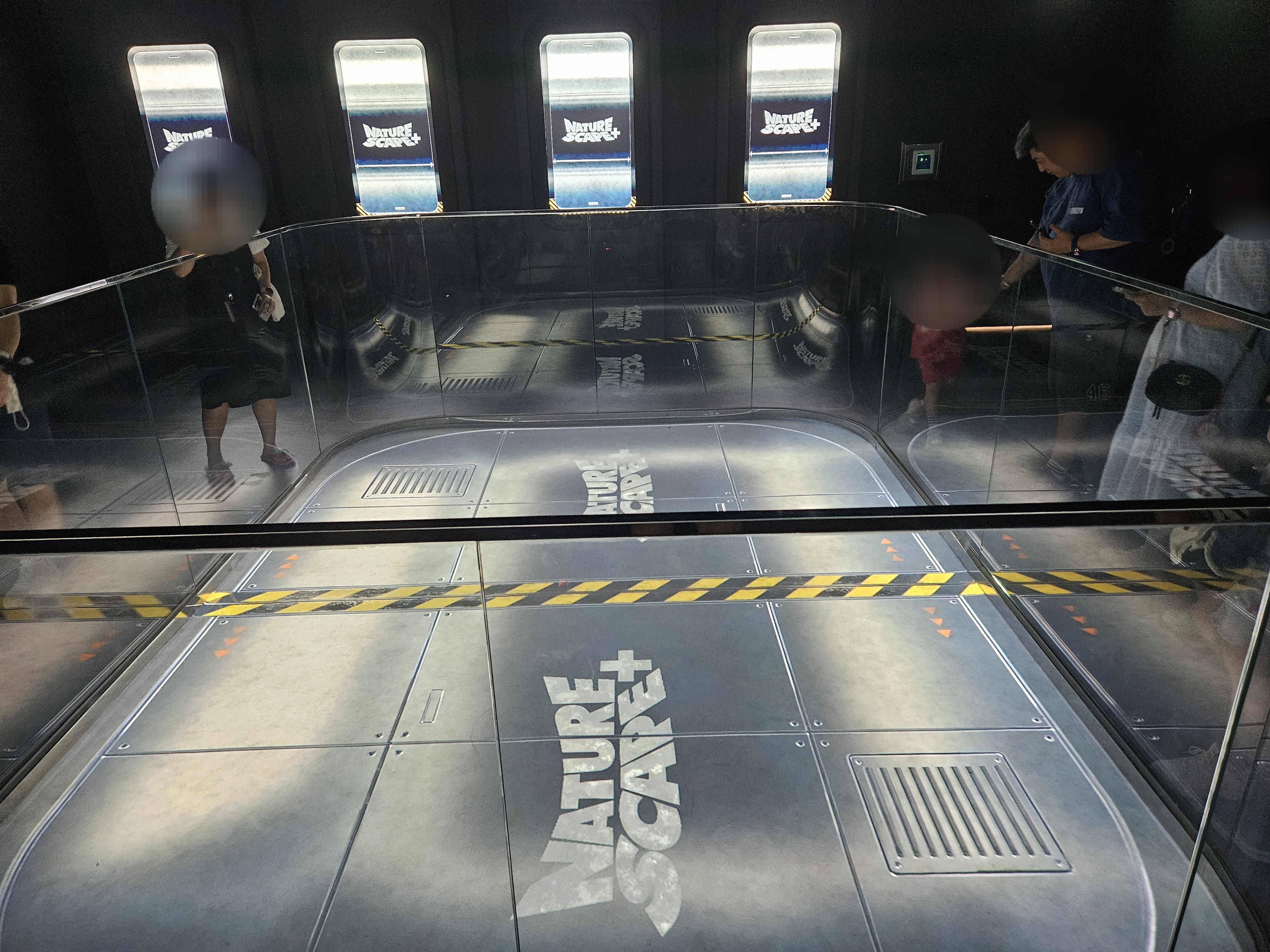 셔틀이라는 곳에서는 유리 원형을 둘러싸고 가상 헬리콥터를 타는 거였는데요. 아들이랑 같이 보면서 저 또한 처음 경험에 설렜지만 계속 영상을 보고 있으니 조금 어지럽더라고요.