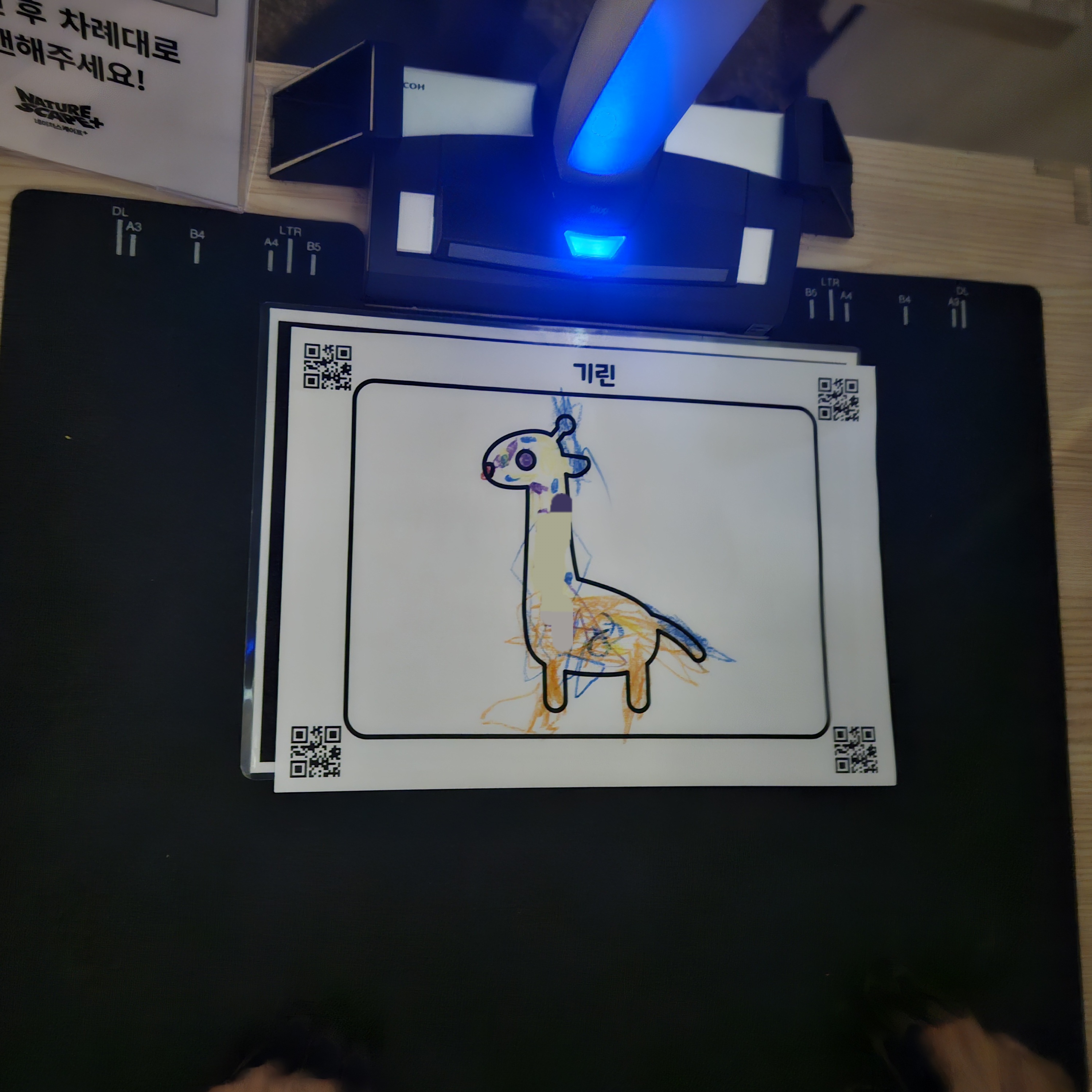 무엇보다 입구 왼쪽으로 가면 코뿔소, 얼룩말, 기린, 사자 중 원하는 그림을 선택해 색칠 후 스캔을 하면 색칠한 동물이 스크린에 나온다길래 한번 해보았습니다.