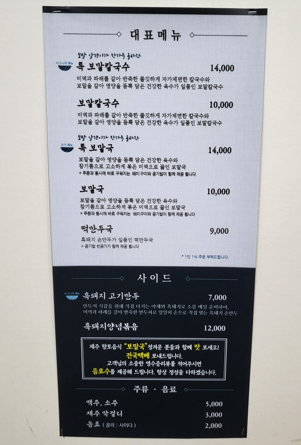 역시 메인 메뉴인 보말칼국수를 먹어봐야겠죠? 반죽을 미역과 파래를 갈아서 만든다고 하는데 맛이 궁금해지더라고요. 그 외 흑돼지고기만두 또한 미역과 파래를 갈아 반죽한 만두피로 만든다고 하길래 맛이 궁금해 흑돼지고기만두도 시켜보았답니다. 보말칼국수와 흑돼지고기만두 과연 어떤 맛이 날지 궁금했는데요.