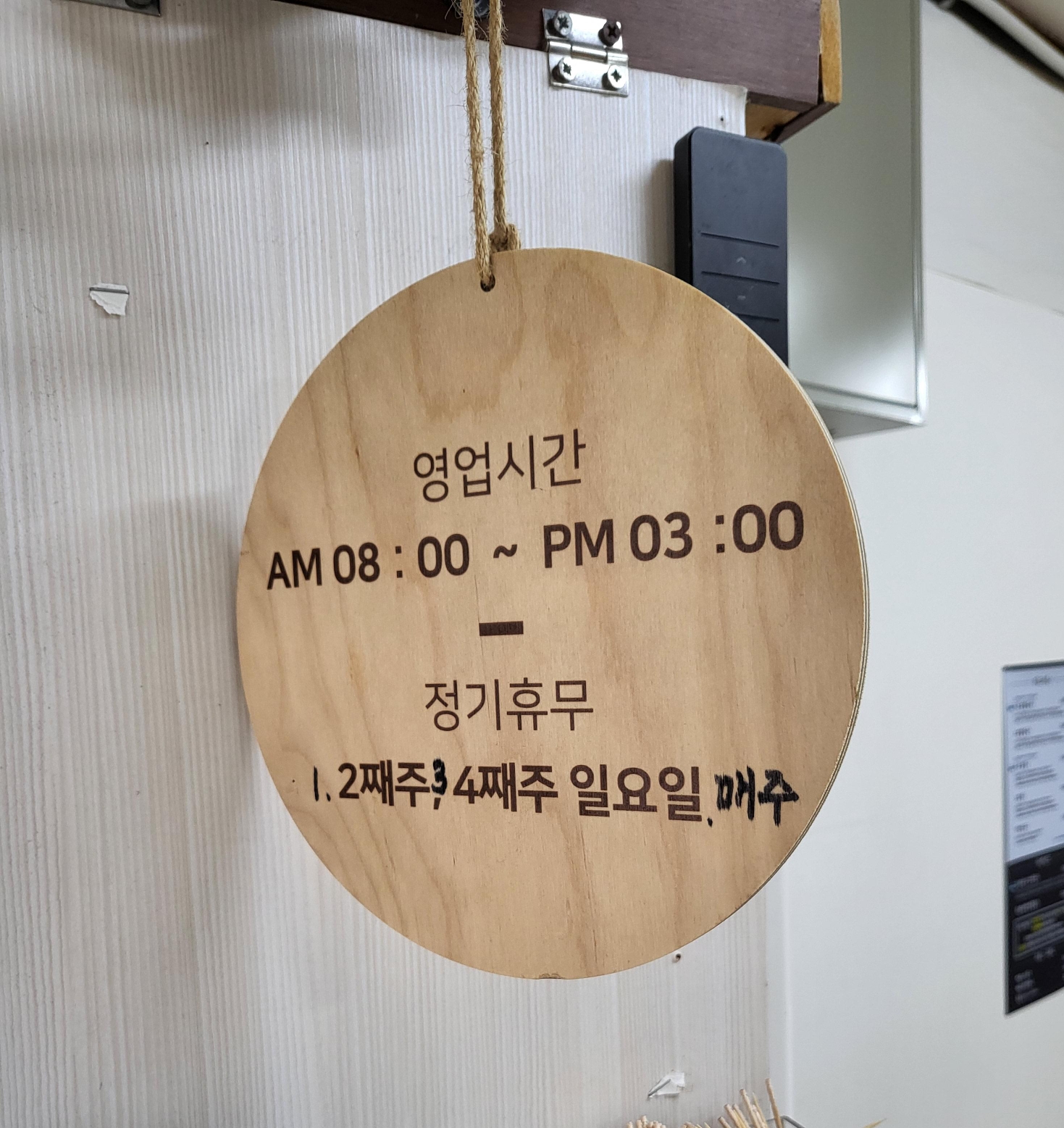 영업시간은 오전 8시에 시작해서 오후 3시에 마감하더라고요. 정기휴무는 매주 일요일에 쉬었습니다. 아침 및 점심 장사만 해도 근처 사시는 분들이 많이 방문하는 듯했는데요. 마지막 주문은 오후 2시 30분까지라고 하니 그전에 방문하는 게 좋을 것 같습니다. 위치는 제주 제주시 연동 322-18 골목길에 위치해 있어 무료 주차장은 없고 근처 공용주차장에 주차를 하던지 아니면 골목길에 자리가 있으면 주차를 해야 했는데 저희는 비용이 발생해도 그냥 공용주차장에 주차를 했습니다.