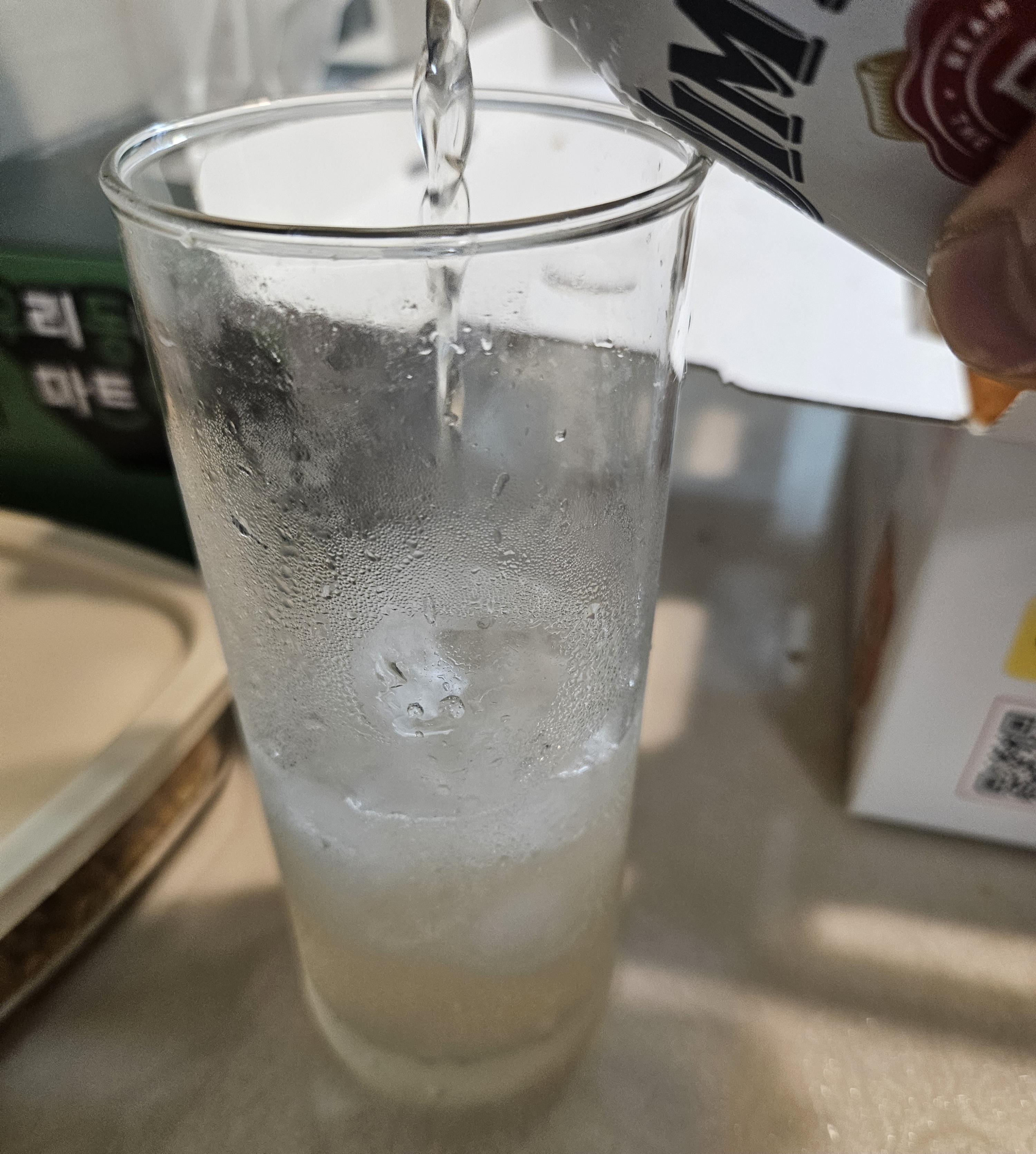 일단 얼음을 넣어서 그런 건지 맛이 좀 밍밍하다?라는 느낌을 받았지만 먹을만하더라고요. 알코올맛이 강하지 않아 술을 잘 못 마시는 분들한테는 좋지 않을까 라는 생각을 했답니다.