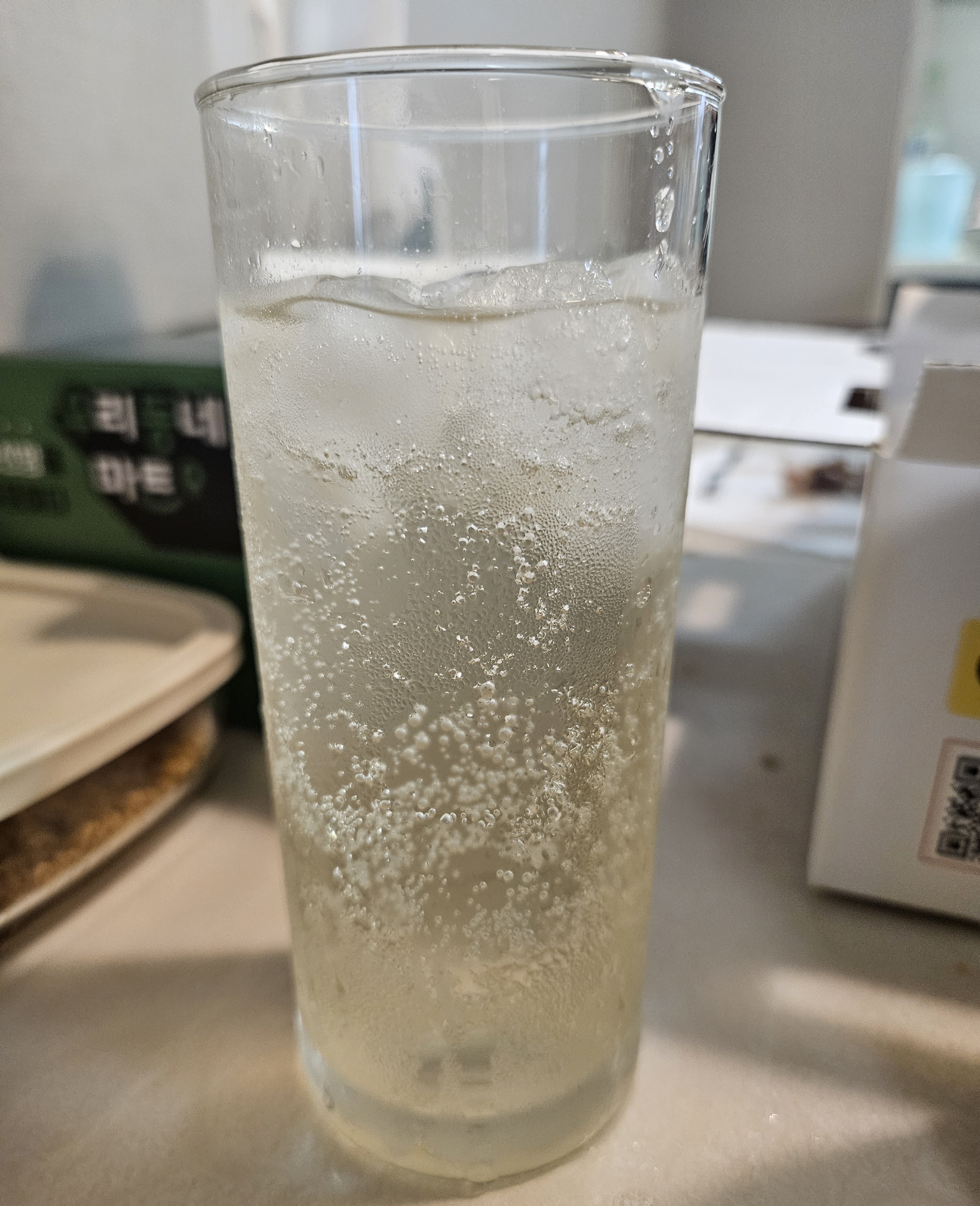 일단 얼음을 넣어서 그런 건지 맛이 좀 밍밍하다?라는 느낌을 받았지만 먹을만하더라고요. 알코올맛이 강하지 않아 술을 잘 못 마시는 분들한테는 좋지 않을까 라는 생각을 했답니다.