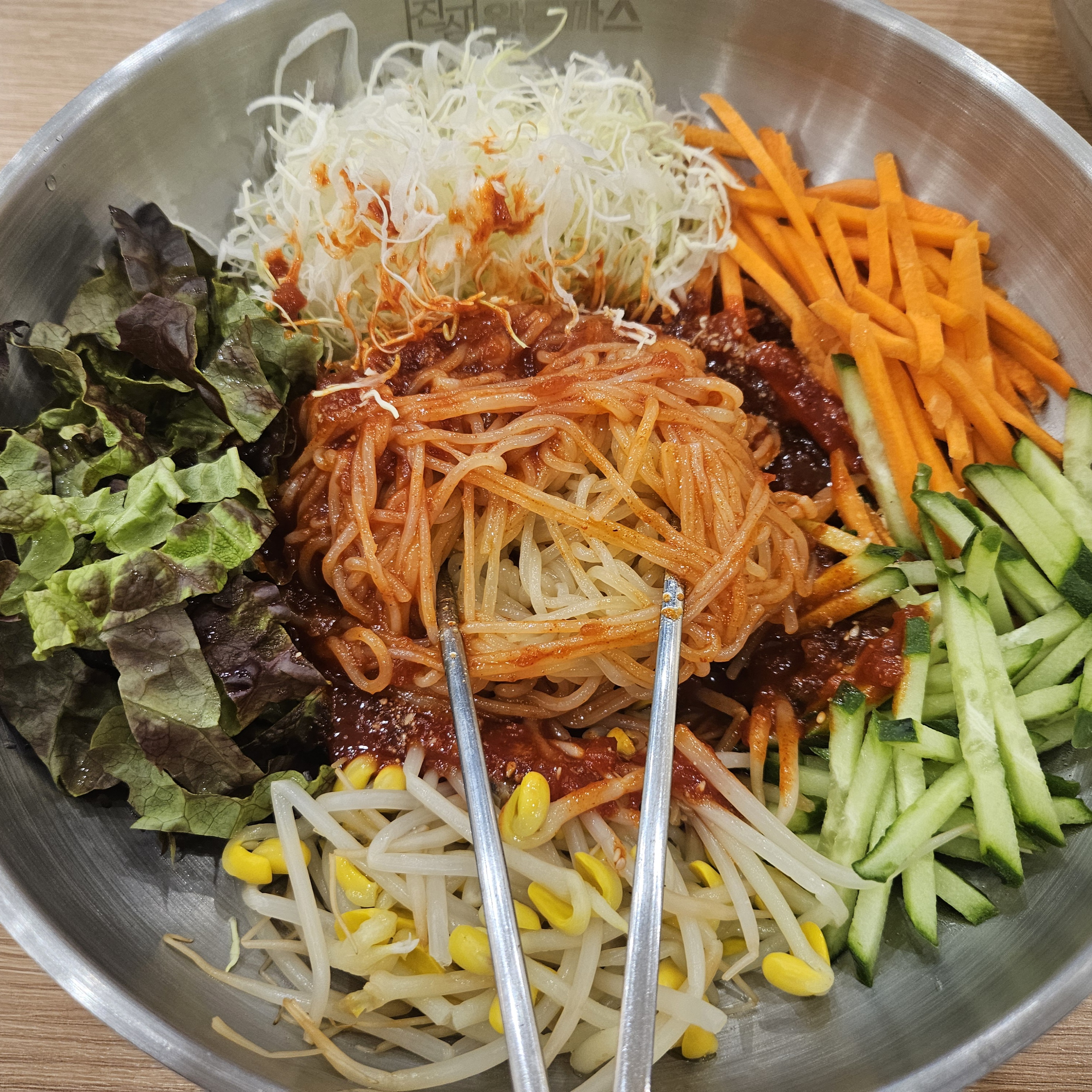 그리고 쫄면 또한 면이 쫄깃하고 소스가 한몫해 너무 맛있었는데요. 면도 면이지만 야채가 정말 많이 들어가 식감이 더해져서 그런지 더욱더 맛있더라고요.