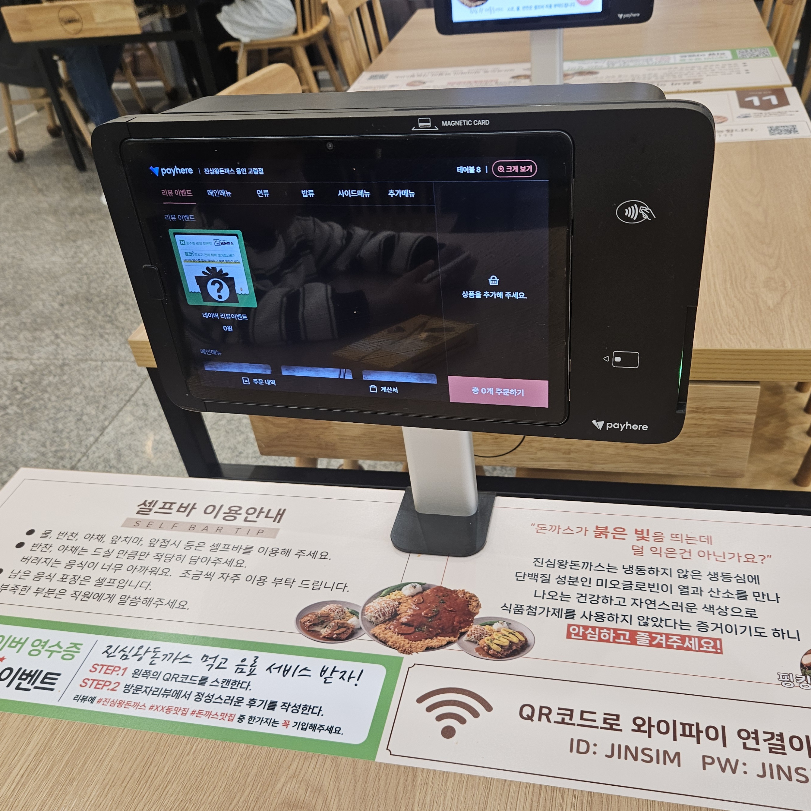 각 테이블에는 키오스크가 배치되어 있어 주문과 동시에 결제까지 같이 진행되더라고요.