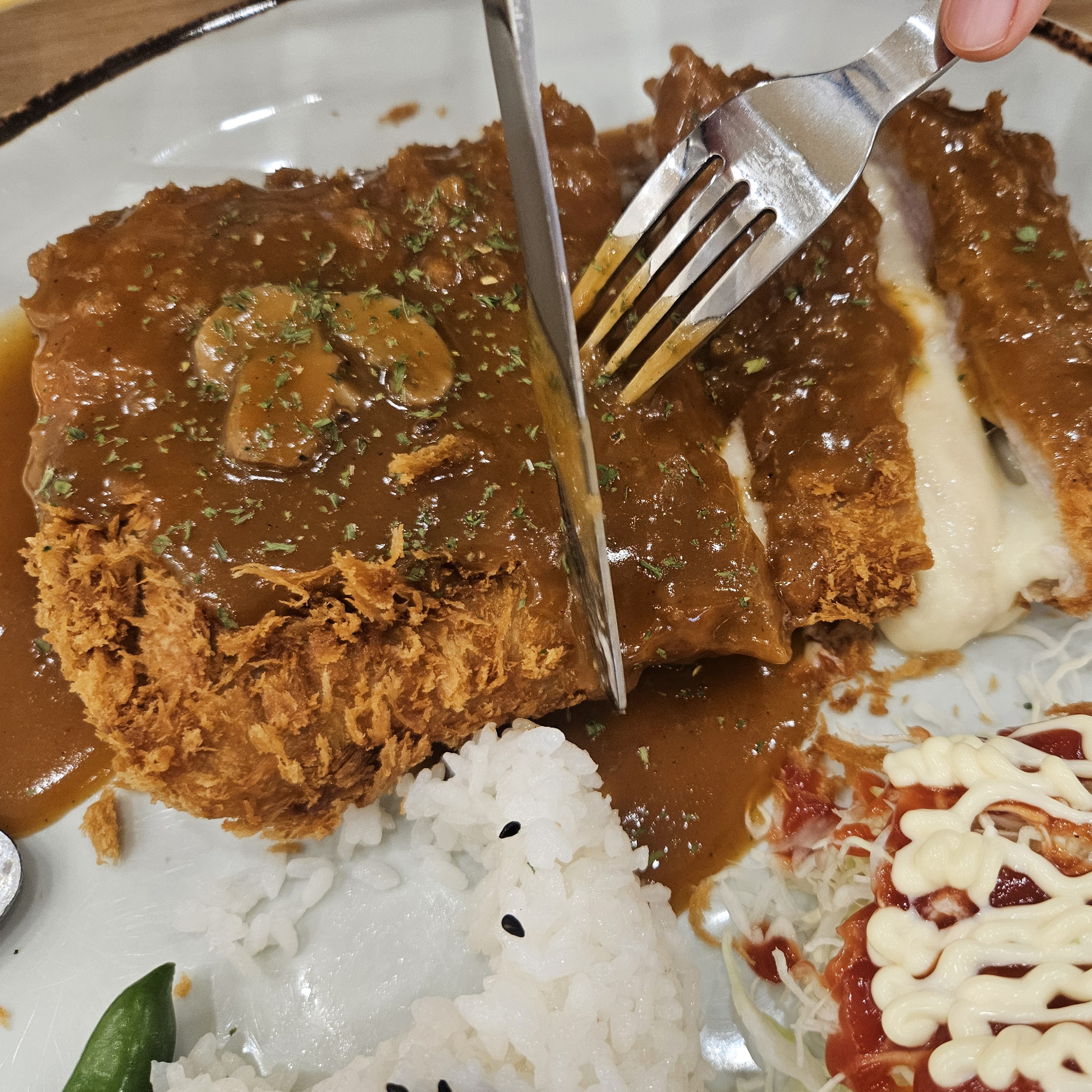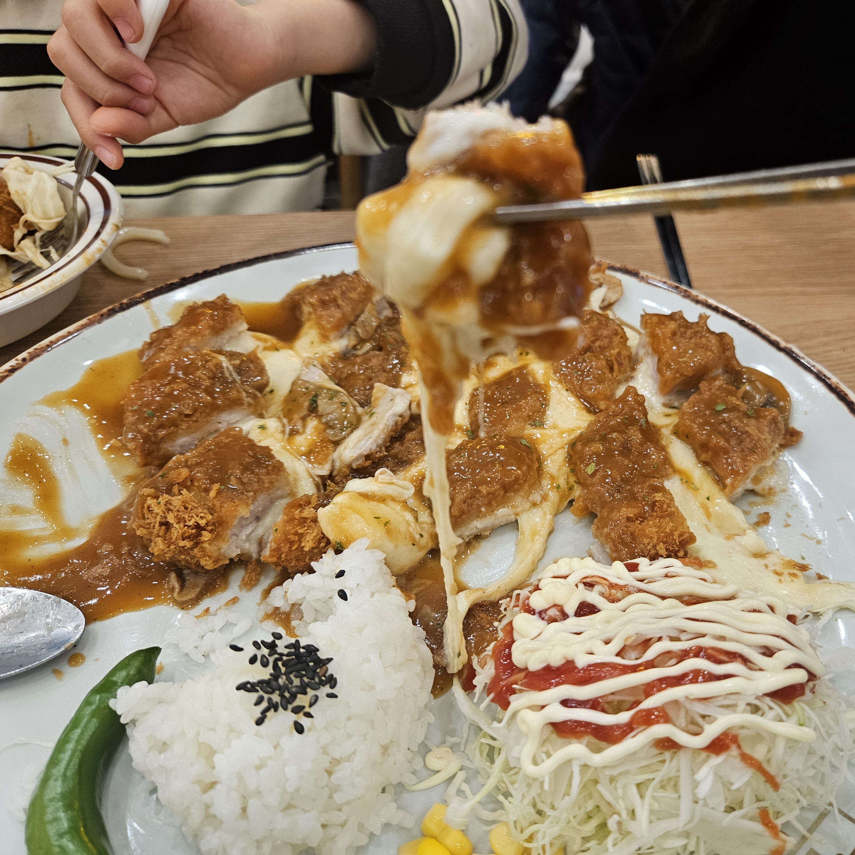 아들이 좋아하는 치즈돈까스. 치즈가 흘러 넘 칠 정도로 많이 들어가서 있어 쫀득하면서 고소한 게 어찌나 맛있던지. 치즈돈까스는 정말 맛있는 거 같아요.