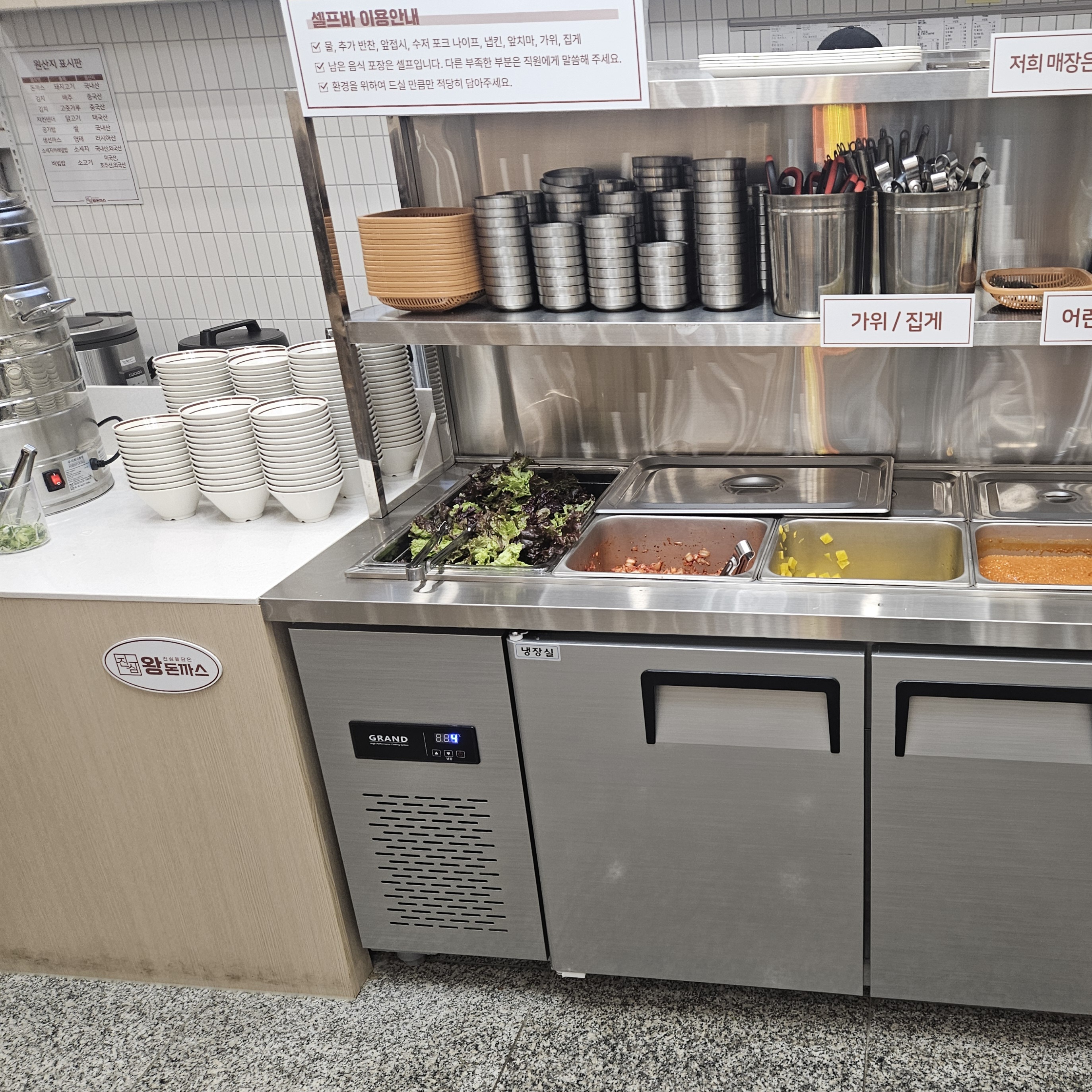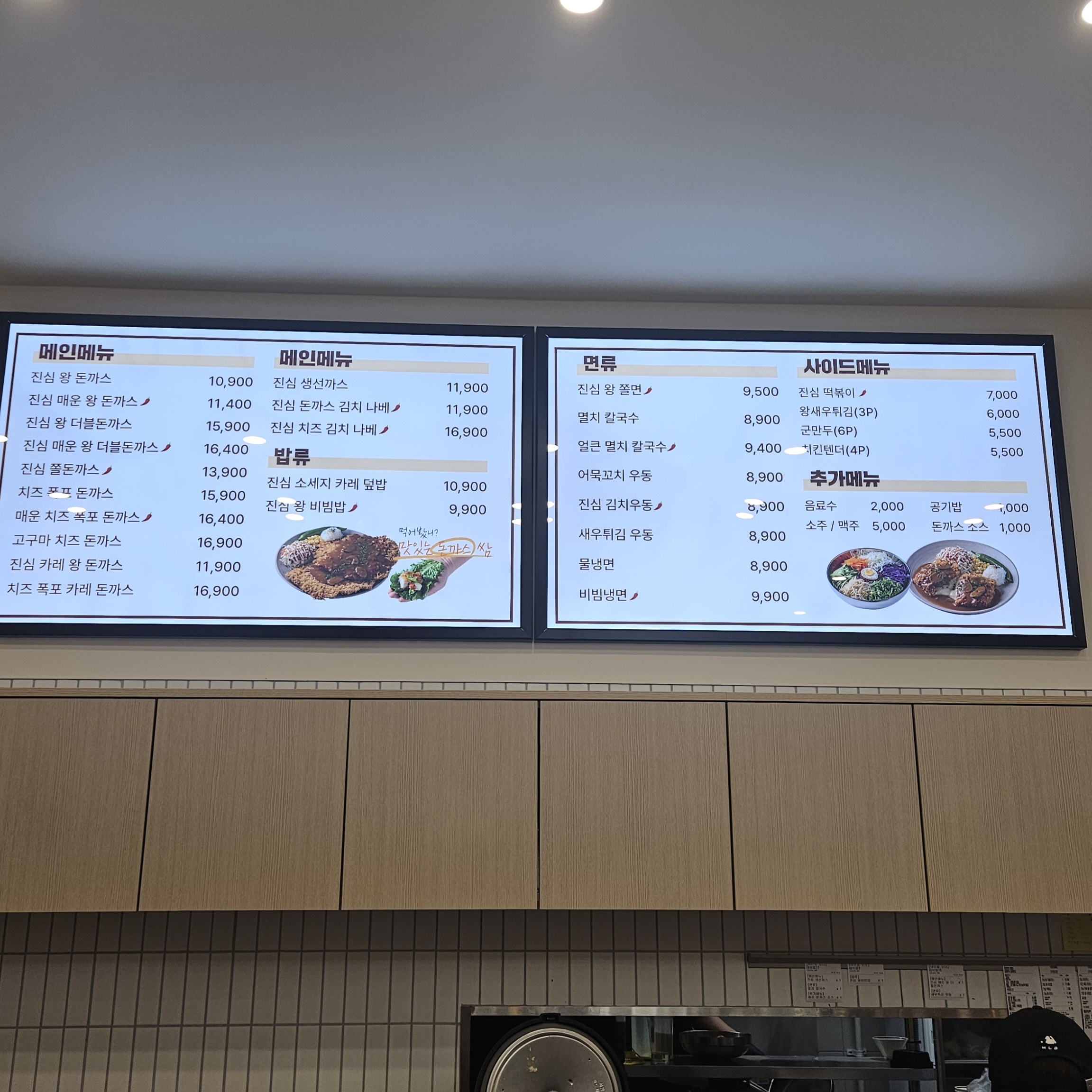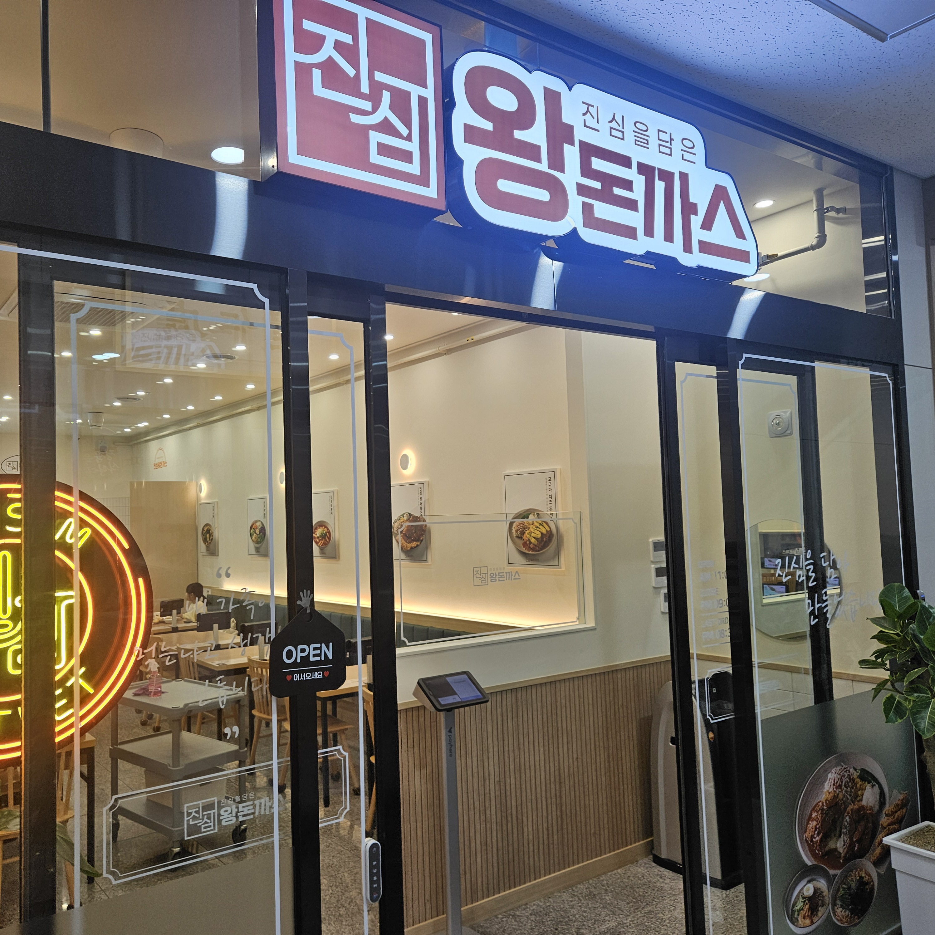 그렇게 바로 문을 열고 들어가면 진심왕돈까스가 보이는데요. 오픈한 지 며칠 안돼서 그런지 깨끗하더라고요.