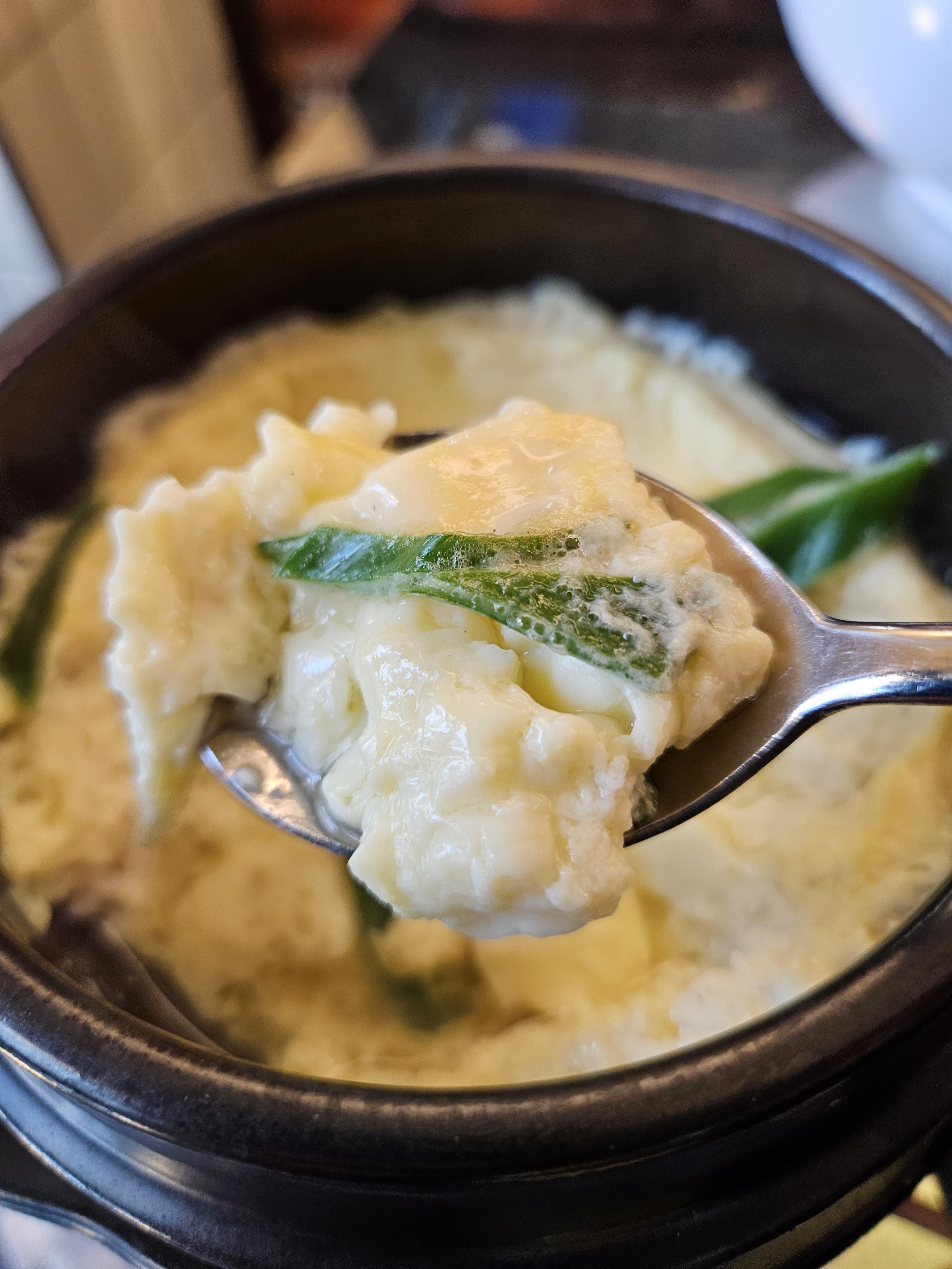계란찜은 정말 푸딩처럼 부드럽고 짜지 않아 손이 계속 갔는데요 계란찜이 식으면 조금 짜기 마련인데 전혀 그렇지 않고 맛있었습니다