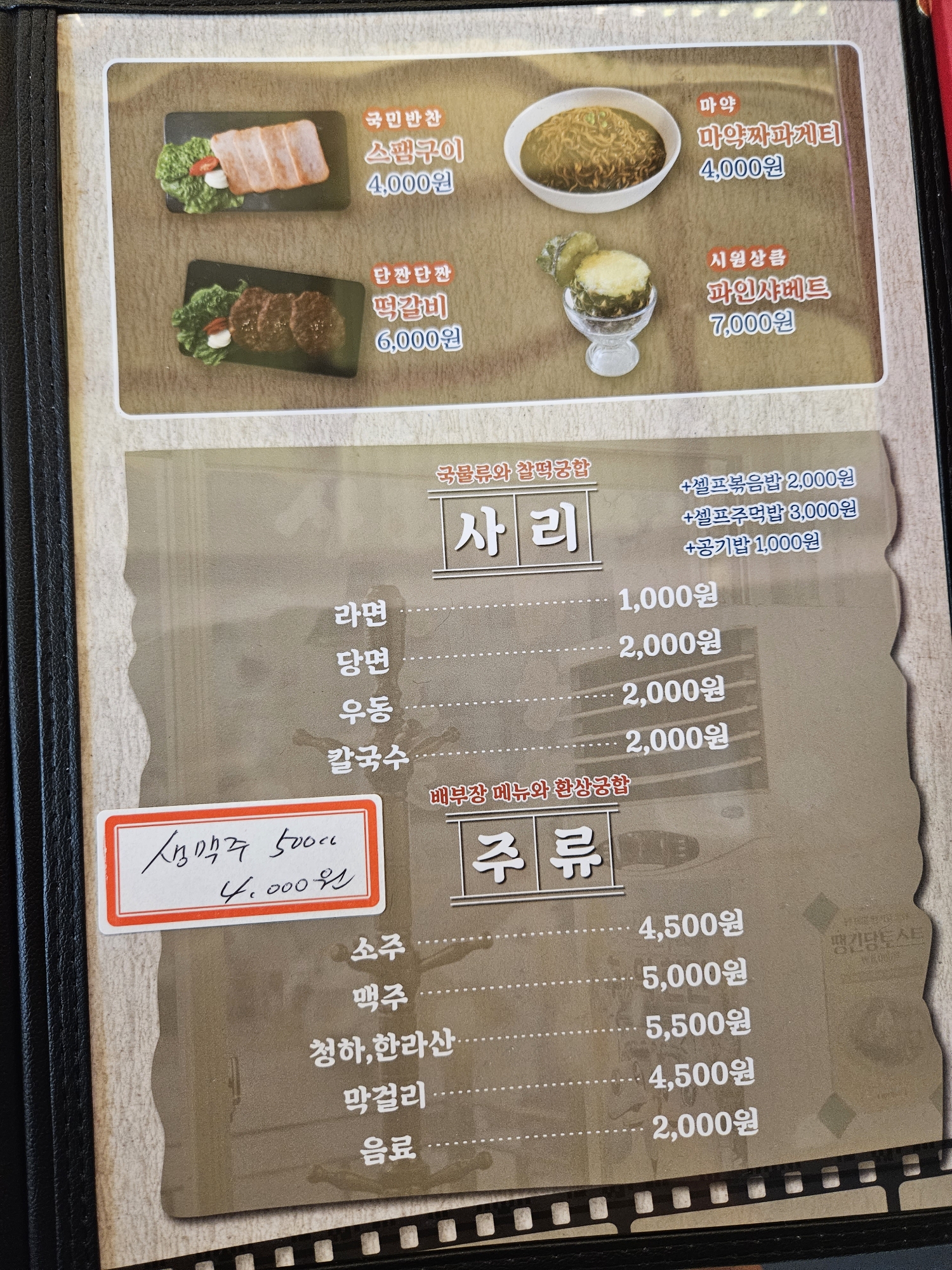 메뉴판 또한 술이 한잔 생각나는 메뉴들로 구성되어 있더라고요