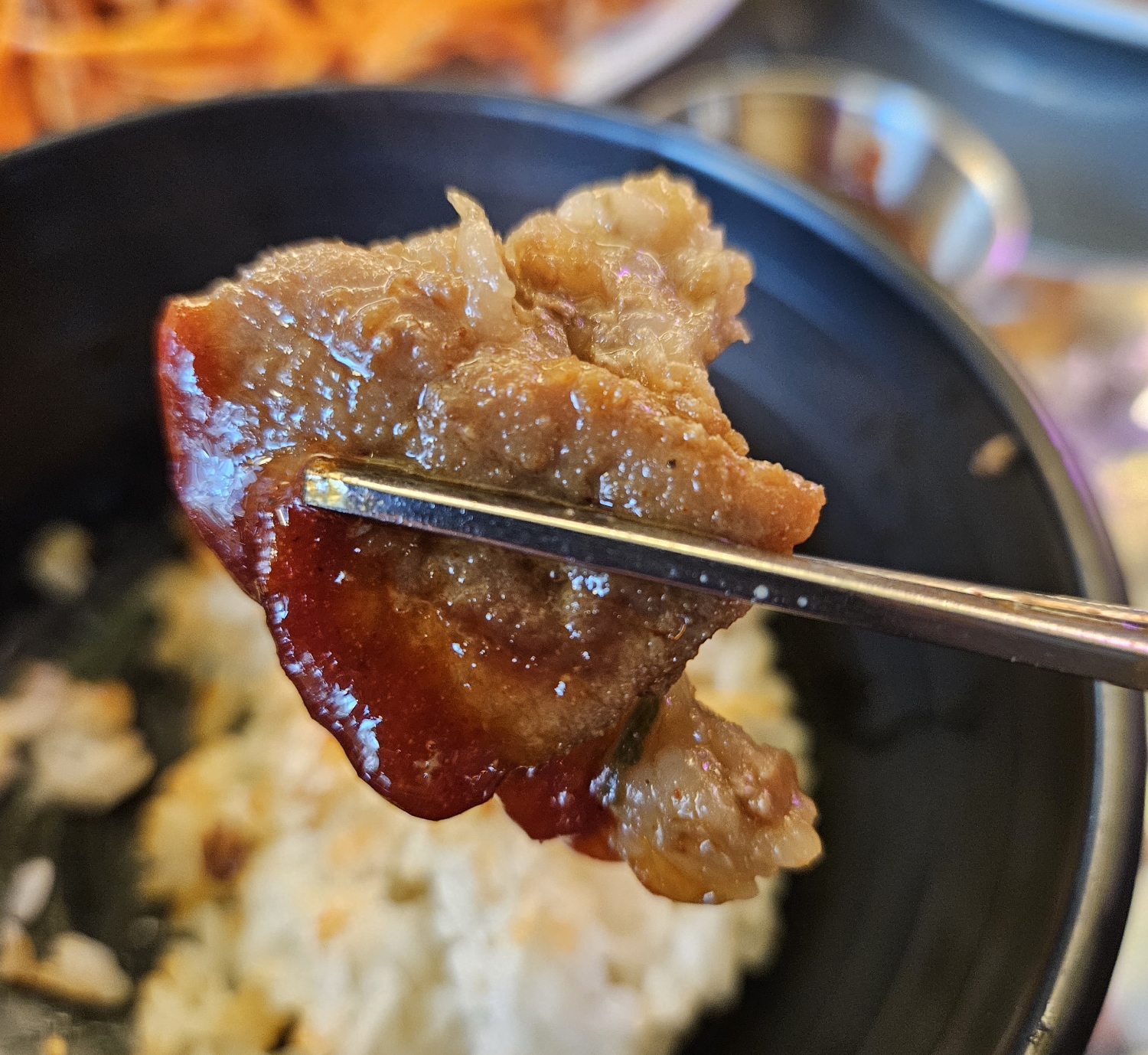 그리고 고기, 야채랑 같이 곁들여 소스를 찍어먹어 보고 그냥 고기만 소스 찍어보고 그냥도 먹어보았는데요 고기가 정말 부드럽고 달달하니 맛있더라고요 그리고 소스 찍어먹으면 약간의 매운맛도 더해져 저는 더 좋았습니다