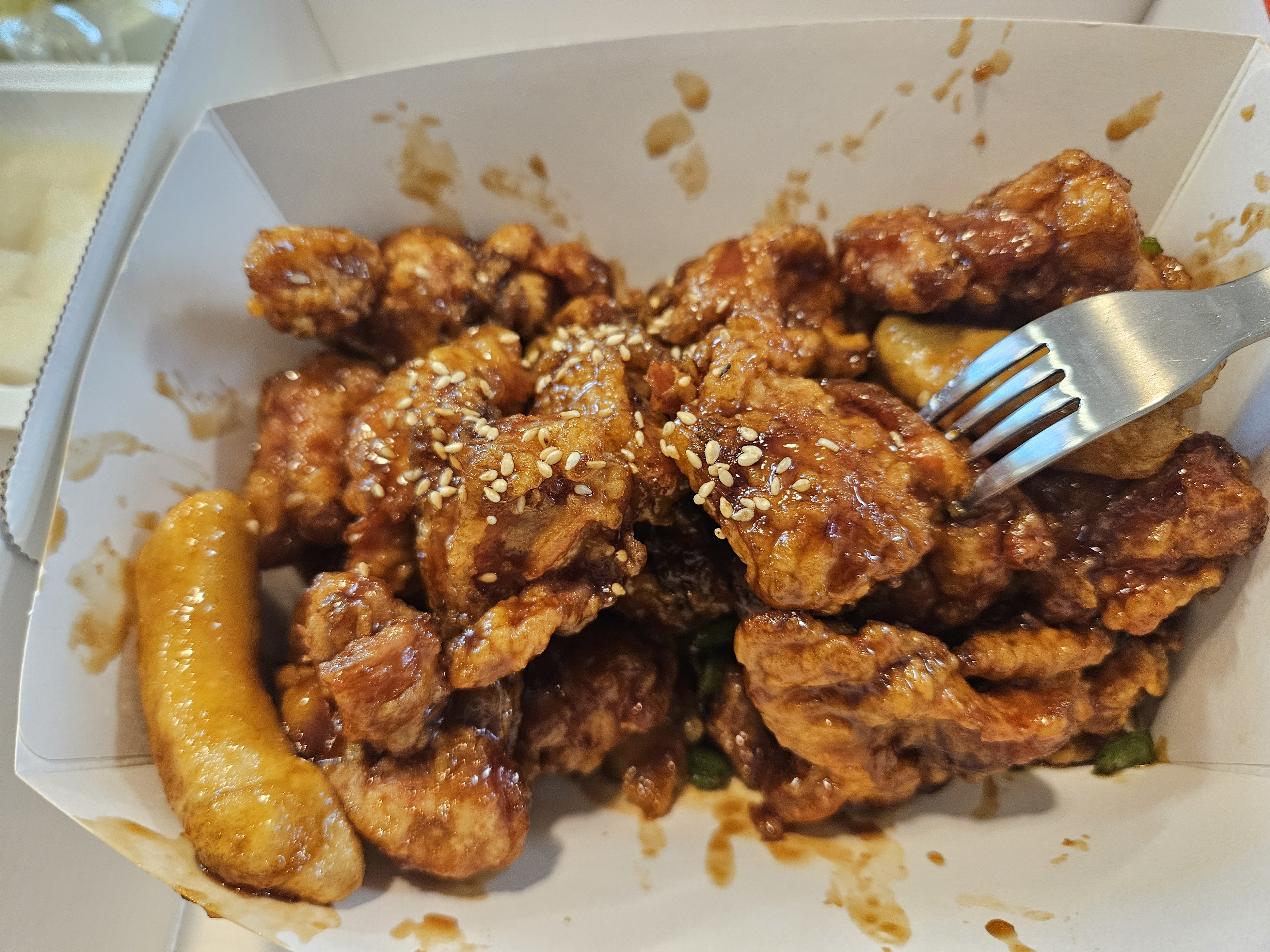 약간 매콤하면서 간장소스가 달짝지근한 게 밥이랑 같이 먹으면 딱 좋겠다는 생각을 했고 아직도 자기가 시킨 치킨이 헬로카봇 치킨인 줄 알고 좋아하면서 먹는 모습에 그냥 만족했답니다.