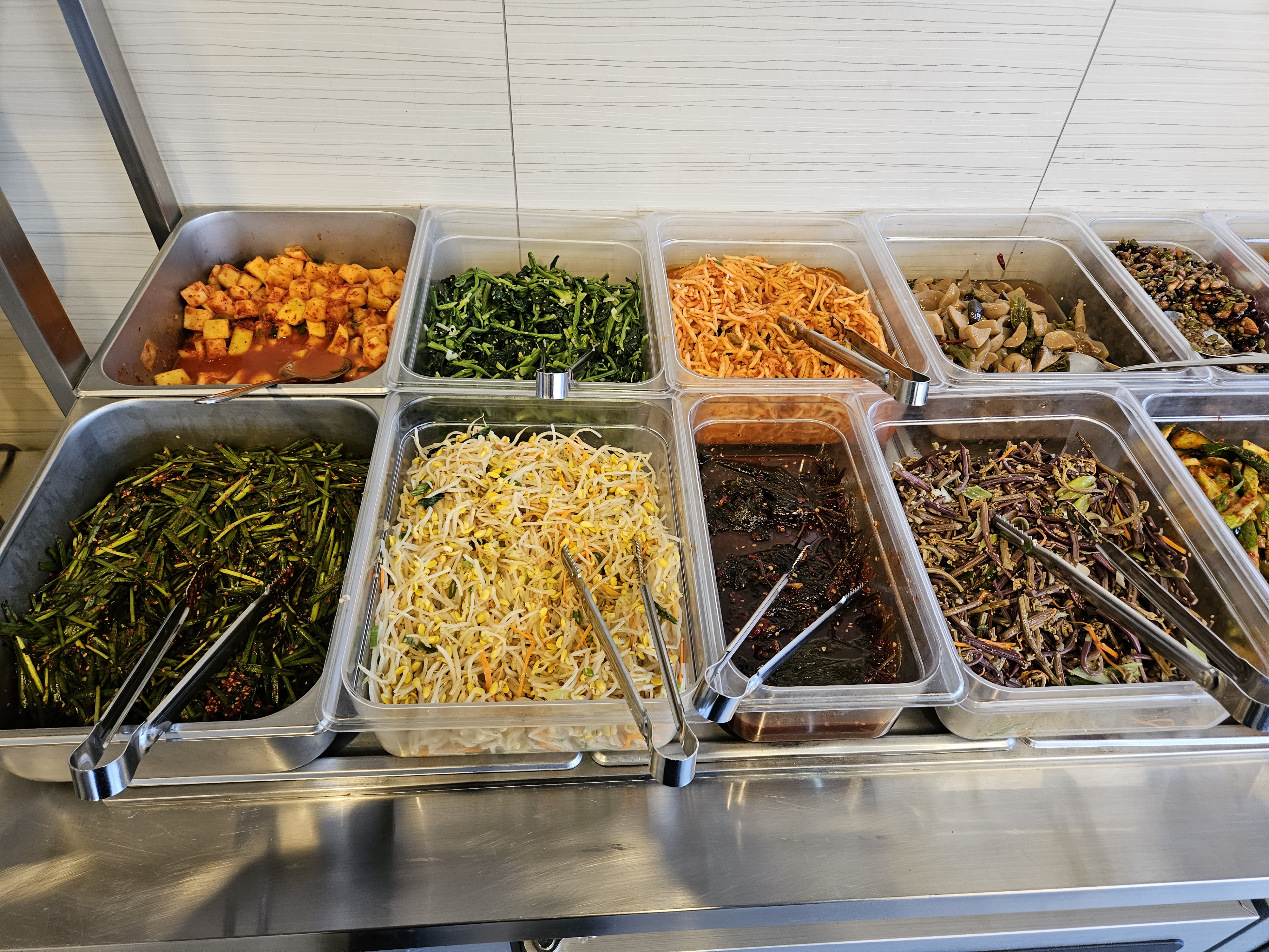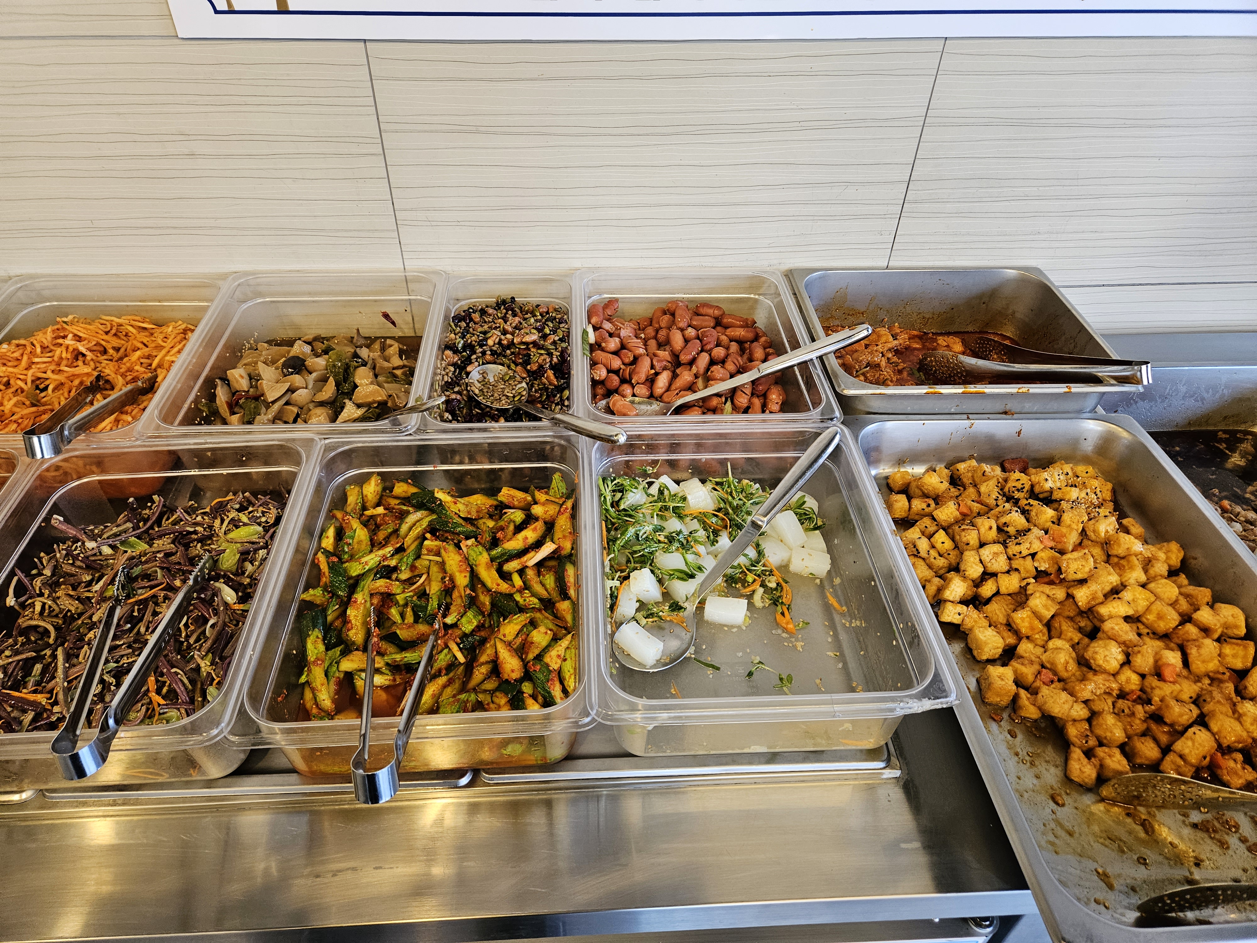 제가 방문했을 당시 반찬들인데요. 야채 반찬 종류가 생각보다 많아서 개인적으로 좋더라고요. 그 외 소세지볶음, 닭고기, 양념고기, 샐러드까지 국을 포함한 반찬 종류가 약 20가지 정도의 종류로 구성되어 있었는데 정말 좋았습니다.