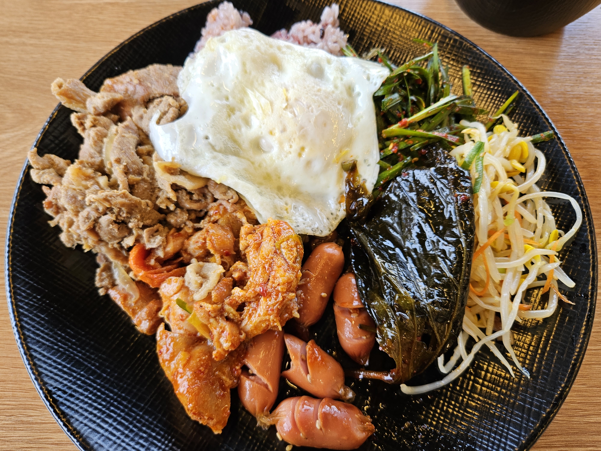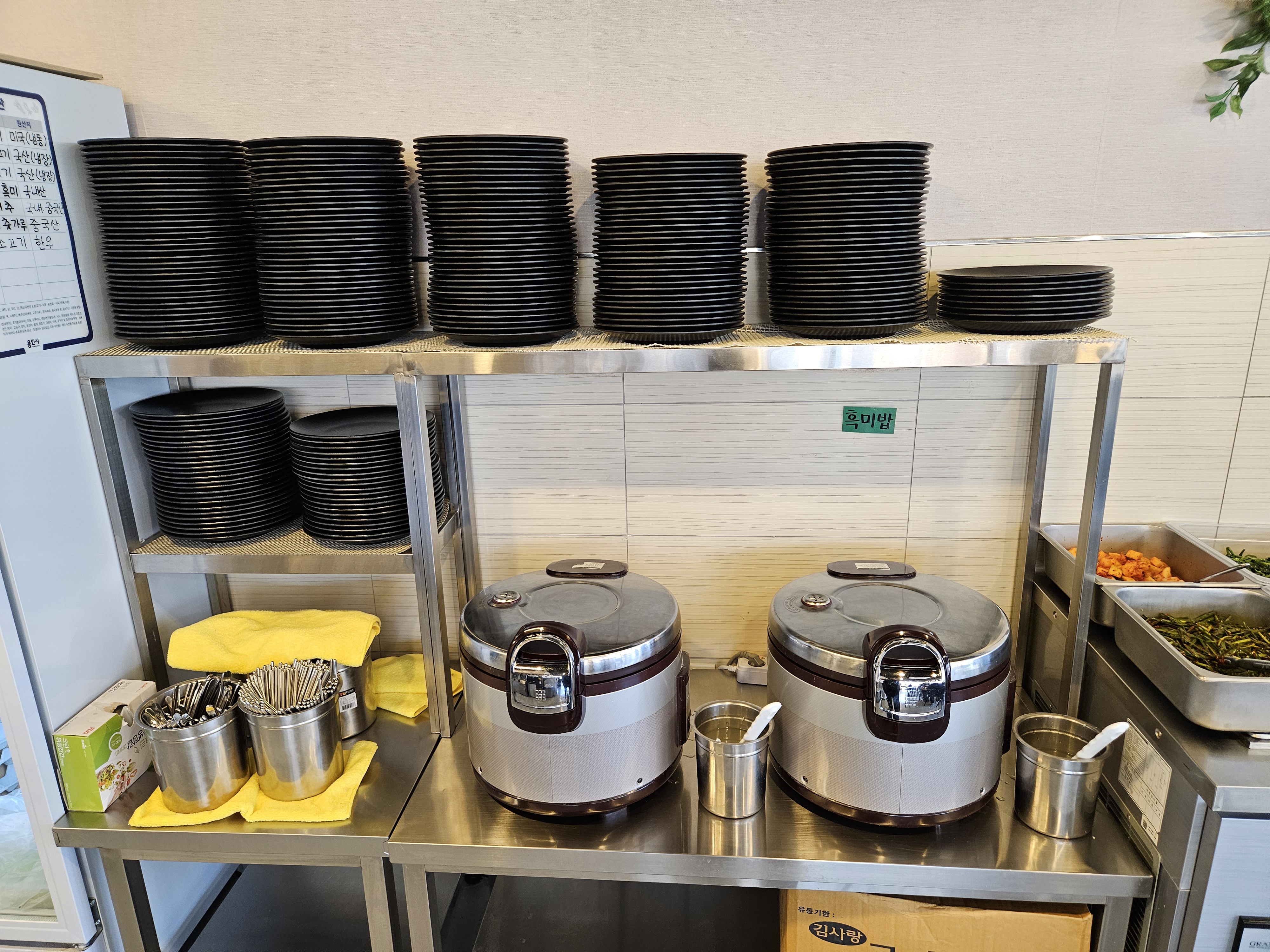 앞서 말씀드렸다시피 선결제를 하면 바로 옆에서 원형 접시를 들고 밥부터 퍼서 먹을 수가 있는데요 밥 종류도 쌀밥, 잡곡밥 2종류가 준비되어 있었습니다.