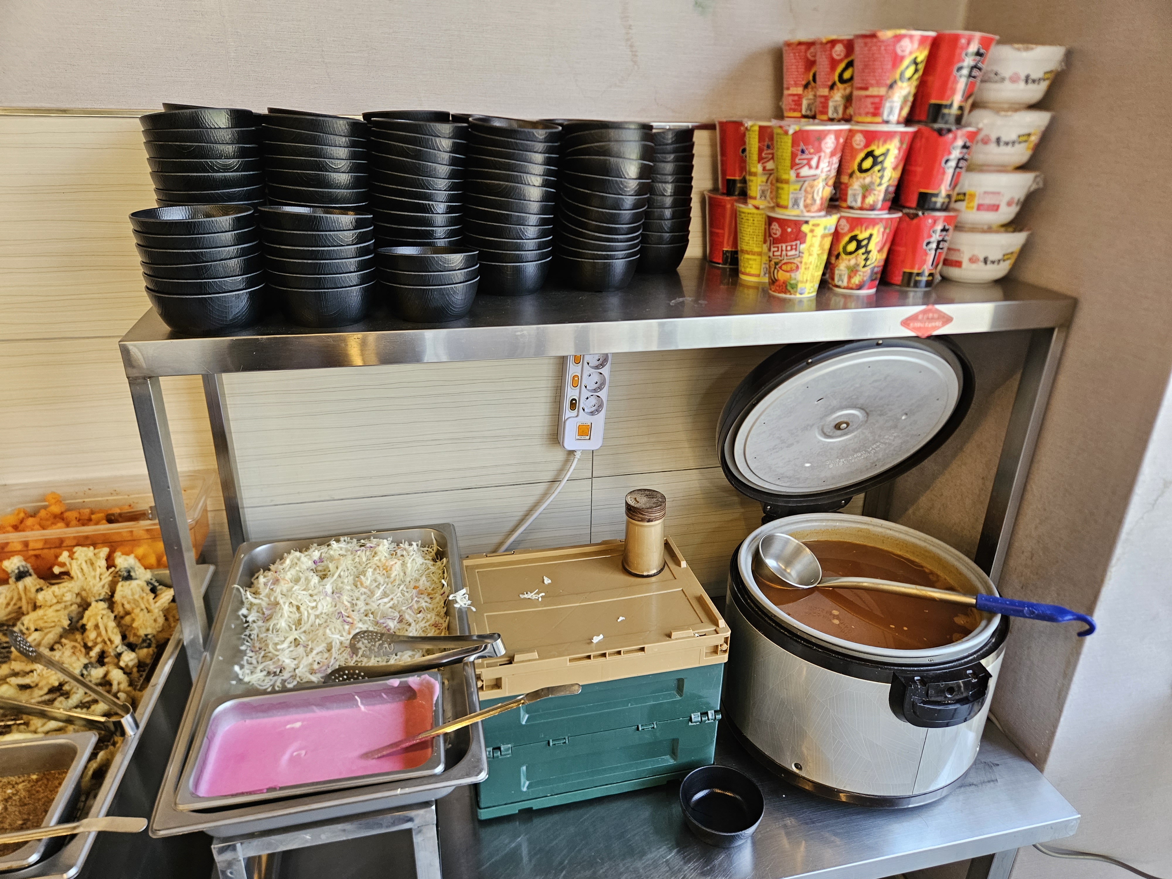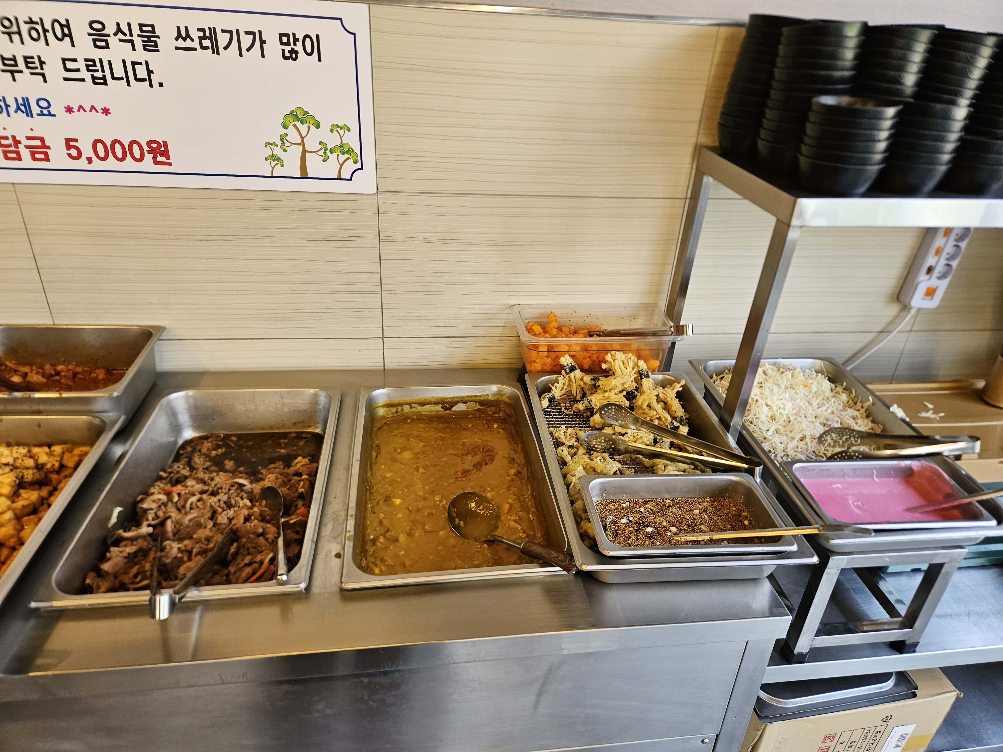 그리고 위에 있는 라면은 1,000원에 판매하는 거니깐 참고하시면 좋을 것 같고 음식을 남기면 환경부담금 5,000원 나온다고 하니 가능한 먹을 만큼만 퍼서 먹는 걸 추천드립니다.