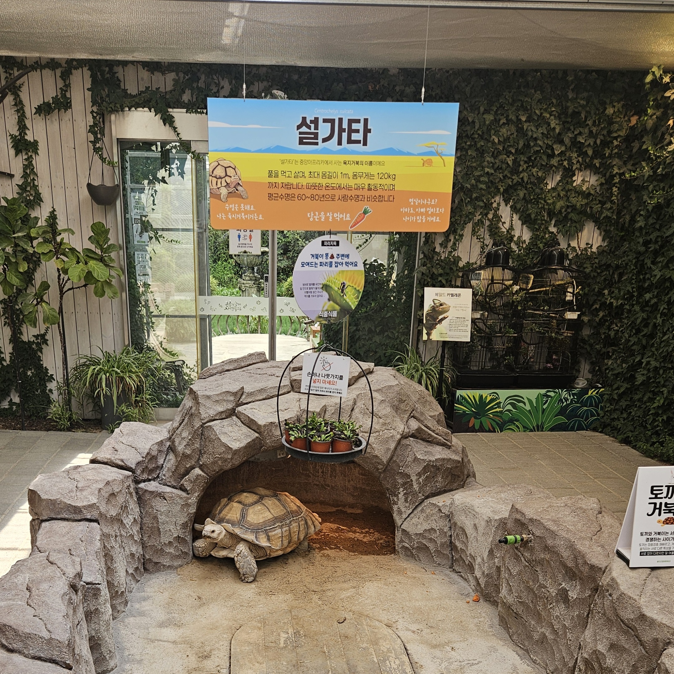 안에는 설가타라는 육지거북이한테 당근을 주는 체험도 있었고 장난감 및 파충류, 거미를 구경할 수 있는 곳이었습니다.