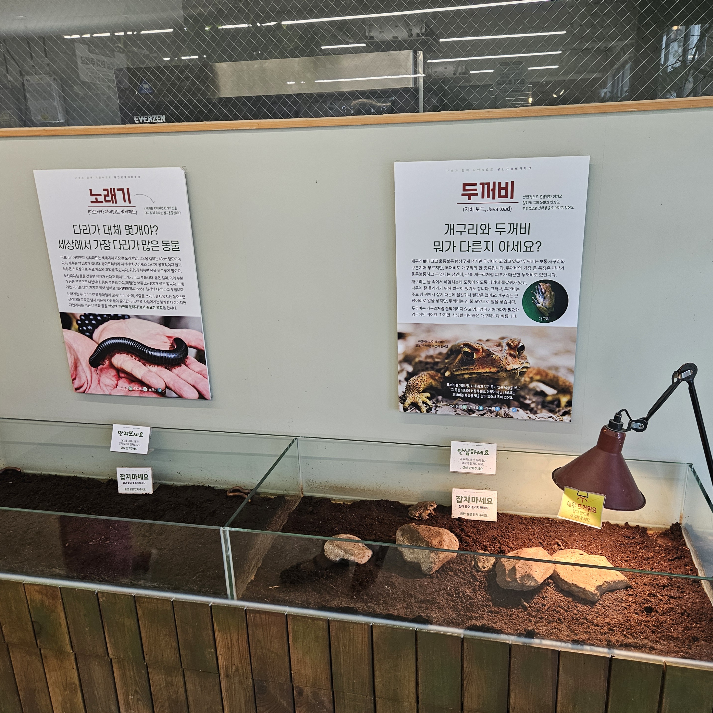 두꺼비, 노래기, 달팽이 등등 그리고 그 외 파충류들도 만져볼 수 있고 체험도 할 수 있는 곳이었는데요. 생각보다 많은 용기가 필요한 체험장이었습니다.