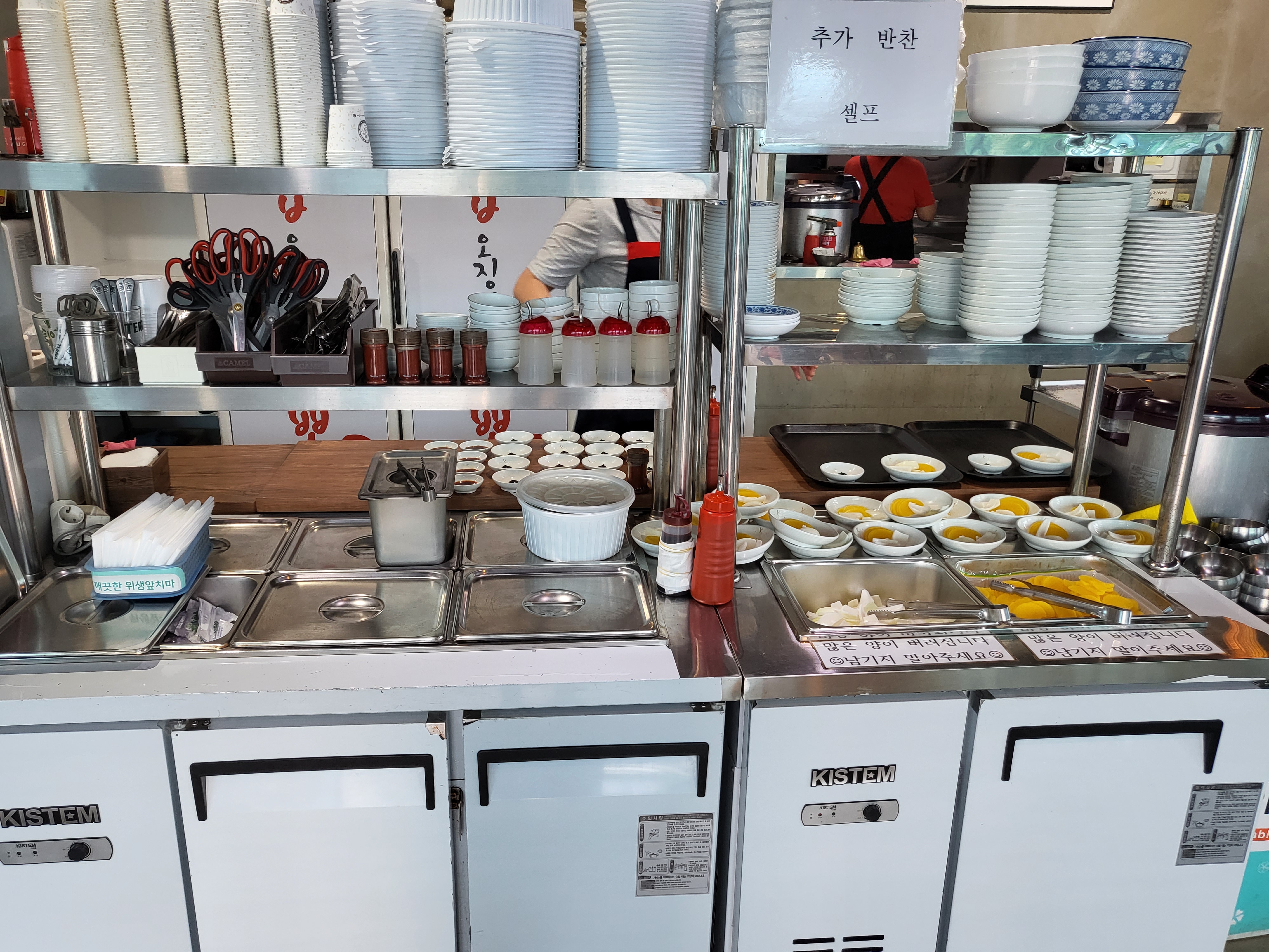 기본 반찬이 나오고 추가로 반찬이 필요하다면 셀프로 담아 올 수 있습니다. 물론 먹을 만큼만 담아와야겠죠??