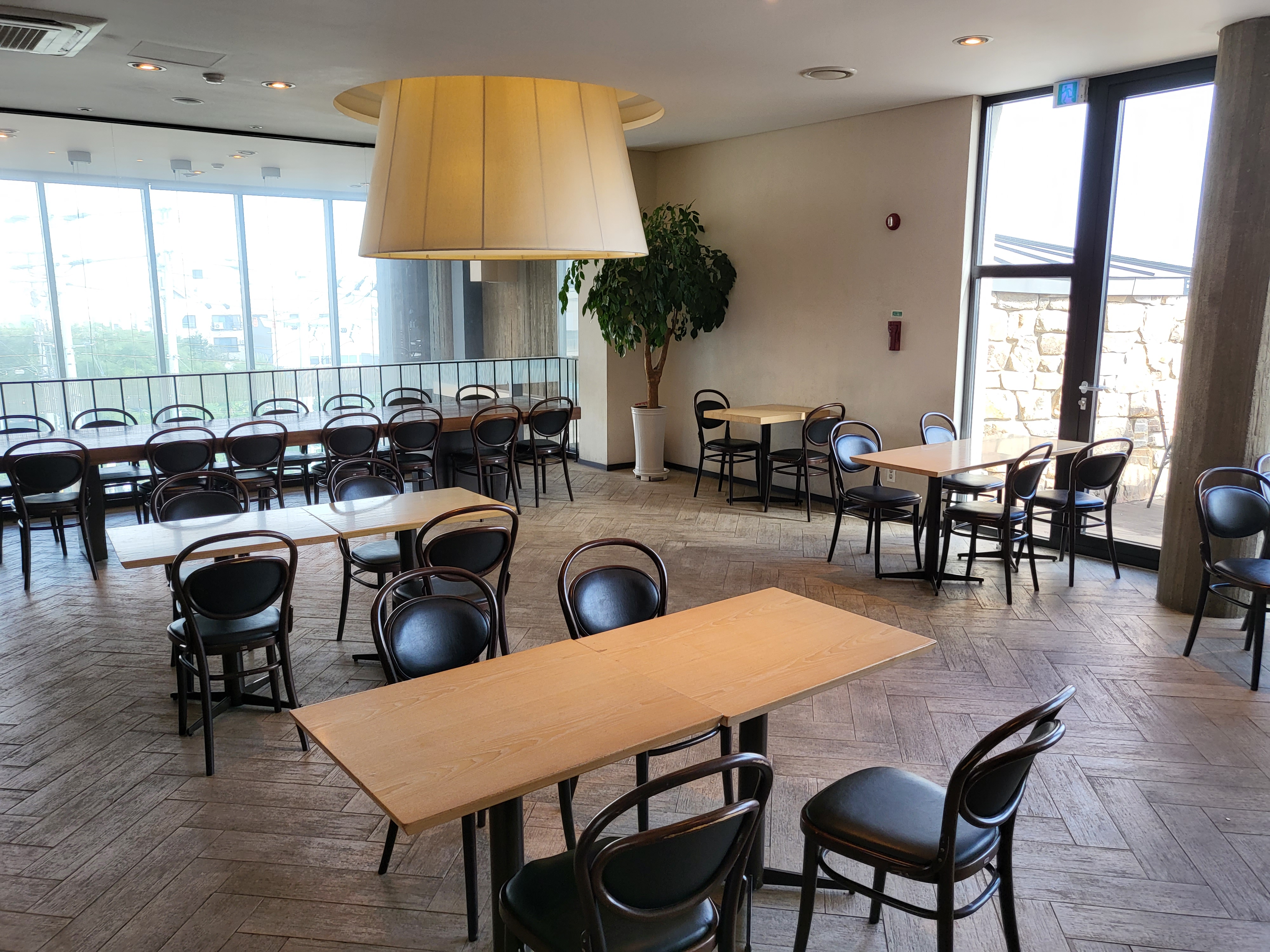 2층에 있는 카페 분위기는 나쁘지 않았습니다. 테이블도 많이 세팅되어 있어 빵을 구매 후 저희처럼 먹고 가고 싶어 하는 사람들한테는 인기가 많을 거 같더라고요. 저희가 워낙 일찍 도착해서 그런지 손님은 없었지만 오후 10시 30분 정도가 되니 테이블이 하나둘씩 차는 모습을 보고 역시 빵지순례 맛집답구나 라는 생각을 했습니다.