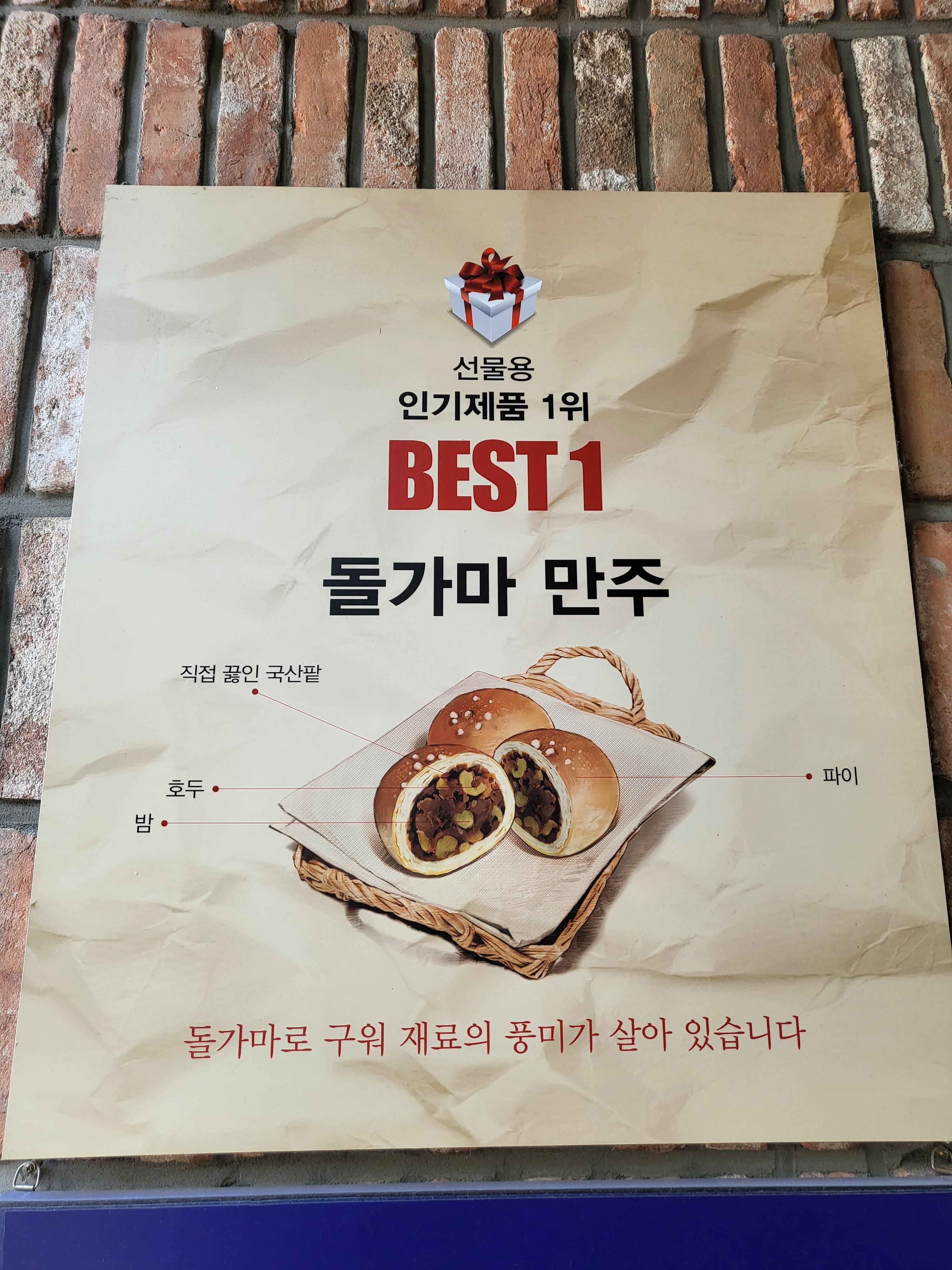 뚜쥬루 빵집에서 제일 유명한 돌가마 만주 속 안에는 직접 끓인 국산 팥, 호두, 밤이 들어가 있고 겉은 파이로 감싸져 있는데요. 돌가마를 이용해 만든다고 합니다. 뚜쥬루 빵집에서 선물용 인기 제품 1위 베스트 제품으로 제일 많이 판매되는 제품이라고 합니다.