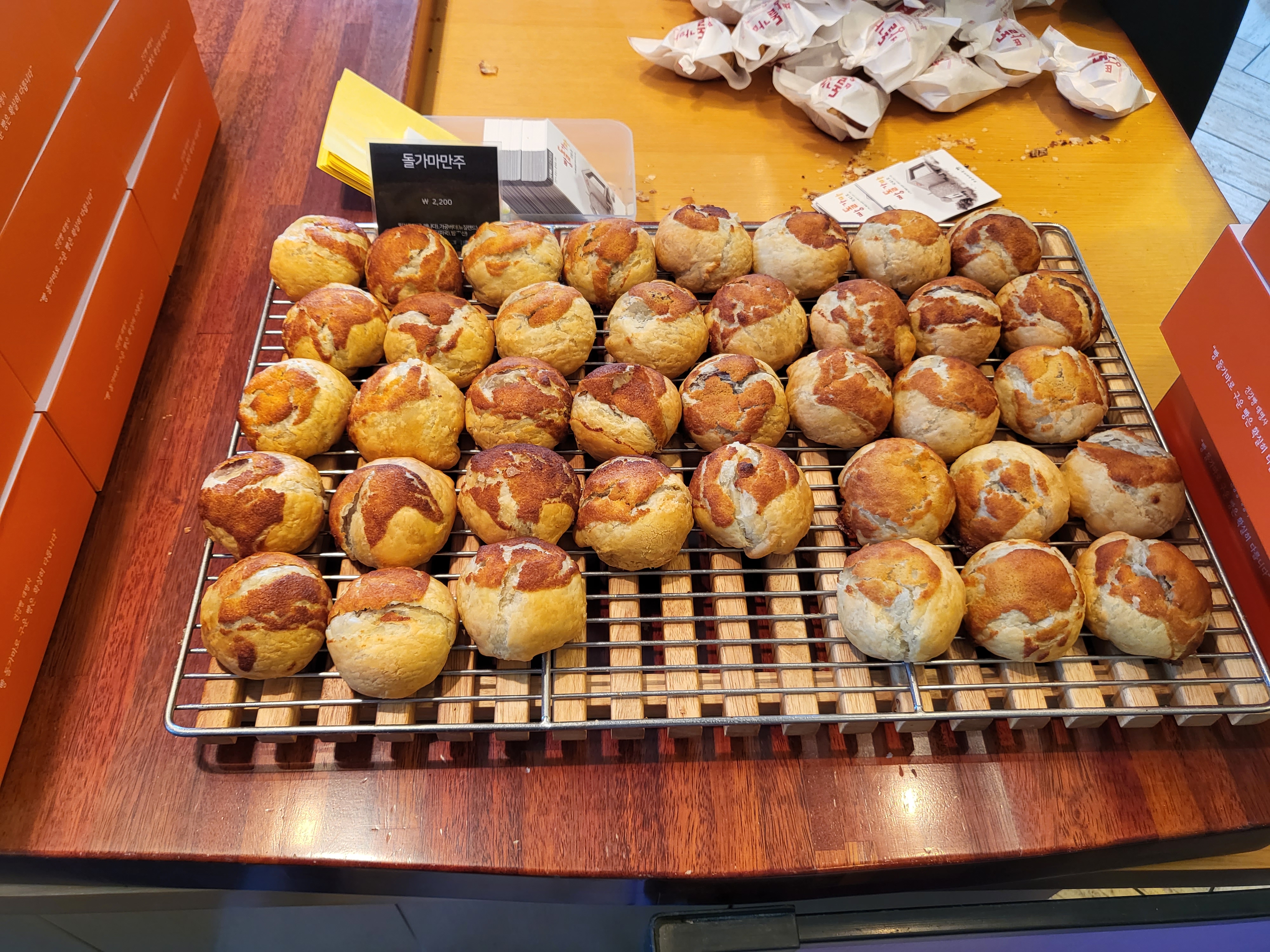 오전 9시쯤에 도착해서 그런지 빵 종류가 많이 진열되어 있지 않았지만 역시 빵 냄새를 맡고 있자니 배고파지더라고요. 그래서 아들이 먹고 싶은 빵 그리고 뚜쥬루하면 유명하다는 돌가마 만주와 거북이 빵 등을 구매해서 먹기로 했습니다.