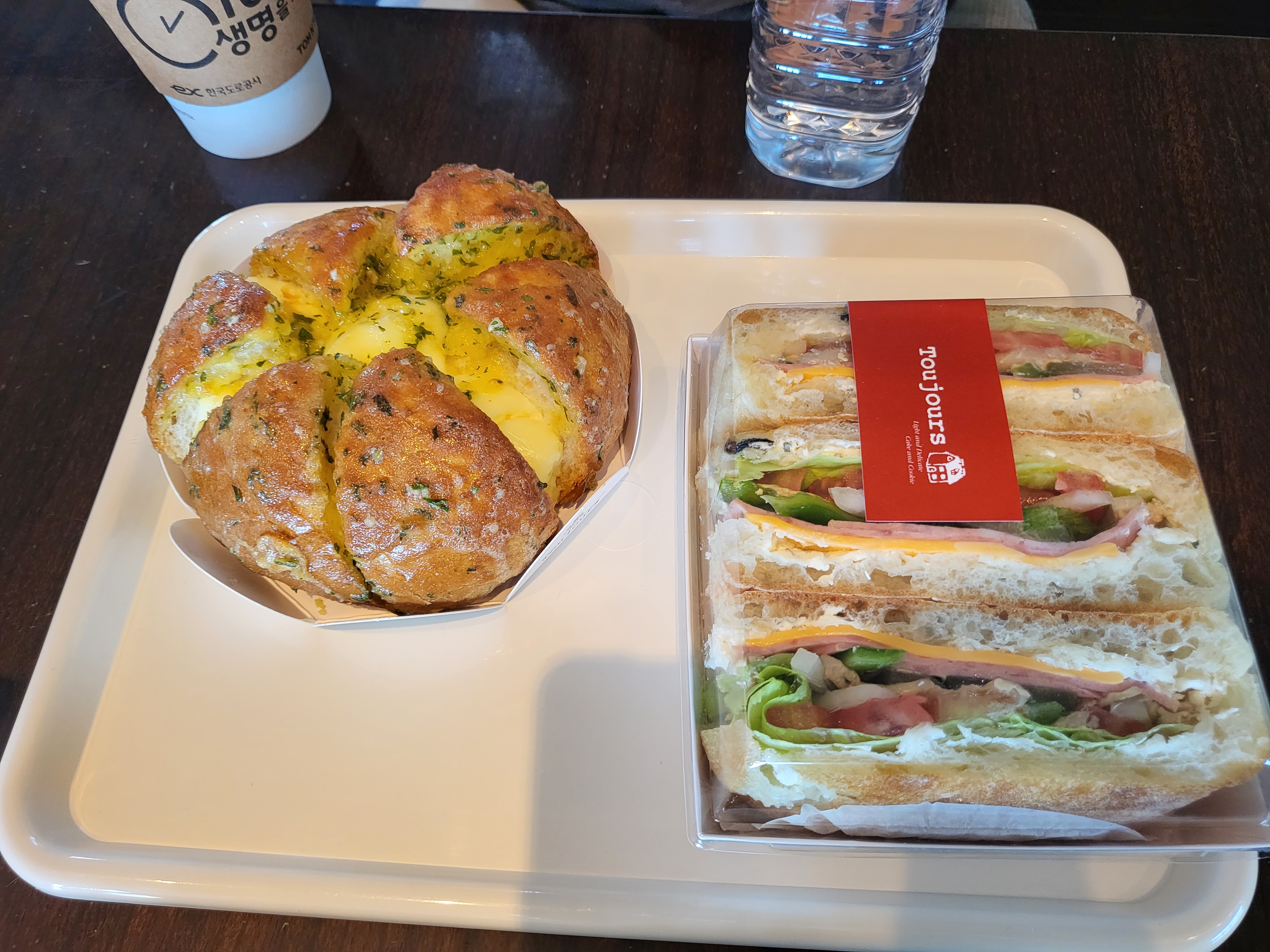 구매한 빵들이 전체적으로 다 맛있긴 했지만 마늘 크림치즈빵은 개인적으로 빵은 맛있는데 약간 느끼했습니다. 그리고 거북이 빵은 쫀득쫀득한 게 맛은 모카빵 같은 느낌이었는데요.