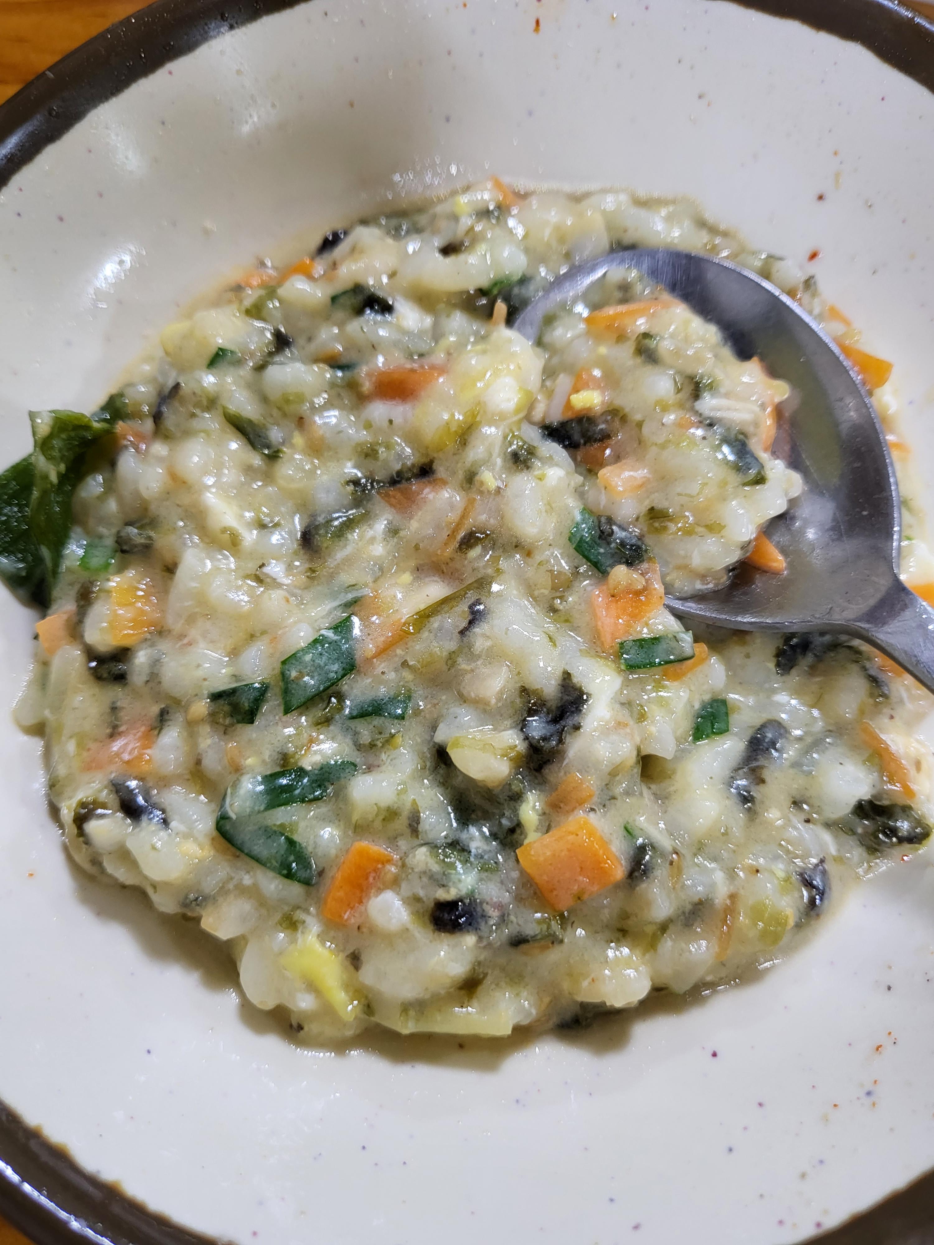 진짜 마지막 피날레로 닭죽까지 만들어 먹었는데 배불러 죽는 줄 알았습니다.