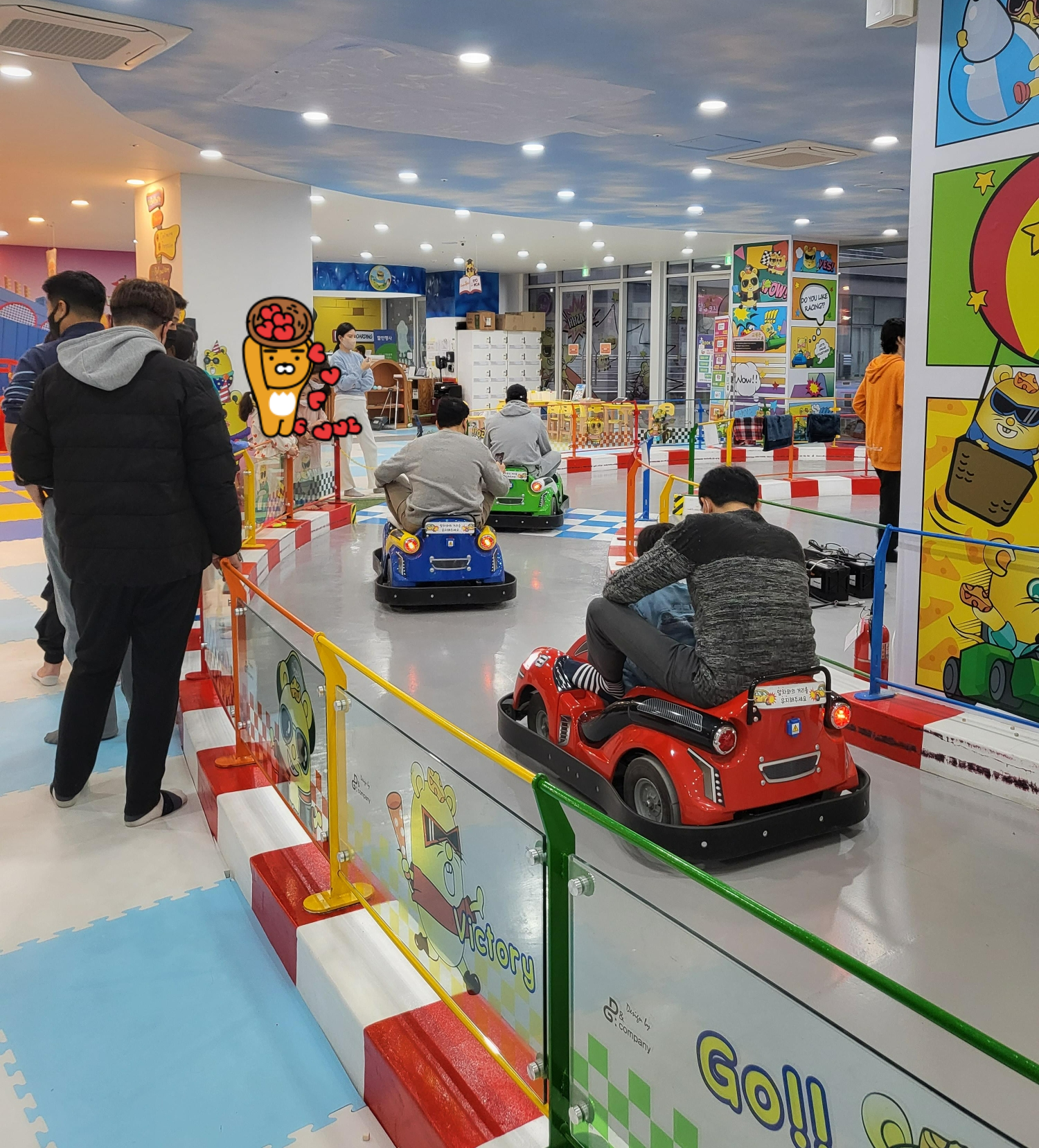 아들이랑 같이 타보고 싶었던 카트레이싱!! 카트레이싱 이용시간은 정각에 시작해서 30분만 운영하더라고요. 120cm 미만은 보호자랑 같이 타야 했는데요 핸들 조절을 자기가 하겠다고 하면서 얼마나 흔들어 대던지 뒷사람들한테 조금 미안했습니다.