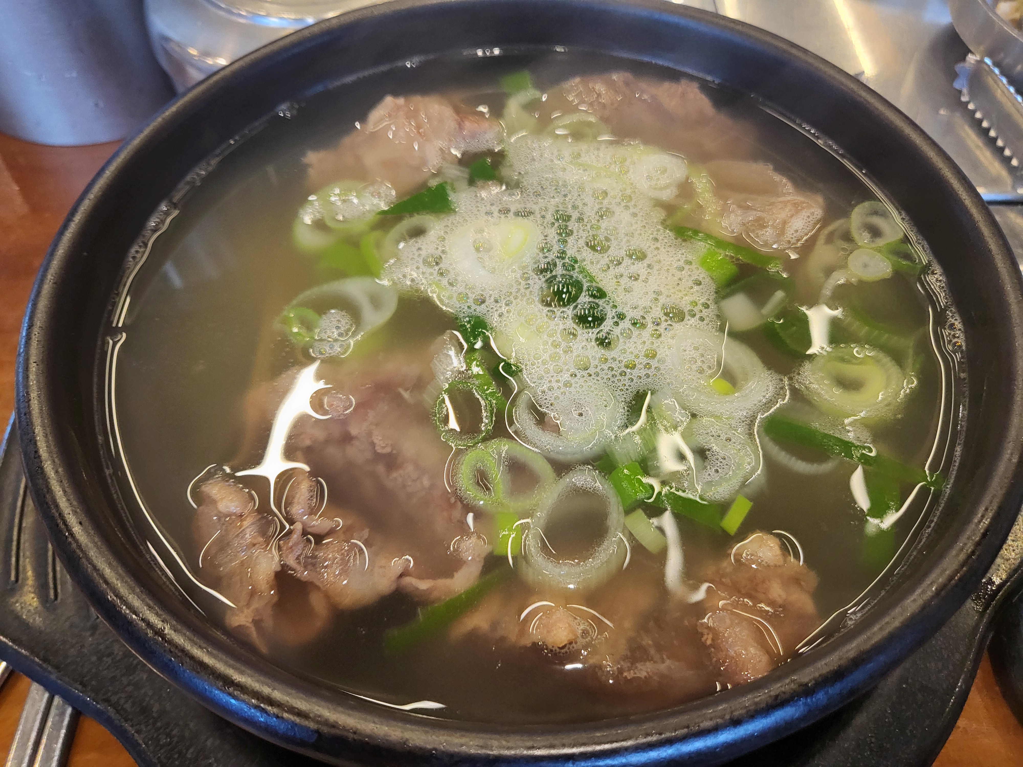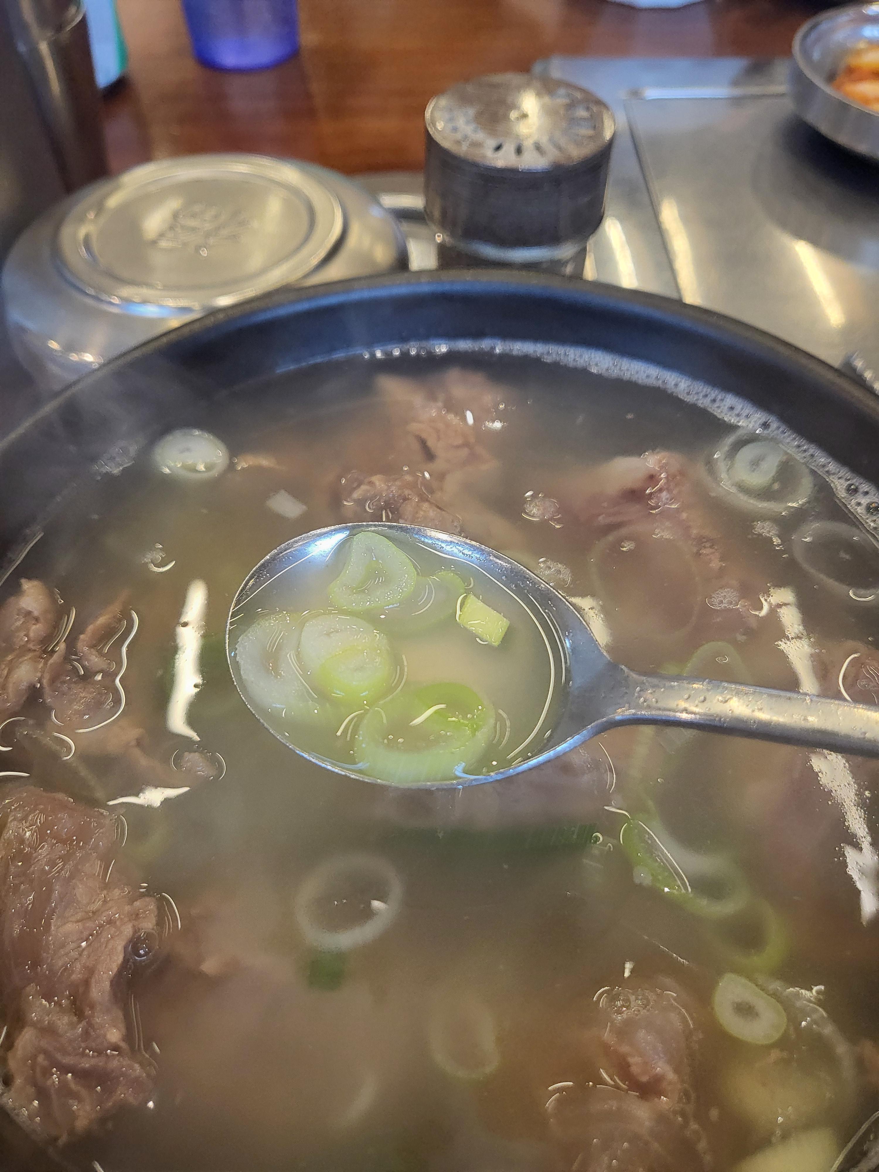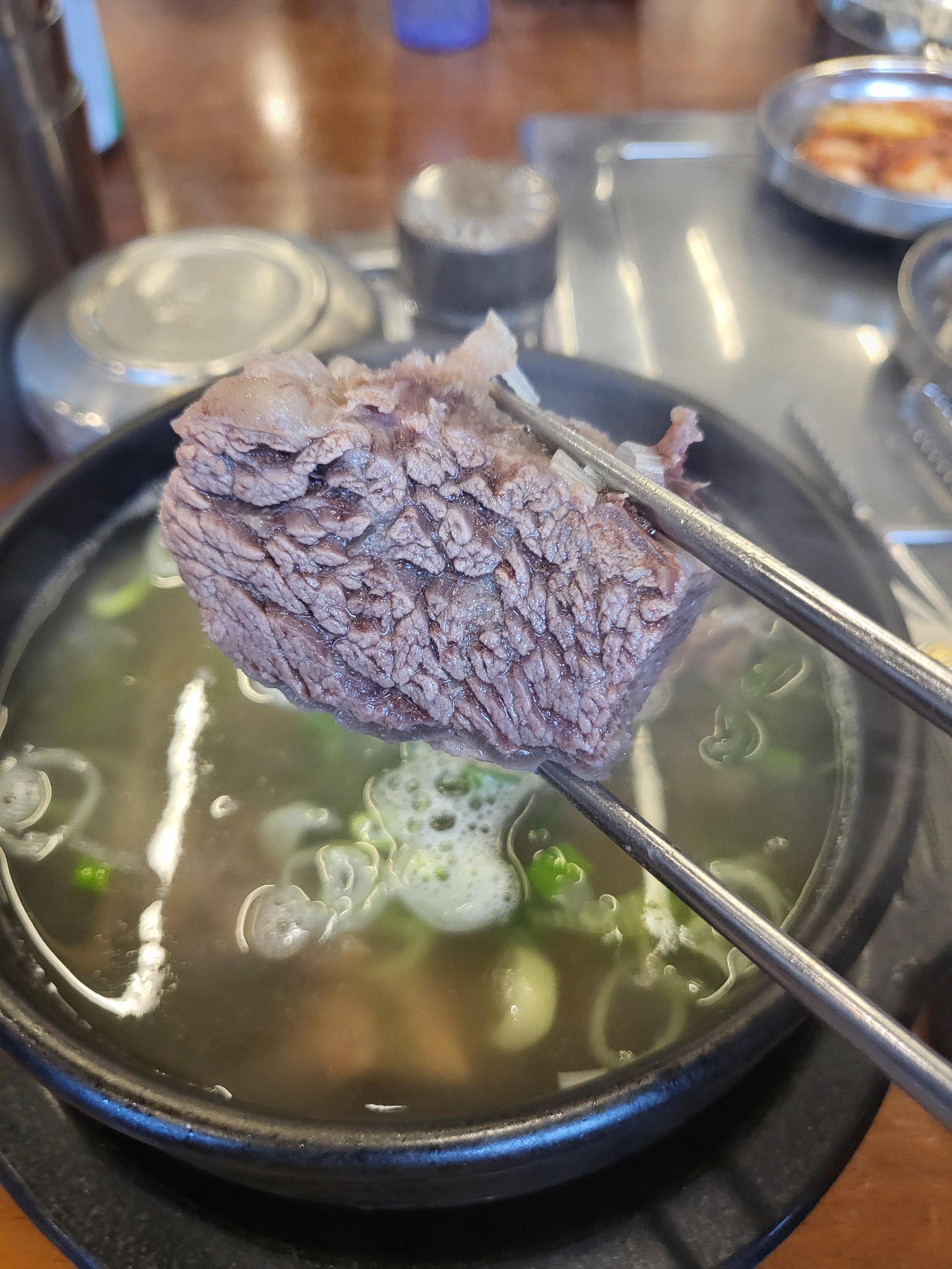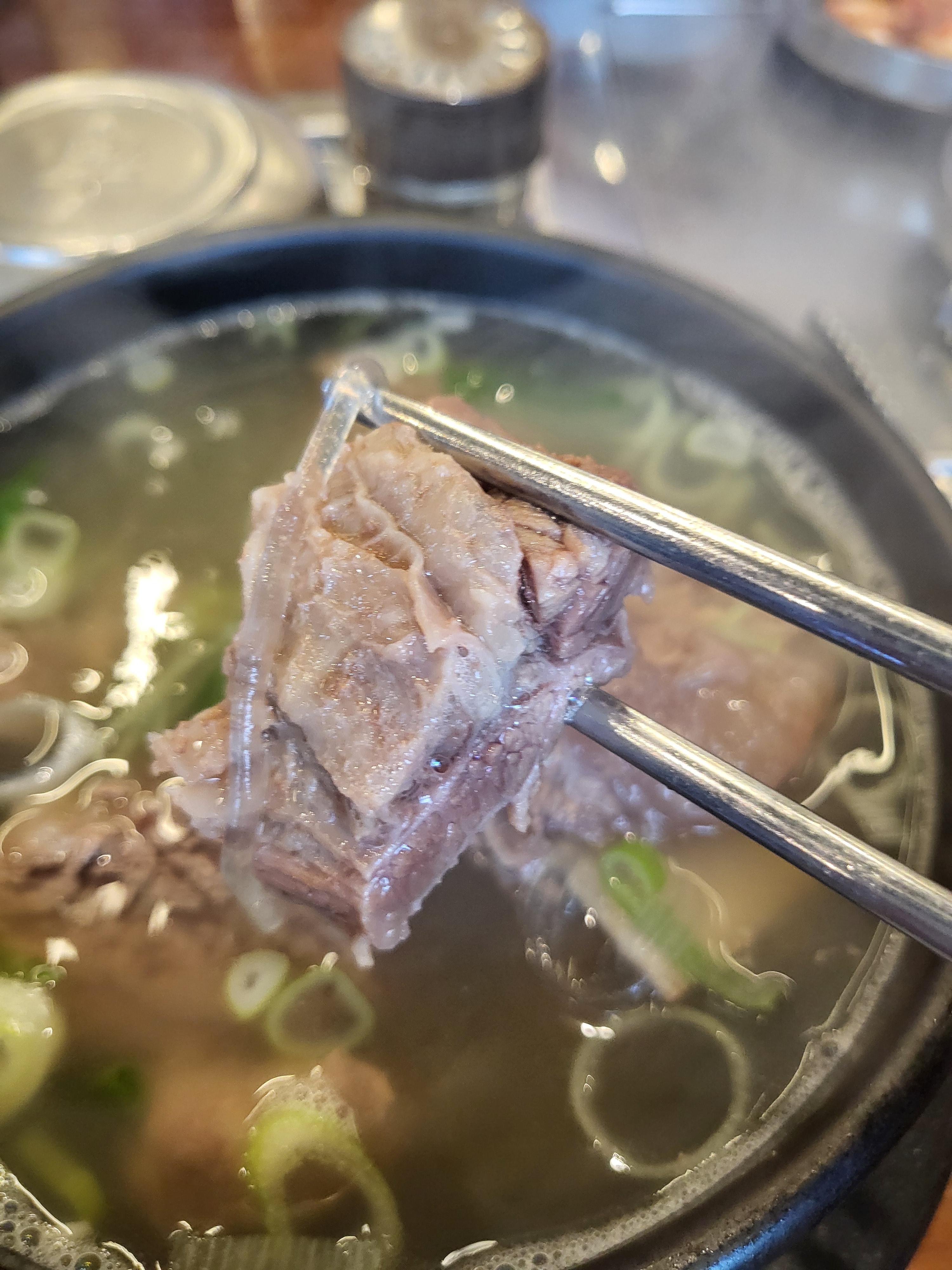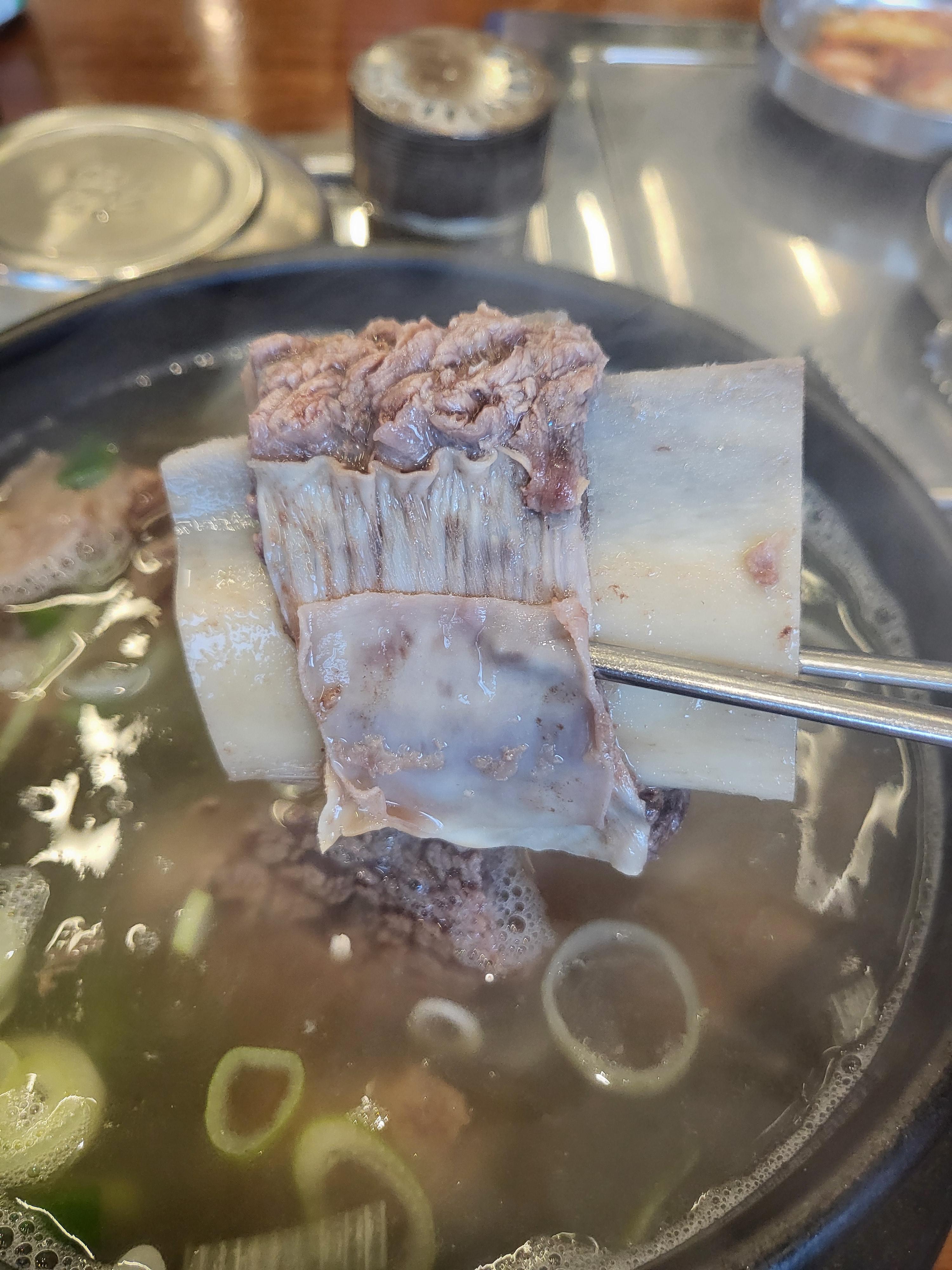 기대를 품고 국물이랑 밥이랑 먼저 먹어보았는데 맑은 고기 국물이 시원했고 고기도 먹을만하더라고요. 뼈에 붙어있는 힘줄 부분은 조금 질기긴 했지만 그래도 전체적으로 맛은 있었습니다.