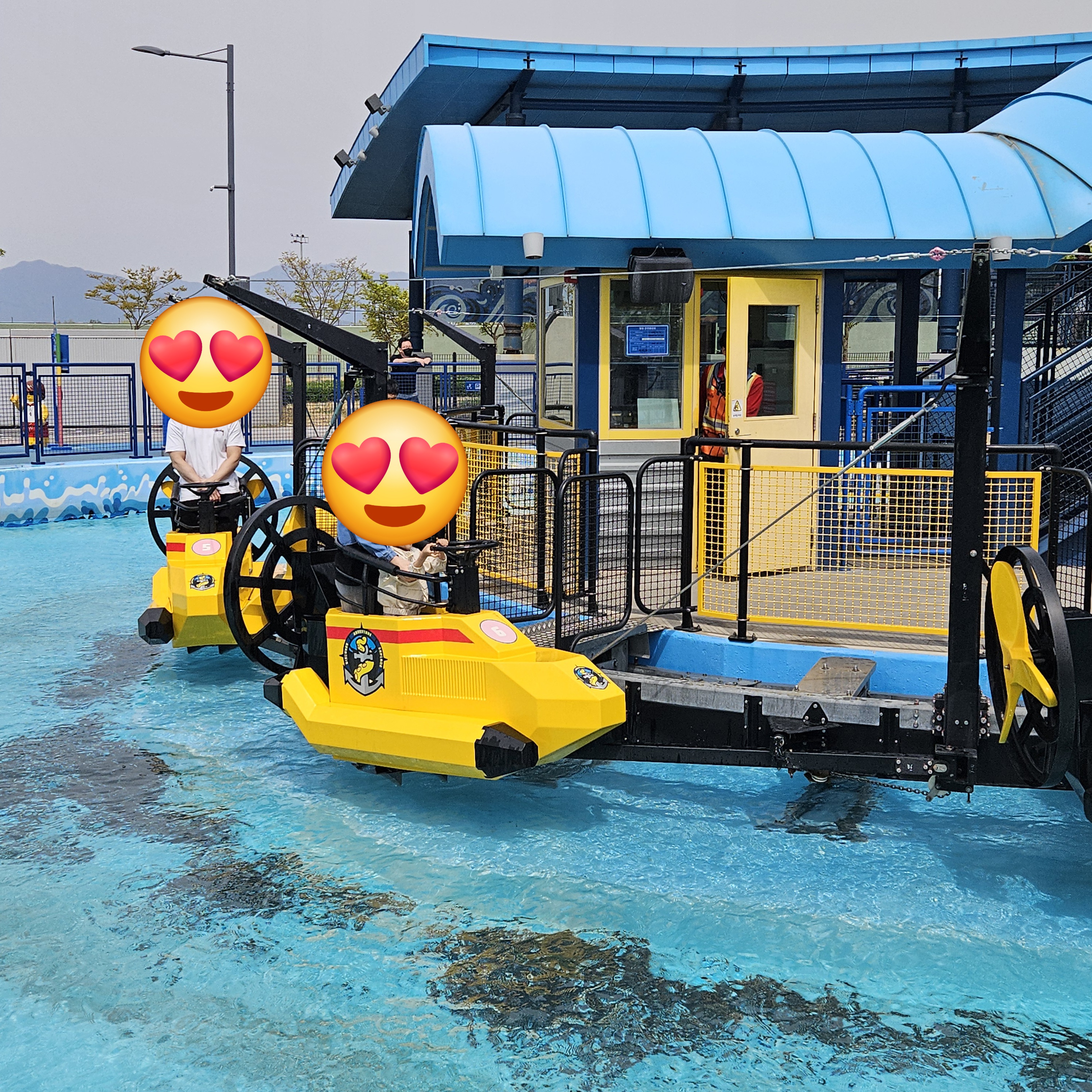 그리고 조금만 걸어가면 또 다른 배 타는 놀이기구가 있는데 이건 줄도 짧았고 아들이랑 와이프가 재미있게 타고 왔답니다.