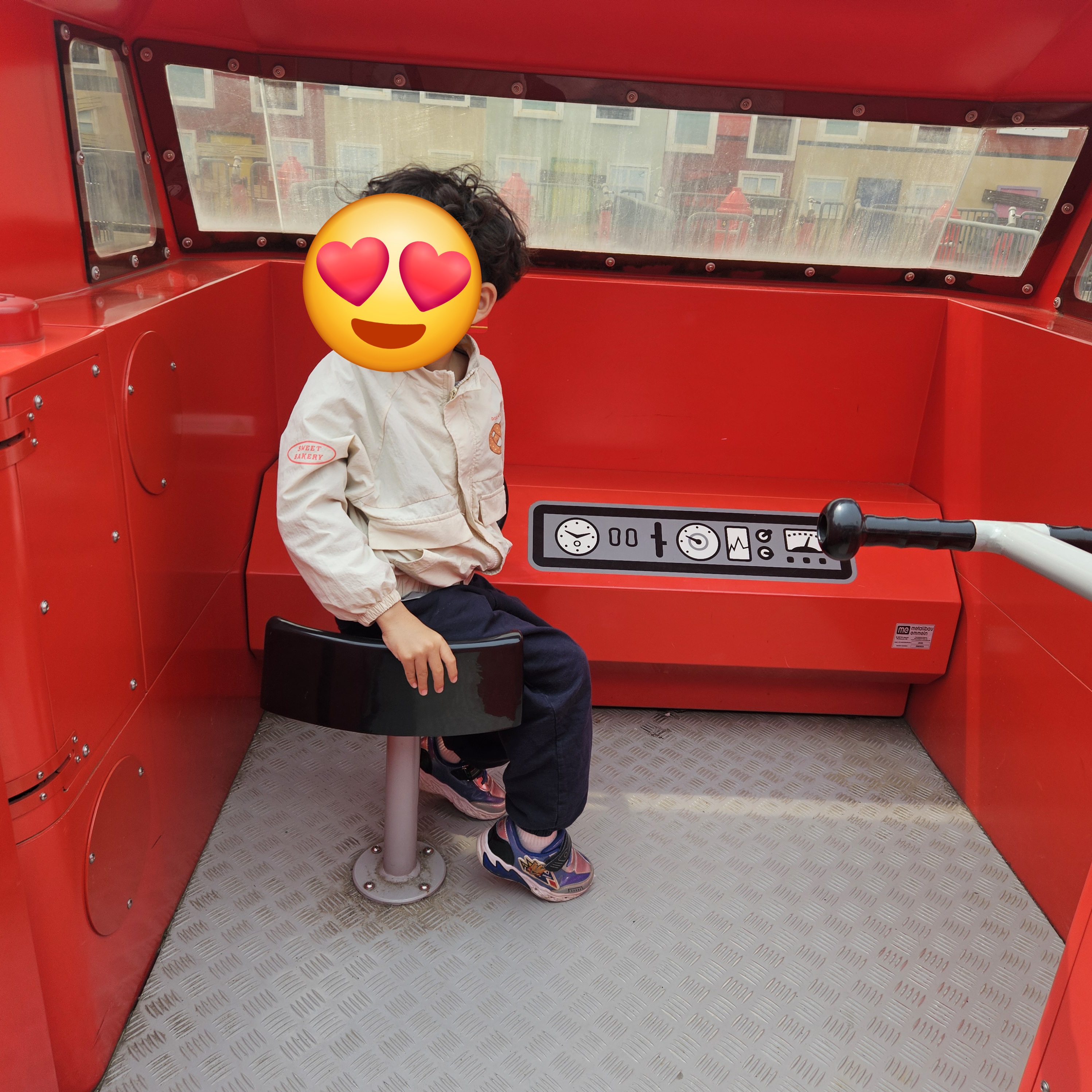 그렇게 길을 따라 쭉 걸어가 보니 아들이 어릴 때 좋아했던 소방차 놀이기구가 있었는데요. 아들이 보더니 자기도 타고 싶다고 해 같이 타보았는데요. 생각보다 너무 힘들더라고요.