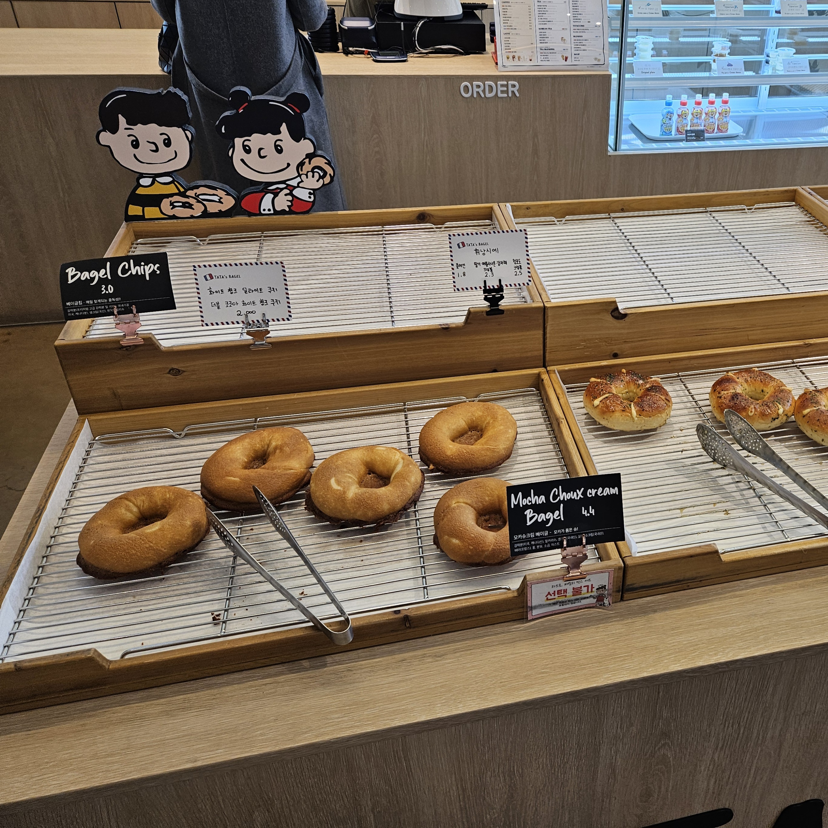 먹고 싶은 베이글을 골라 카운터에서 계산만 하면 되는 시스템이었는데요.