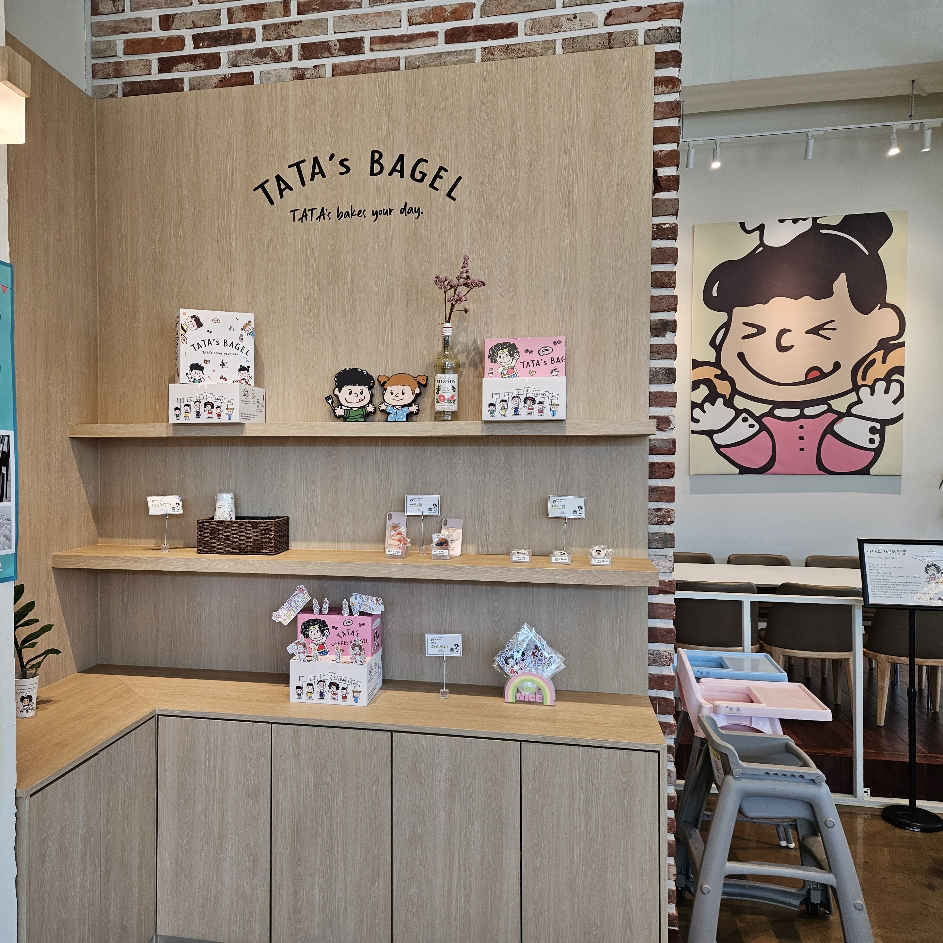 그렇게 계단을 올라 도착한 타타스베이글. 내부도 아기자기하게 꾸며져 있었습니다. 스누피와 비슷한 캐릭터가 무척 귀엽더라고요.