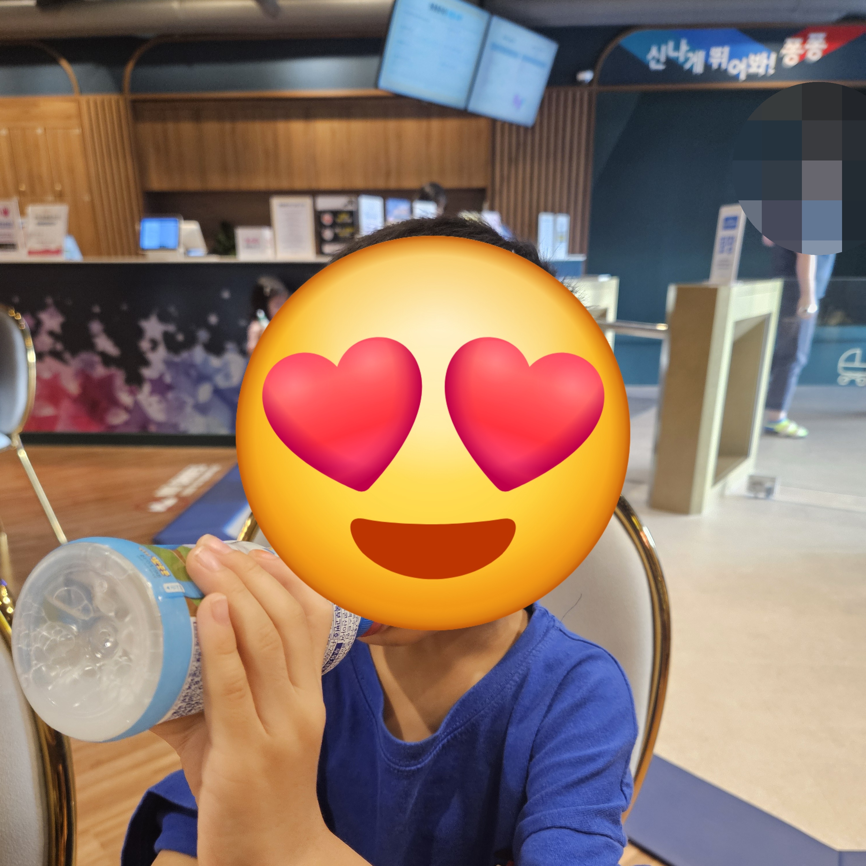 그렇게 두 시간 동안 쉬지 않고 신나게 뛰면서 놀아 목이 말랐는지 중간에 음료 먹고 싶다고 해서 하나 사주었고 이날 밤에 아들이랑 저는 눈 감자마자 푹 잠들었답니다.