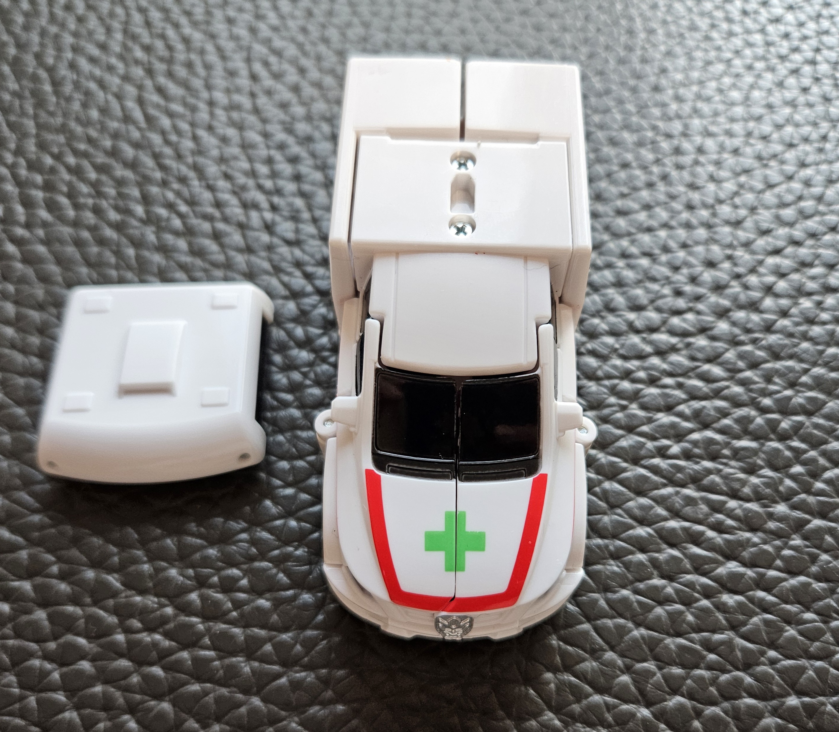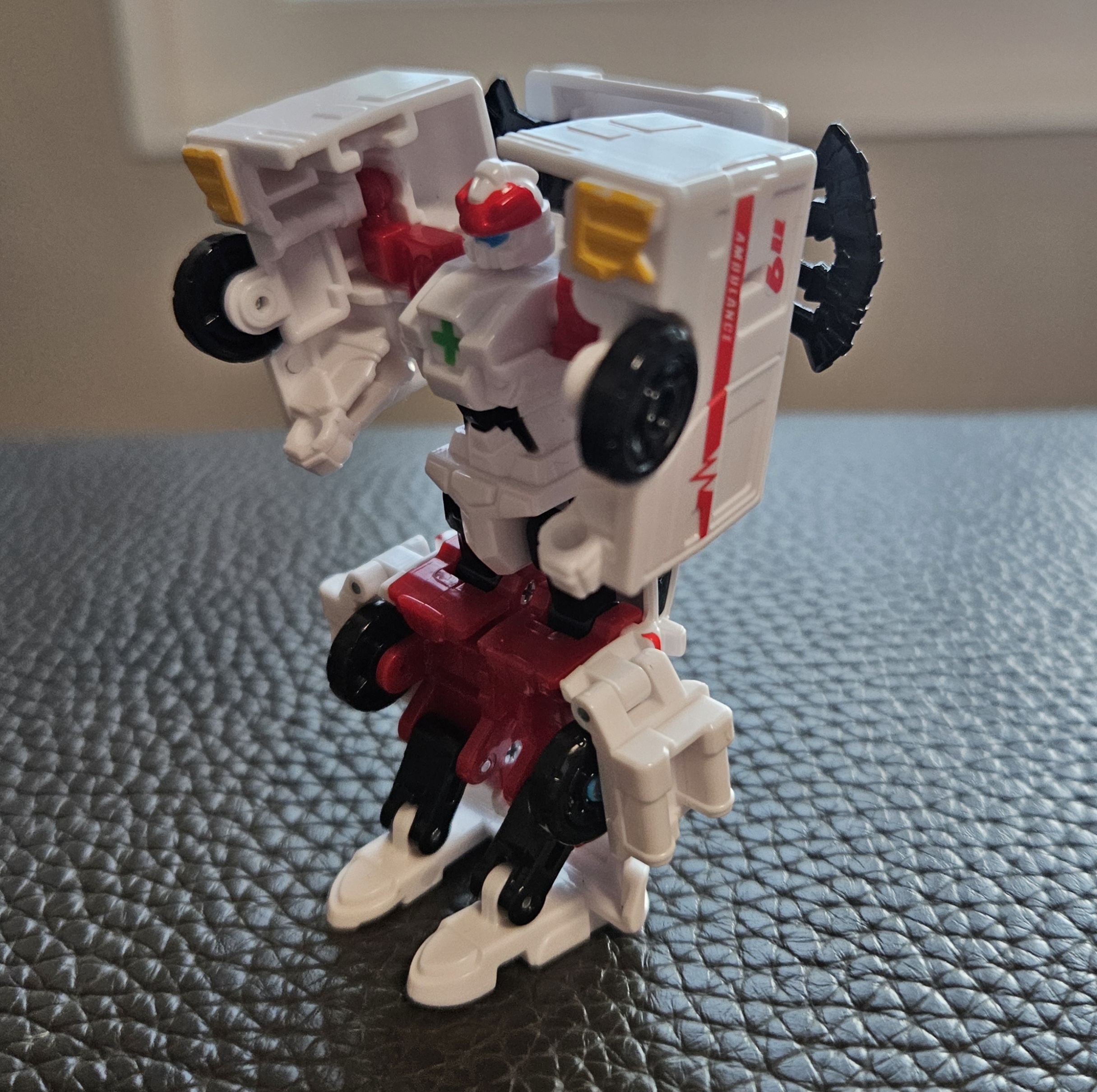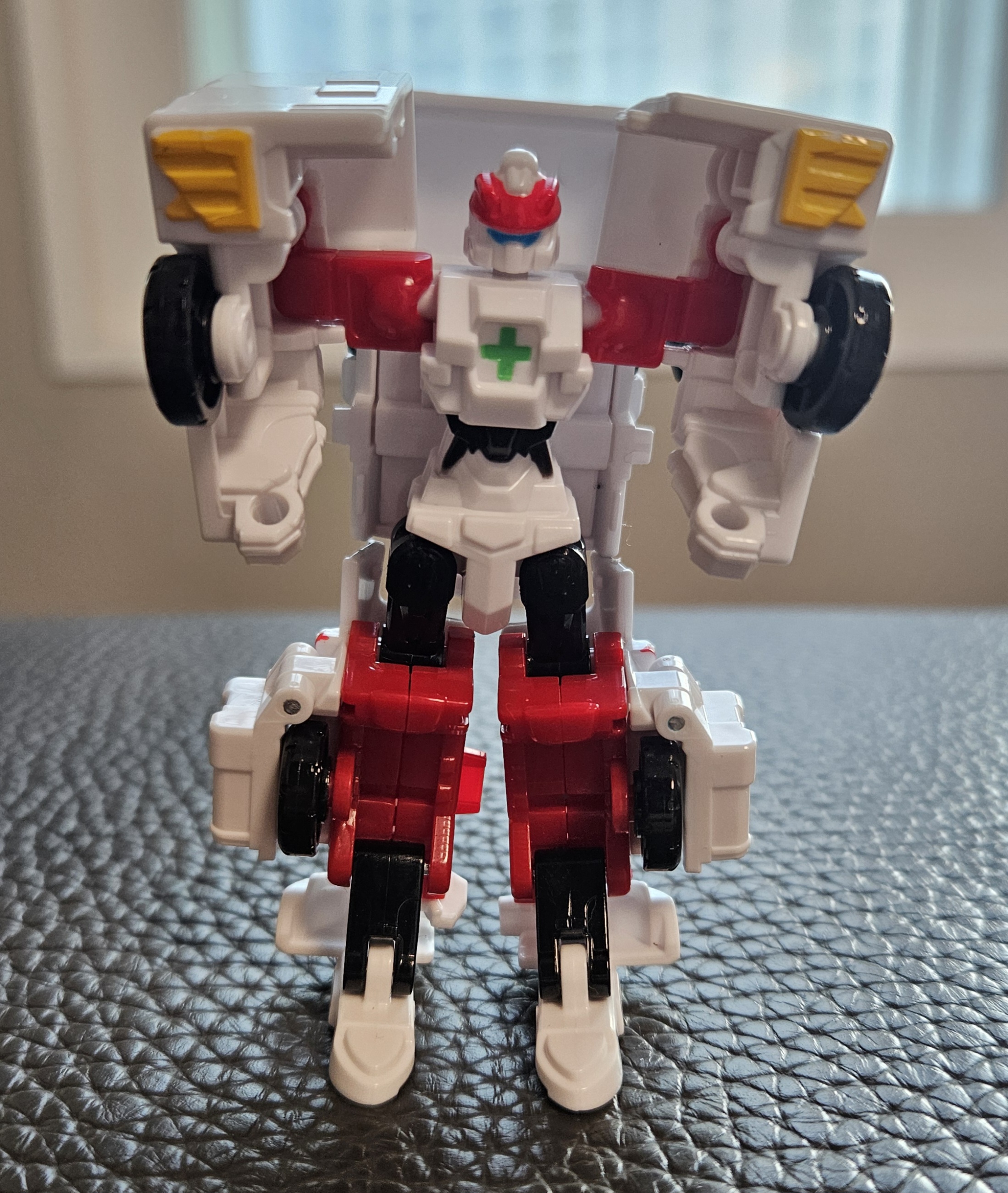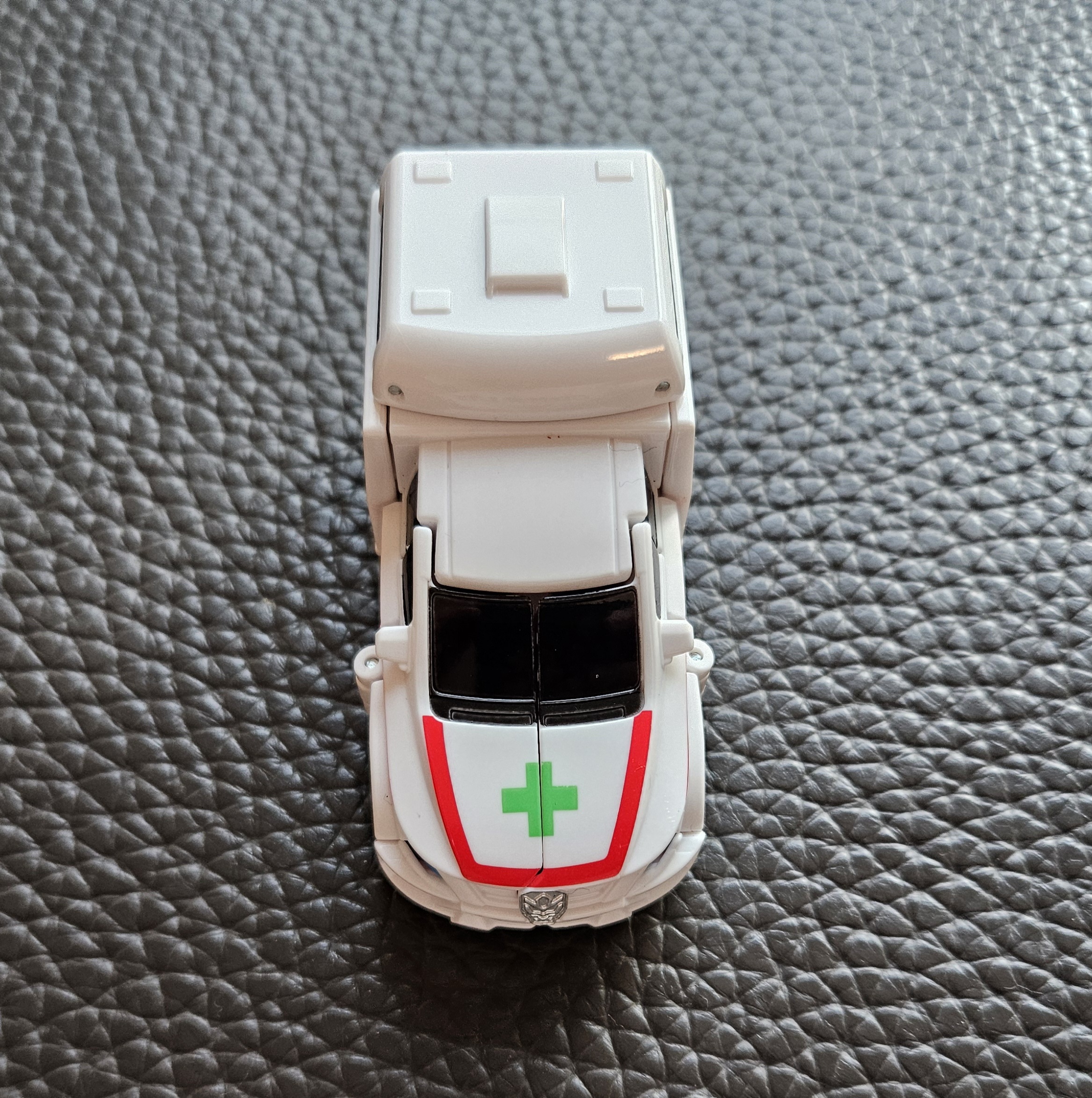 마지막으로 자동차 모드에서 뽑았던 걸 등에 꽂아주기만 하면 댄디 앰뷸런스 로봇모드로 완성!!