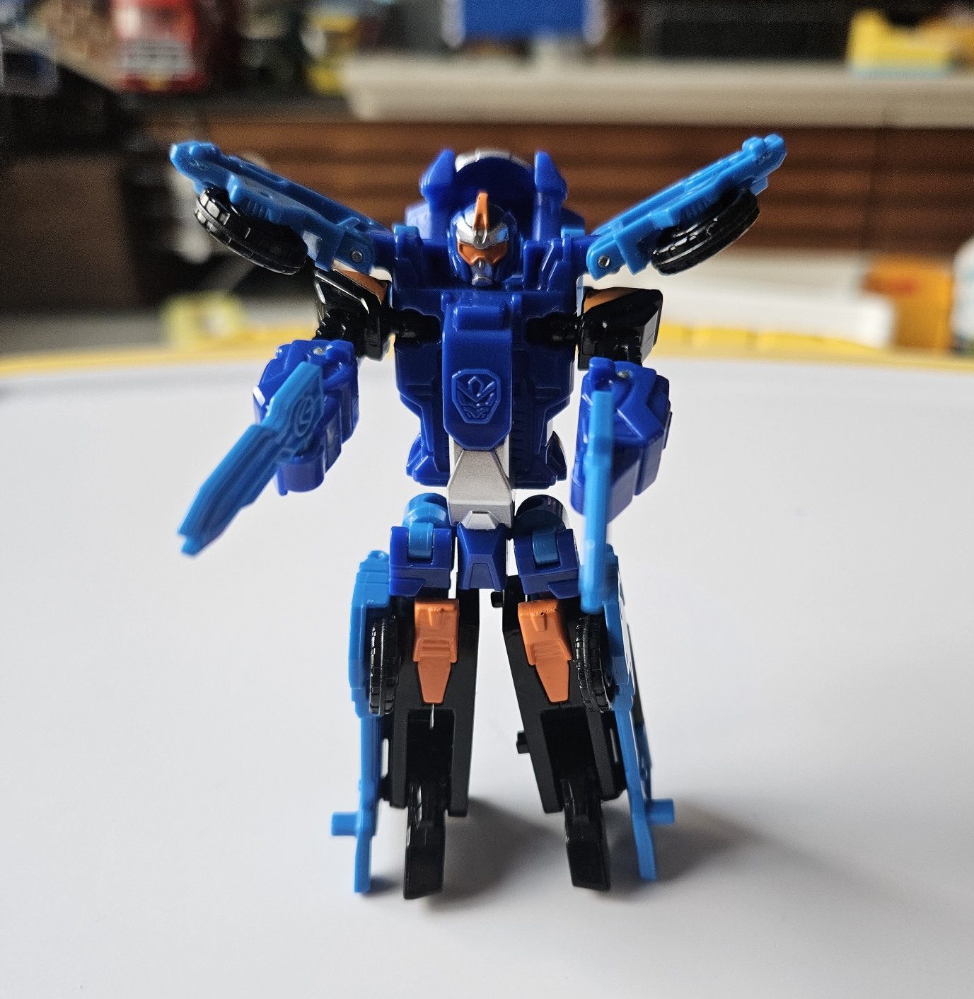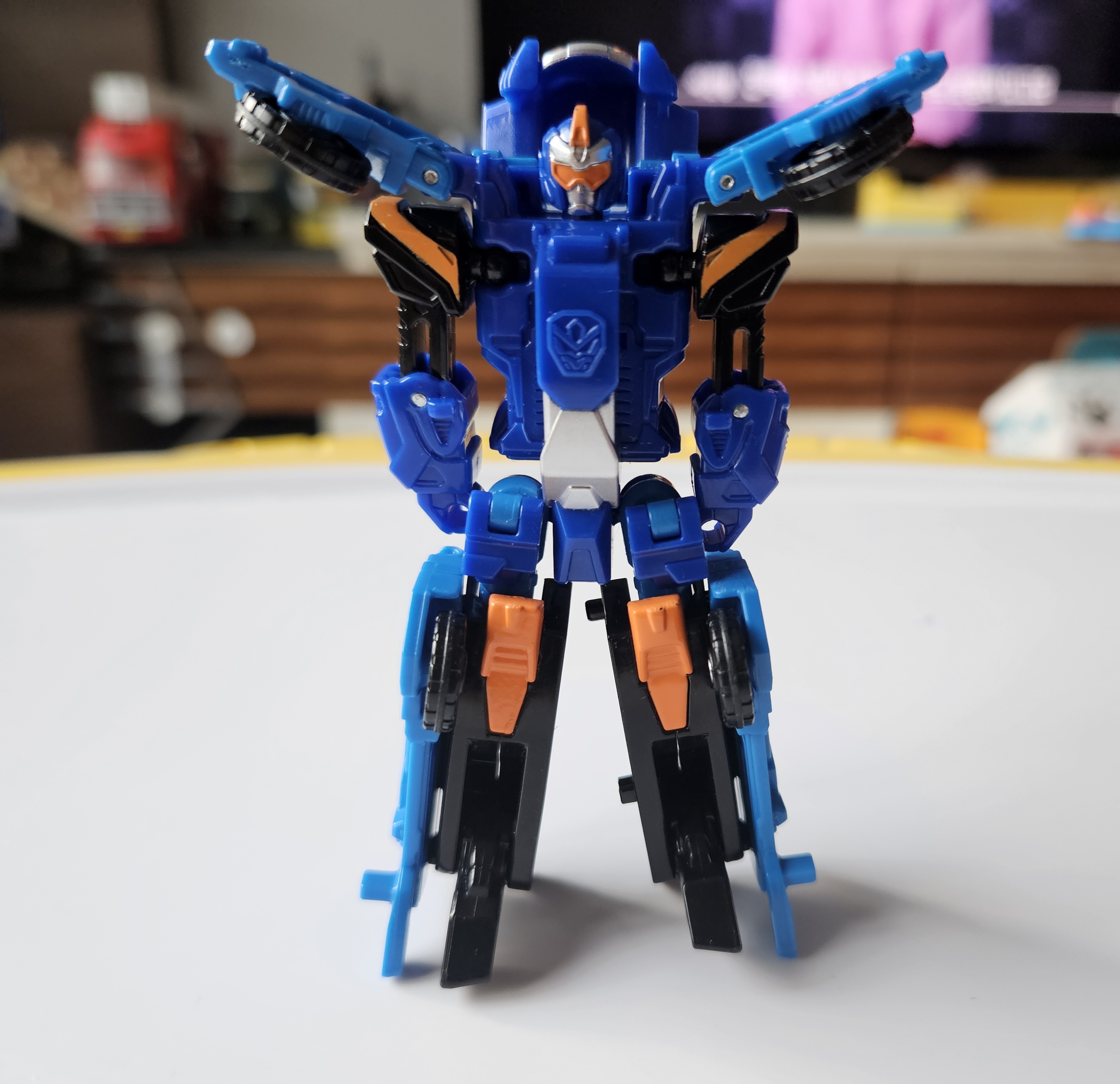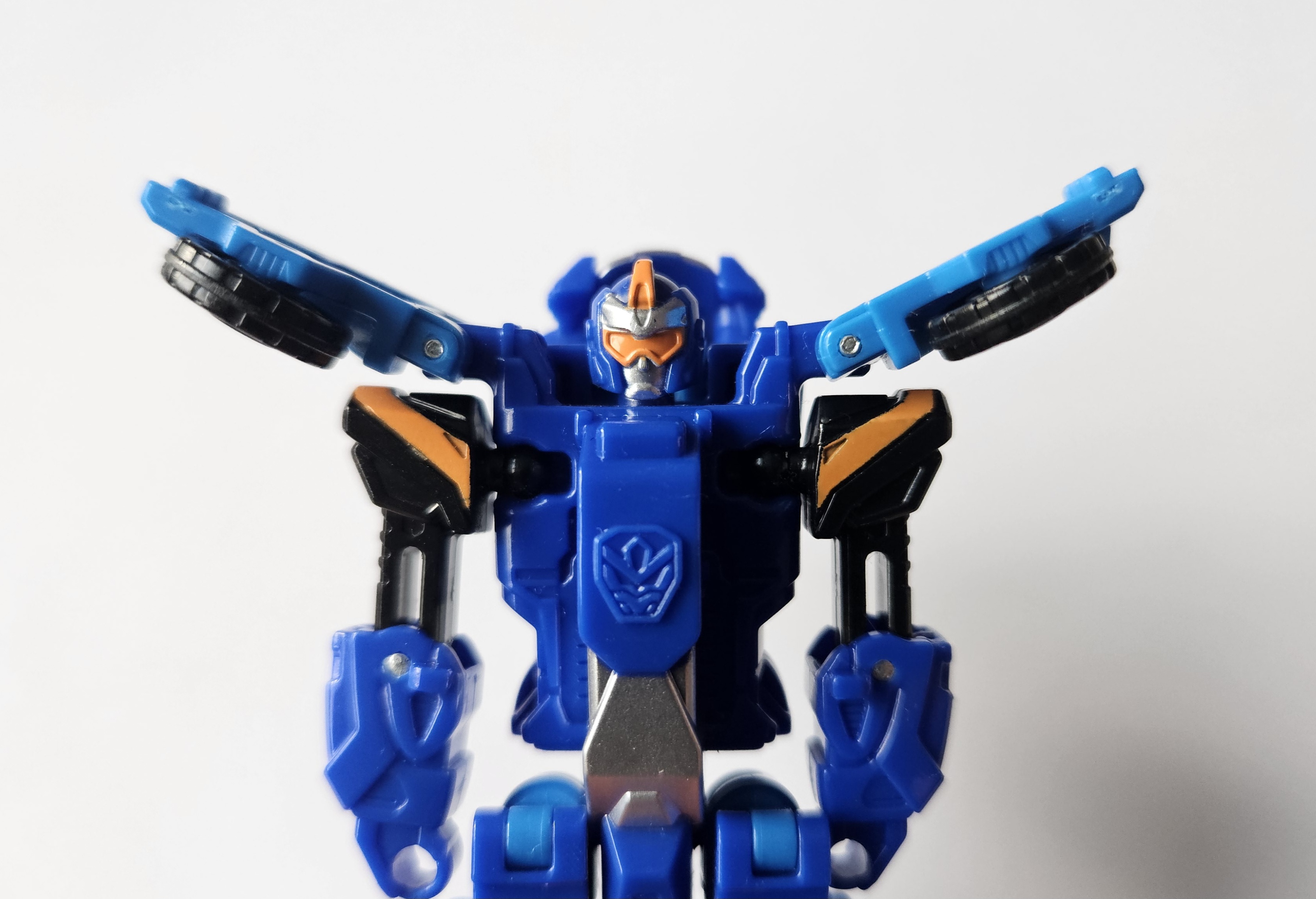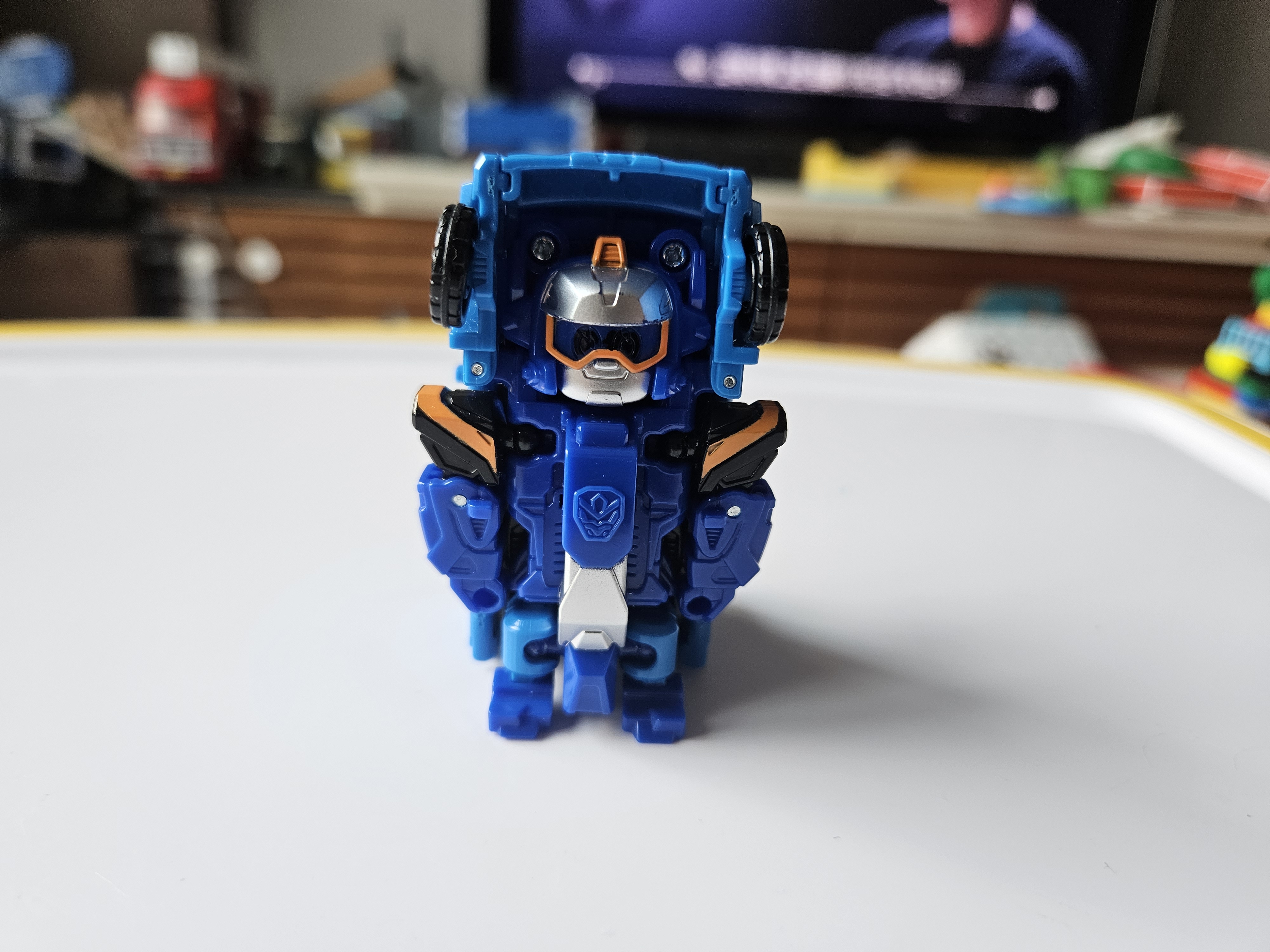 ▼몸짓이 작은 듯하지만 등치가 있어 귀여운 1단계 변신 티로. 최종 2단계 변신 마이티로 모습은 엄청 날쌔게 생겼는데요. 양쪽 앞바퀴를 펼쳐주고 양손은 아래로 펴준 다음 티로 머리 부분을 뒤로 제껴주면 몸통이 완성되고