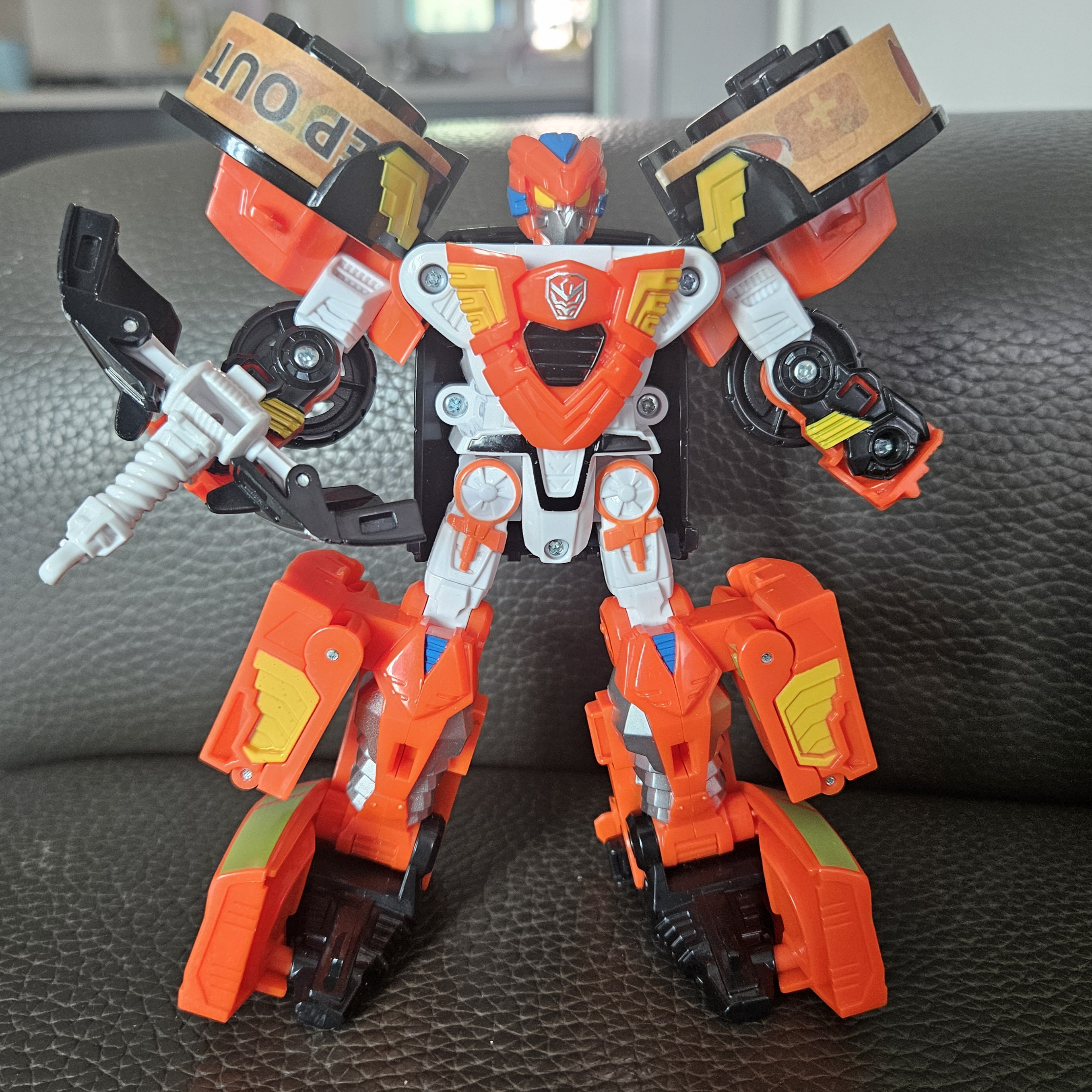 그리고 나이트X랑 동일하게 폰X 또한 어깨 부분에 테이프를 장착하고 가지고 놀 수 있었는데요. 하지만 테이프 삼총사 장난감하면 개인적으로 제일 걱정되는 부분은 테이프를 빨리 쓰고 다시 사달라고 하지 않을까 라는 걱정은 항상 되었답니다. 제발 아껴 쓰길..