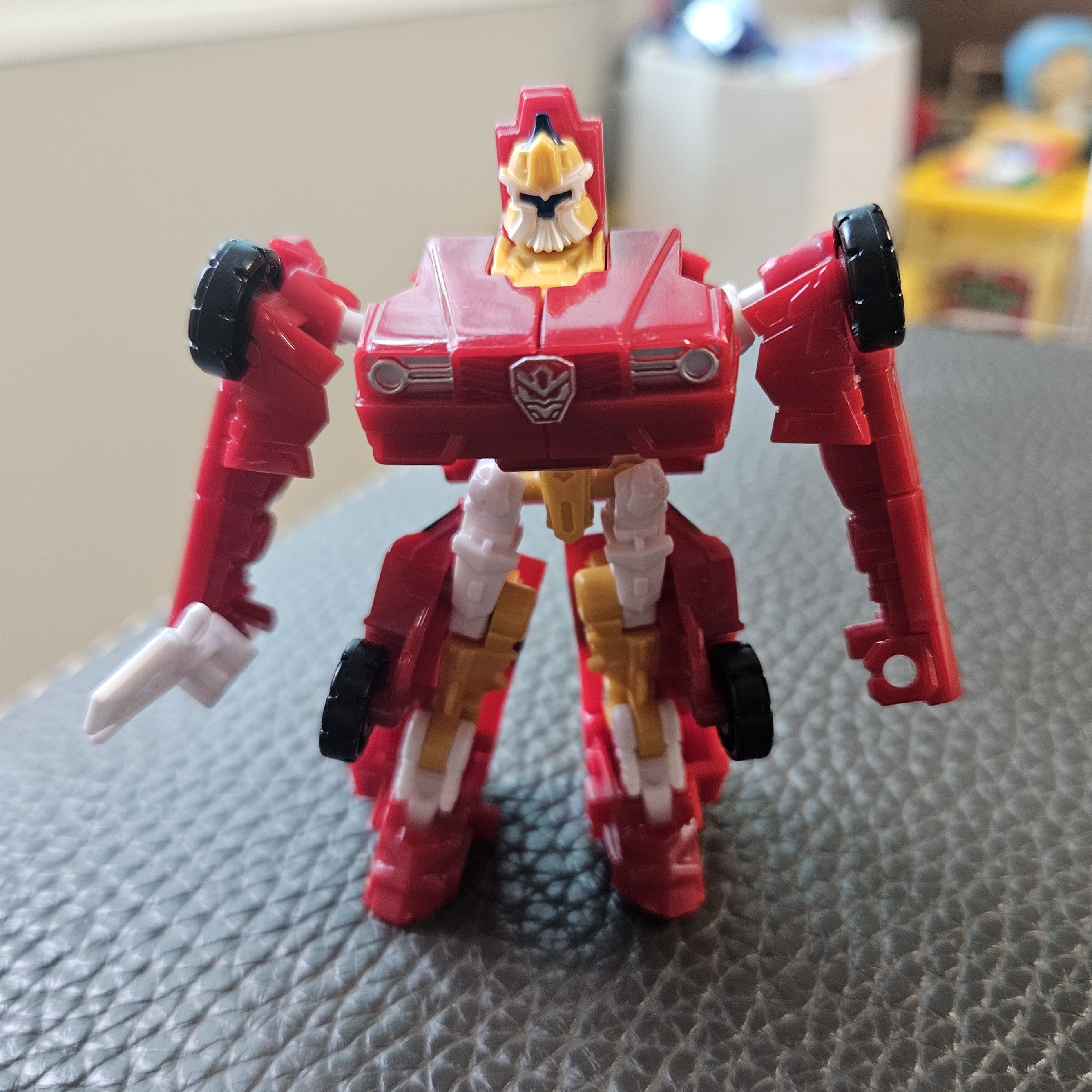 아들이 설명해 주길 발에 꽂아있던 무기를 빼고 손, 발을 그냥 쭉쭉 뻗어주기만 하면 로봇으로 변신할 수 있다고 하는데요. 그리고 마무리로 가슴 부분을 맞춰주면 마이스터 완성이라고 합니다.