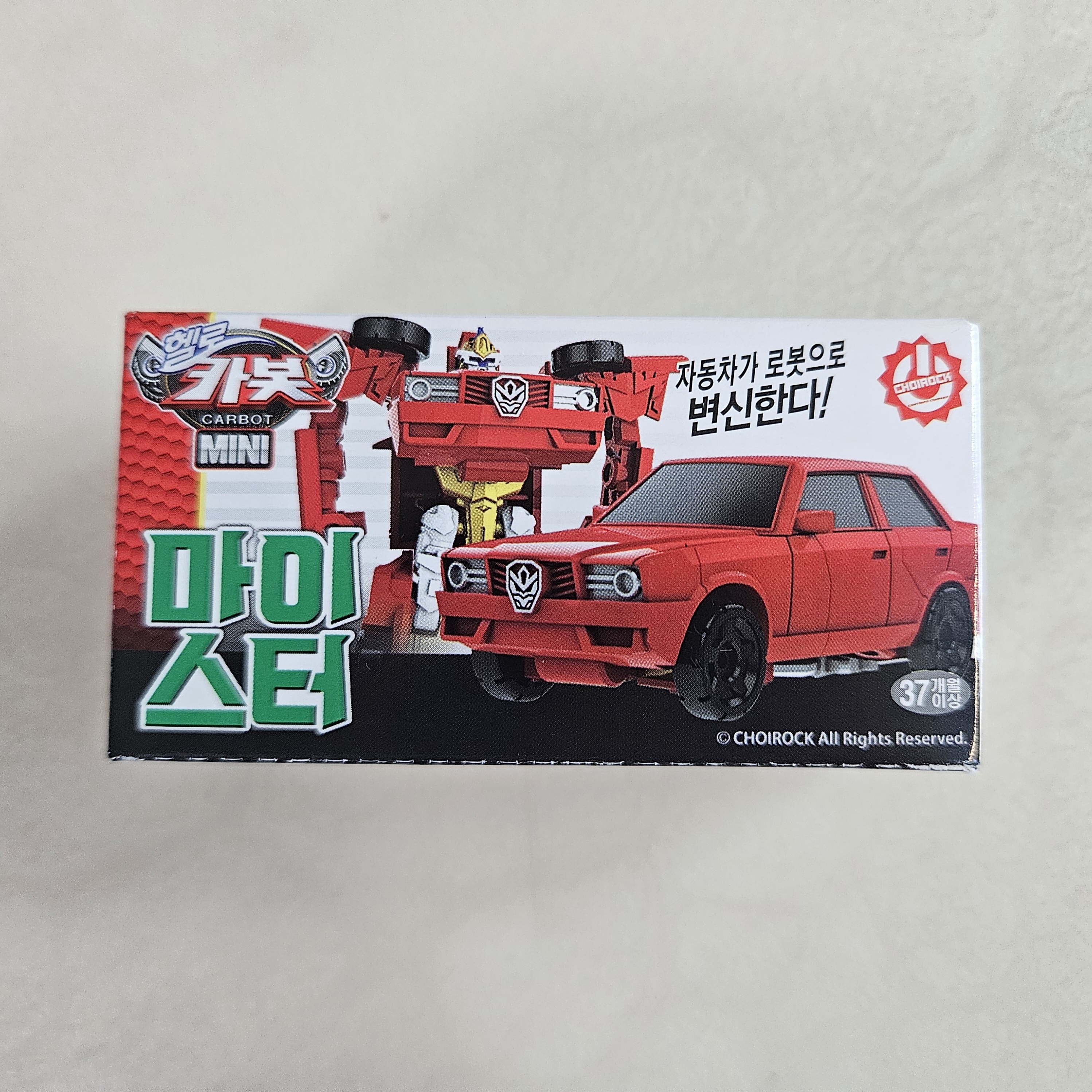 마이스터는 현대그룹 정주영 명예회장을 모티브로 한 카봇으로 차탄이 유일하게 존댓말을 하는 카봇이라고 하는데요. 박스 자체로 보니 빨간색에 올드카 느낌이 물씬 났답니다.