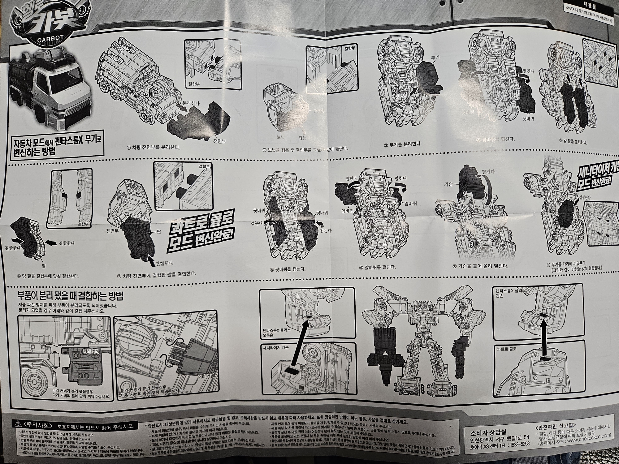 처음 만져보는 장난감이기 때문에 설명서를 쭉 읽어보았는데요. 설명서를 봤을 땐 라이프X 로봇모드나 자동차모드 그리고 무기모드로 변신시키는 게 어렵게 느껴지지 않았답니다.