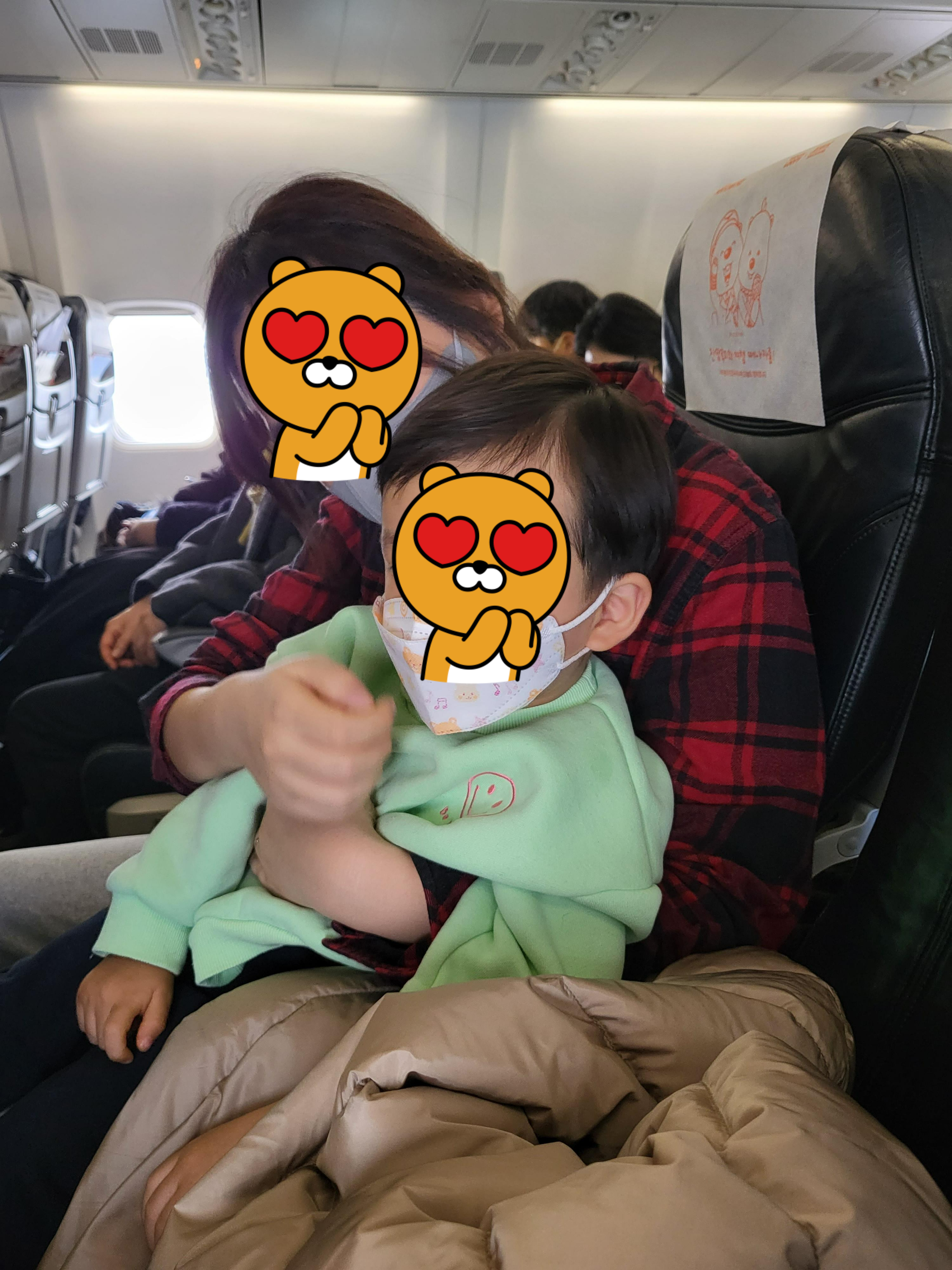 비행기를 탑승을 하고 아들한테 창가 쪽을 양보했지만 비행기가 이륙하자 조금 무서웠는지 바로 엄마를 찾더라고요. 결국 창가자리에 제가 앉게 되었고 아들은 와이프랑 같이 동영상을 시청을 했습니다.