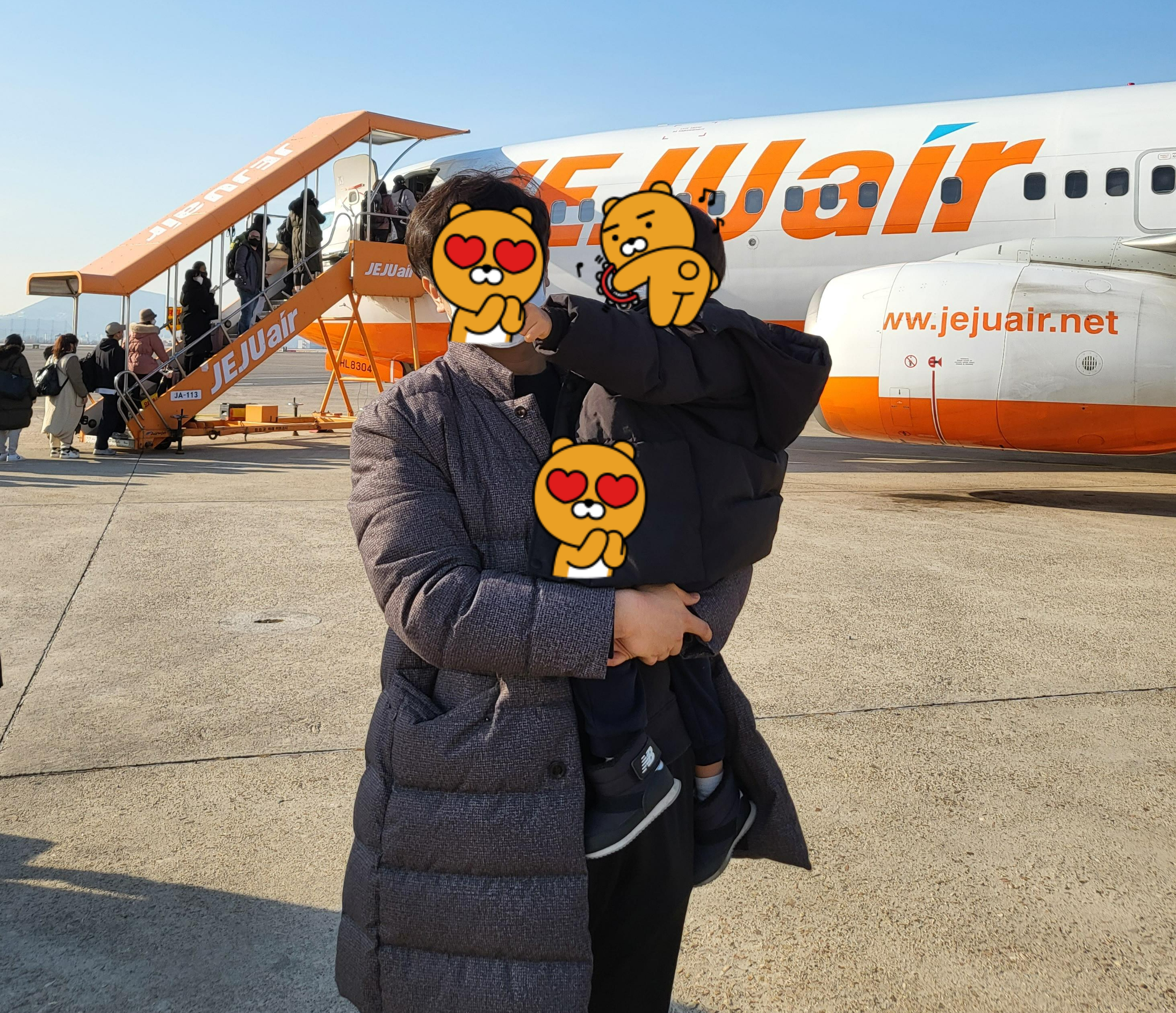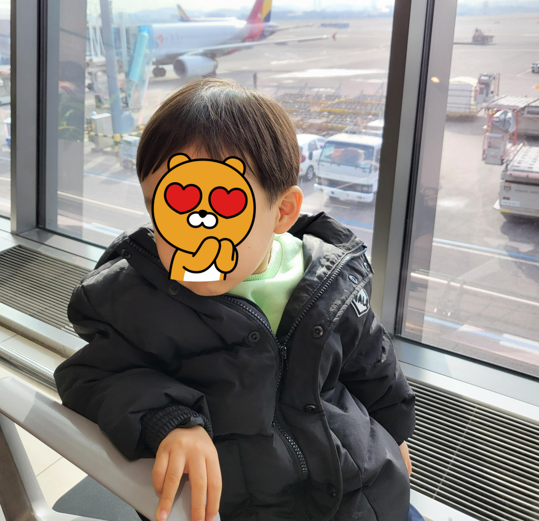 그래도 전날 와이프가 아들이 좋아하는 타요영상이랑 폴리영상을 핸드폰에 받아놓아서 그나마 아들이 버틸 수 있지 않았나 싶네요. 힘든 것도 잠시 실제 큰 비행기를 처음 보는 아들이 신기해하면서 좋아하는 모습이 내심 기분 좋았습니다.