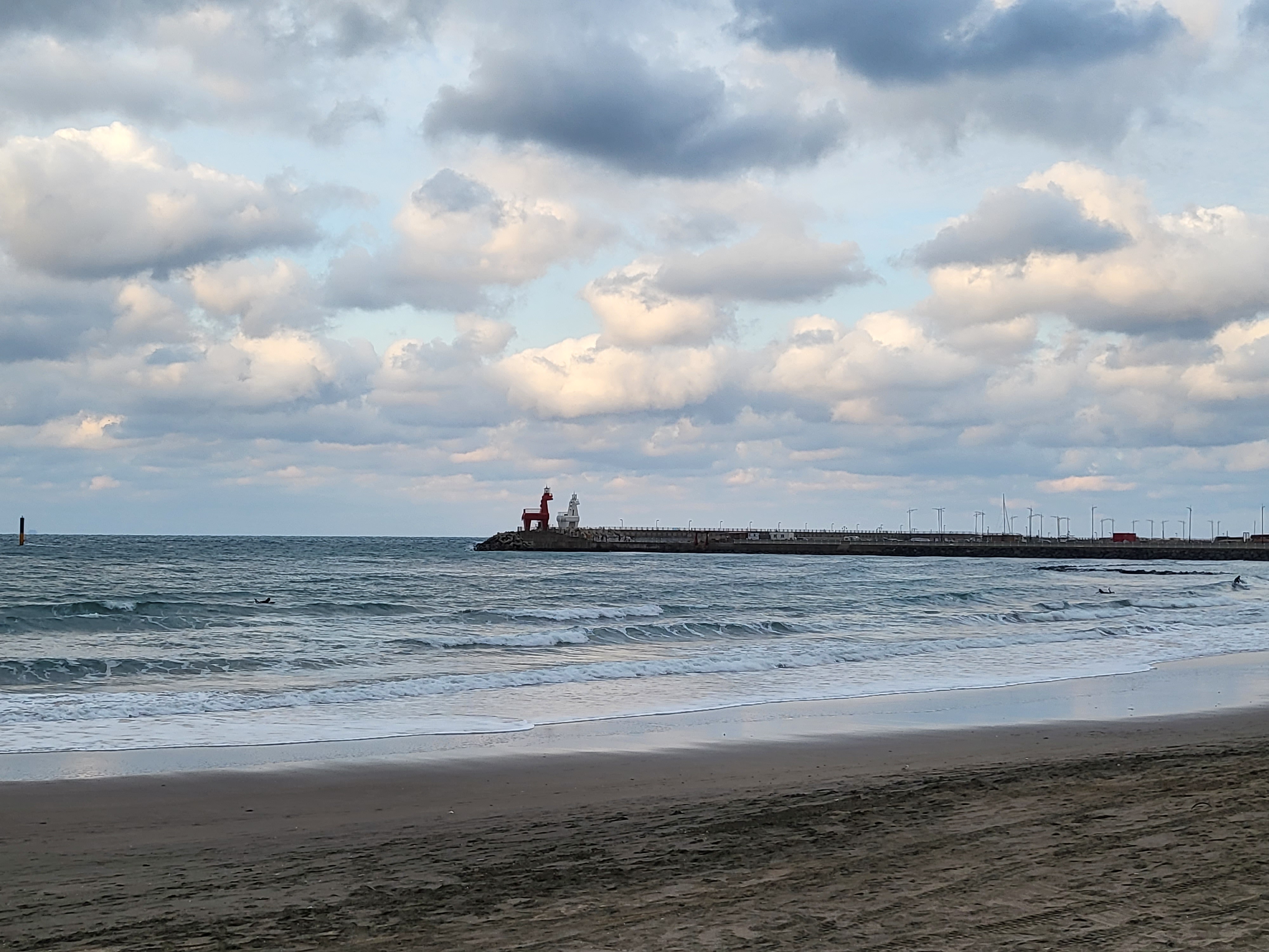 비행기이륙 후 약 한 시간 걸려 도착한 제주도 장인어른이 제주공항까지 마중 나와주셔서 그 이후에는 장인어른 따라 여행을 시작하게 되었는데요. 와이프가 어린 시절 거주했다는 이호테우해변이 첫 여행코스였습니다. 빨간 말 등대가 유명한 해변이지만 와이프가 거주한 해변은 빨간 말 등대보단 조금 멀리 있는 곳이었는데요 그래도 멀리서 볼 수 있었습니다.