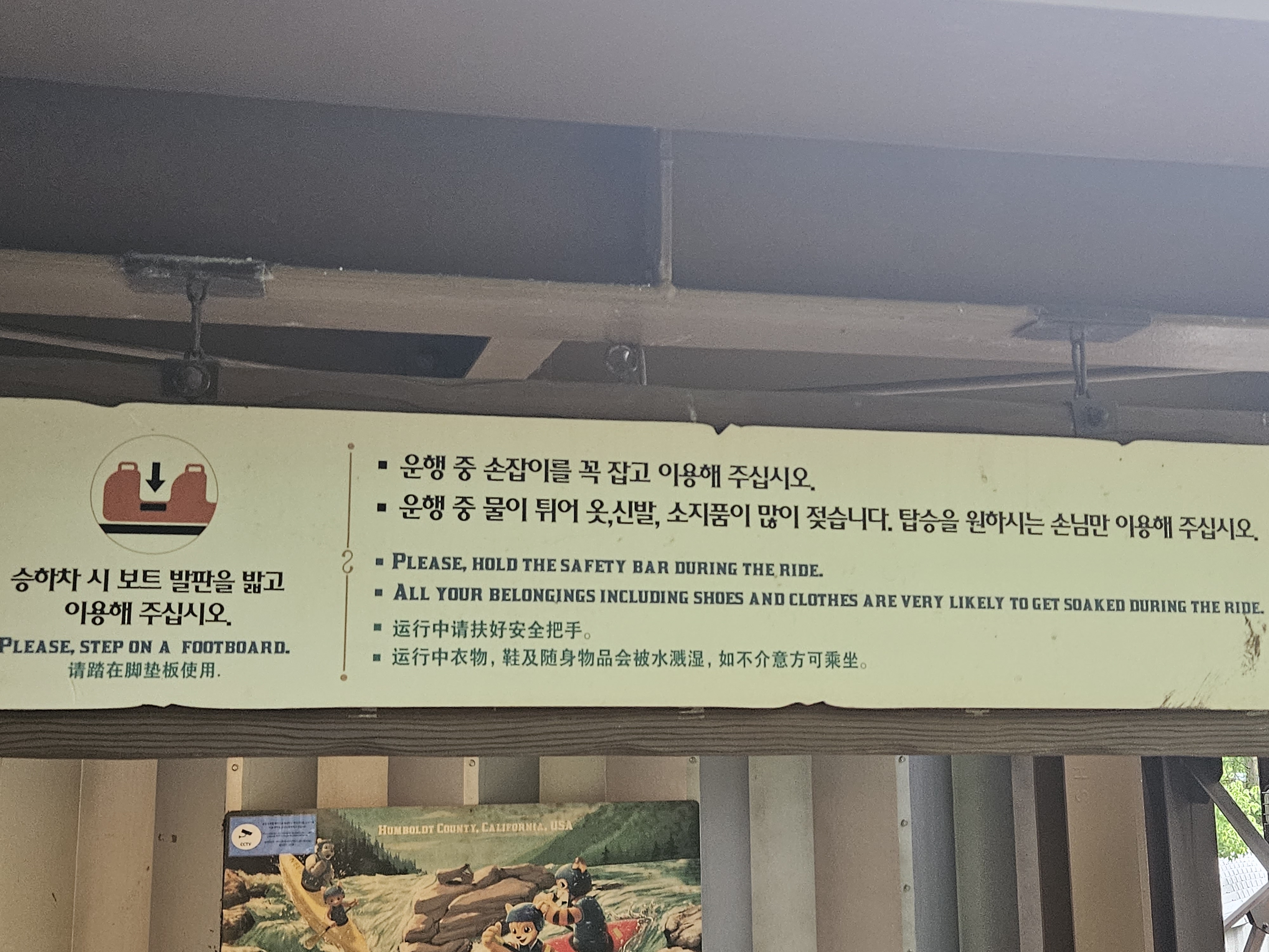 썬더폴스 놀이기구 타는 곳까지 거의 오니 또 한 번 흠뻑 젖는다는 주의사항이 적혀있더라고요. 학생 때 탔을 때는 그렇게 안 젖었던 걸로 기억했는데 말이죠.
