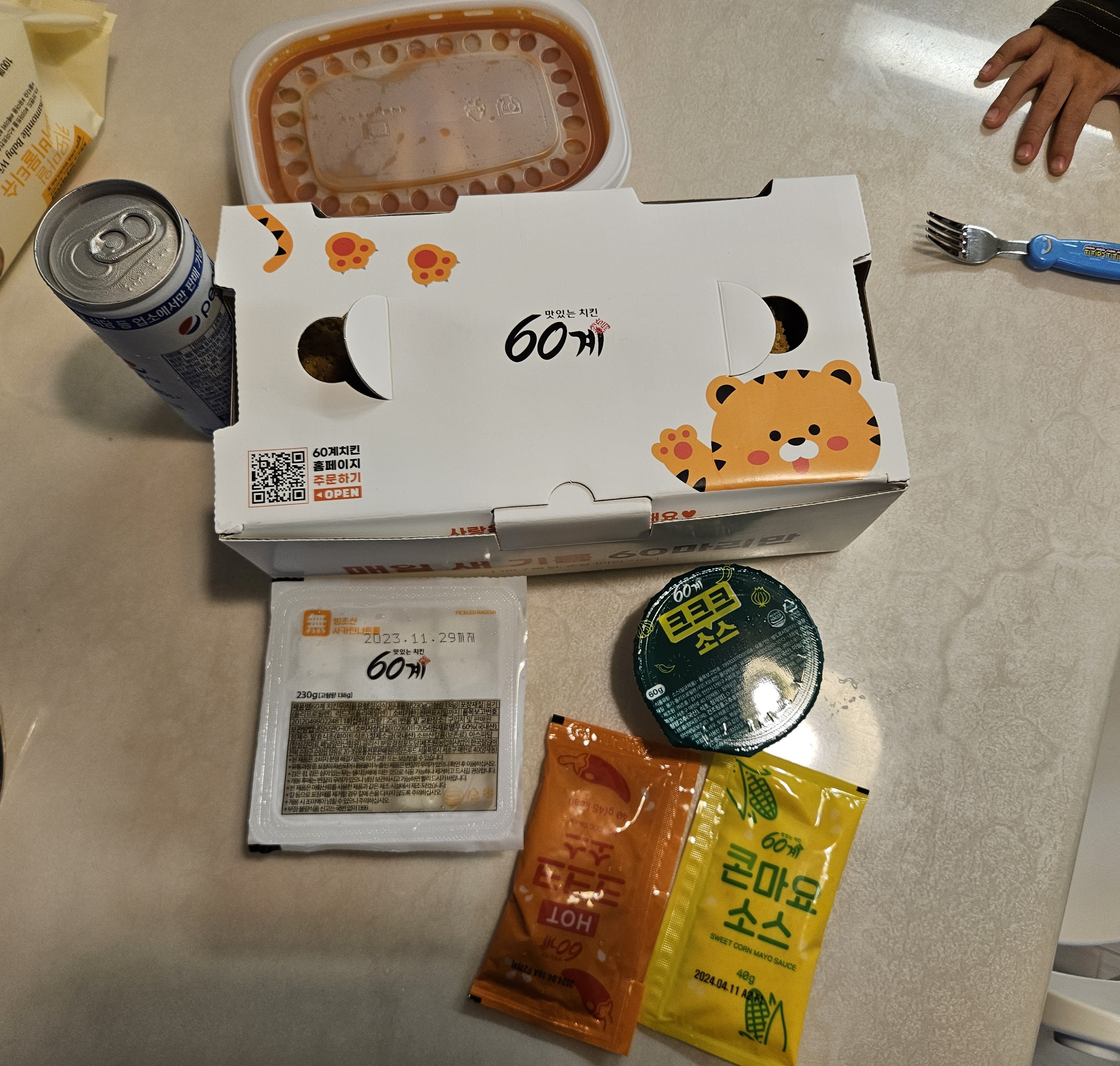 ▼60계치킨 메뉴 중 크크크치킨이 그렇게 바삭하고 맛있다는 소문이 자자하더라고요. 바삭한 식감을 좋아하는 아들과 함께 먹어보려고 한번 배달시켜 보았습니다.